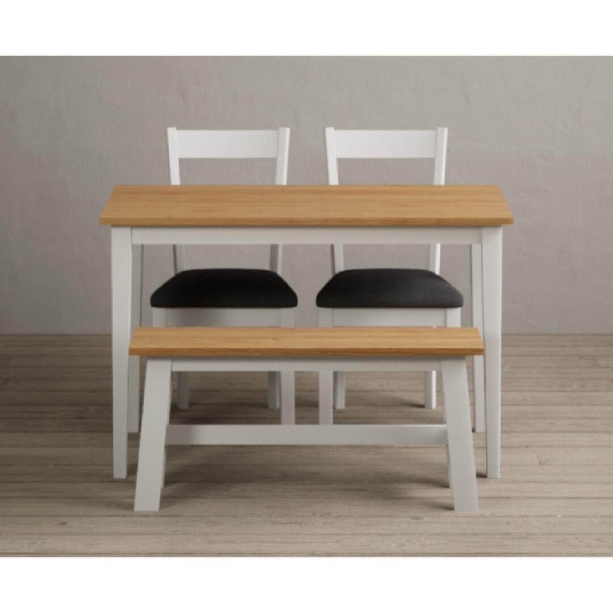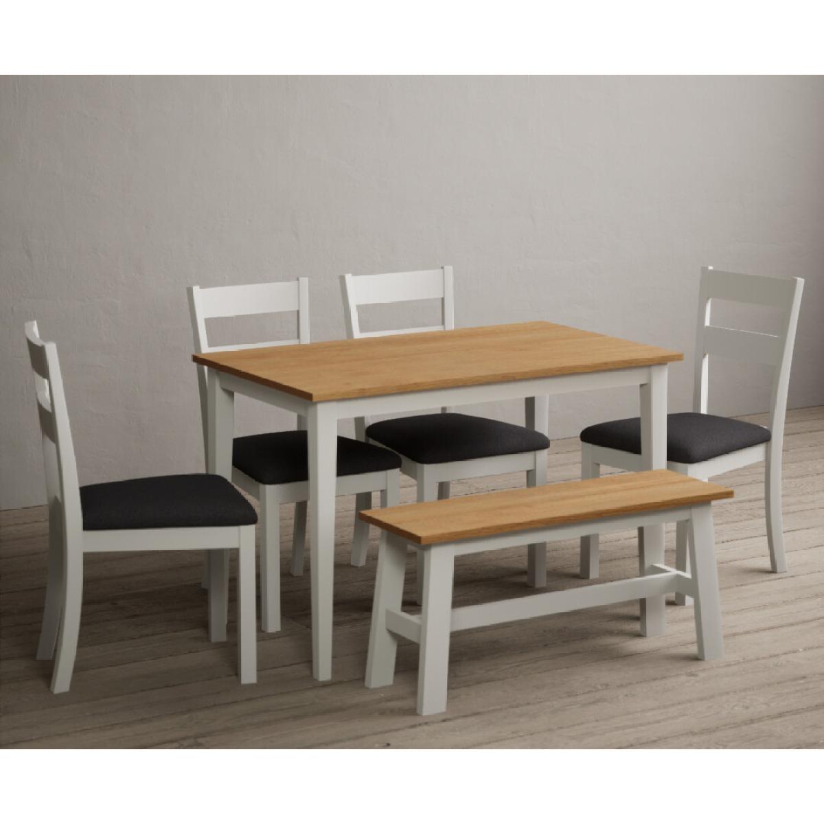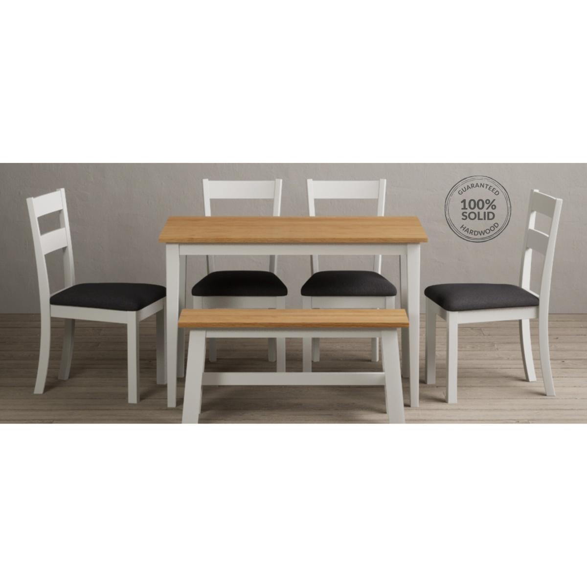 Kendal 115cm Solid Oak and Signal White Painted Dining Table with 4 Charcoal Grey Kendal Chairs with 2 Oak and White Benches
