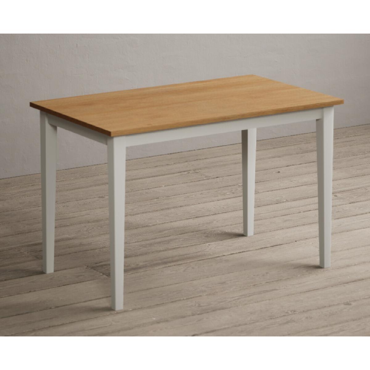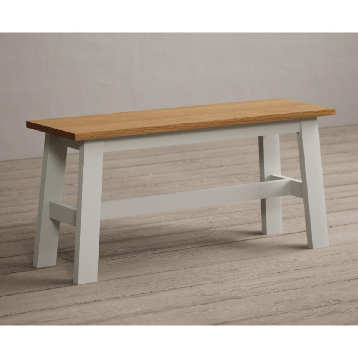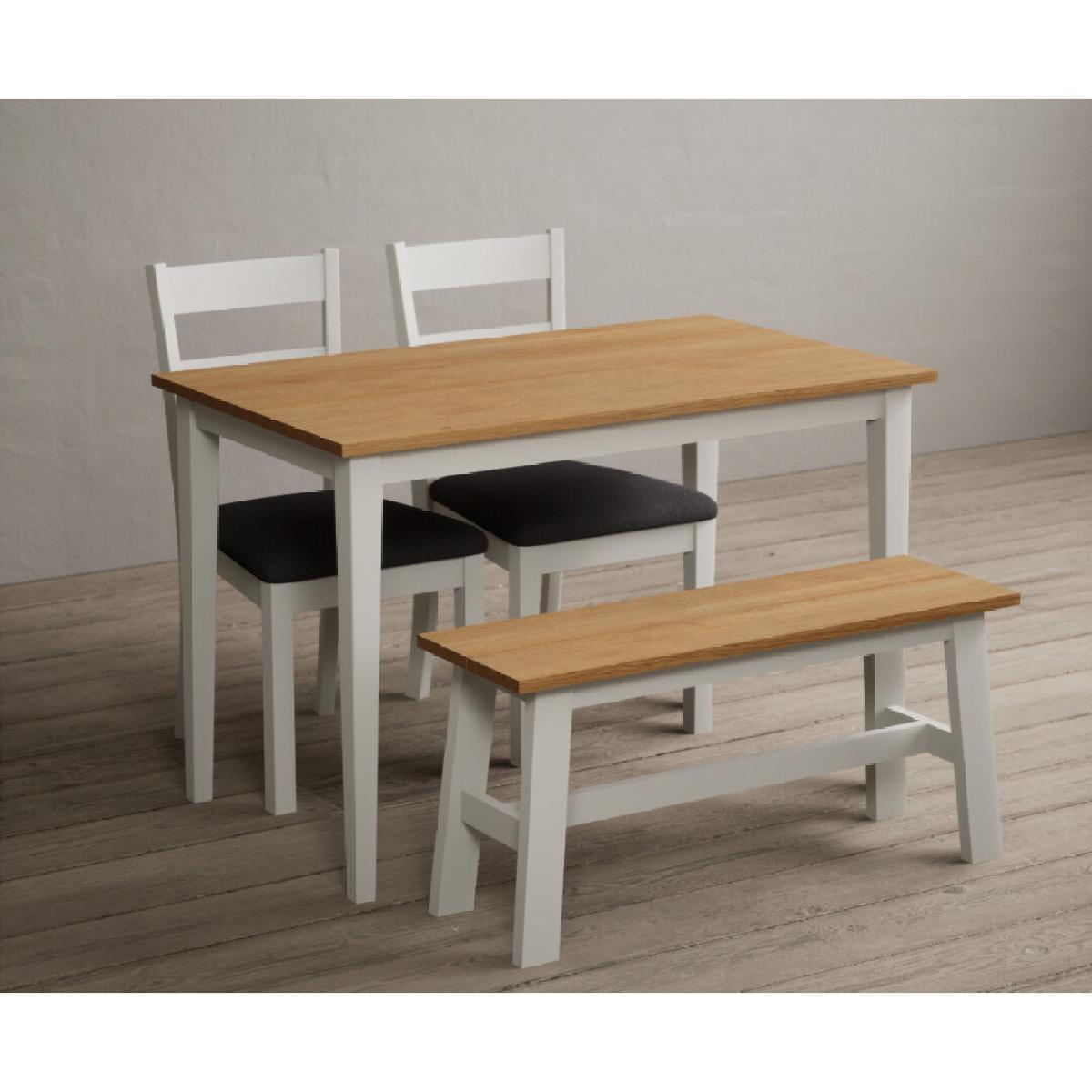 Kendal 115cm Solid Oak and Signal White Painted Dining Table with 4 Charcoal Grey Kendal Chairs with 2 Oak and White Benches