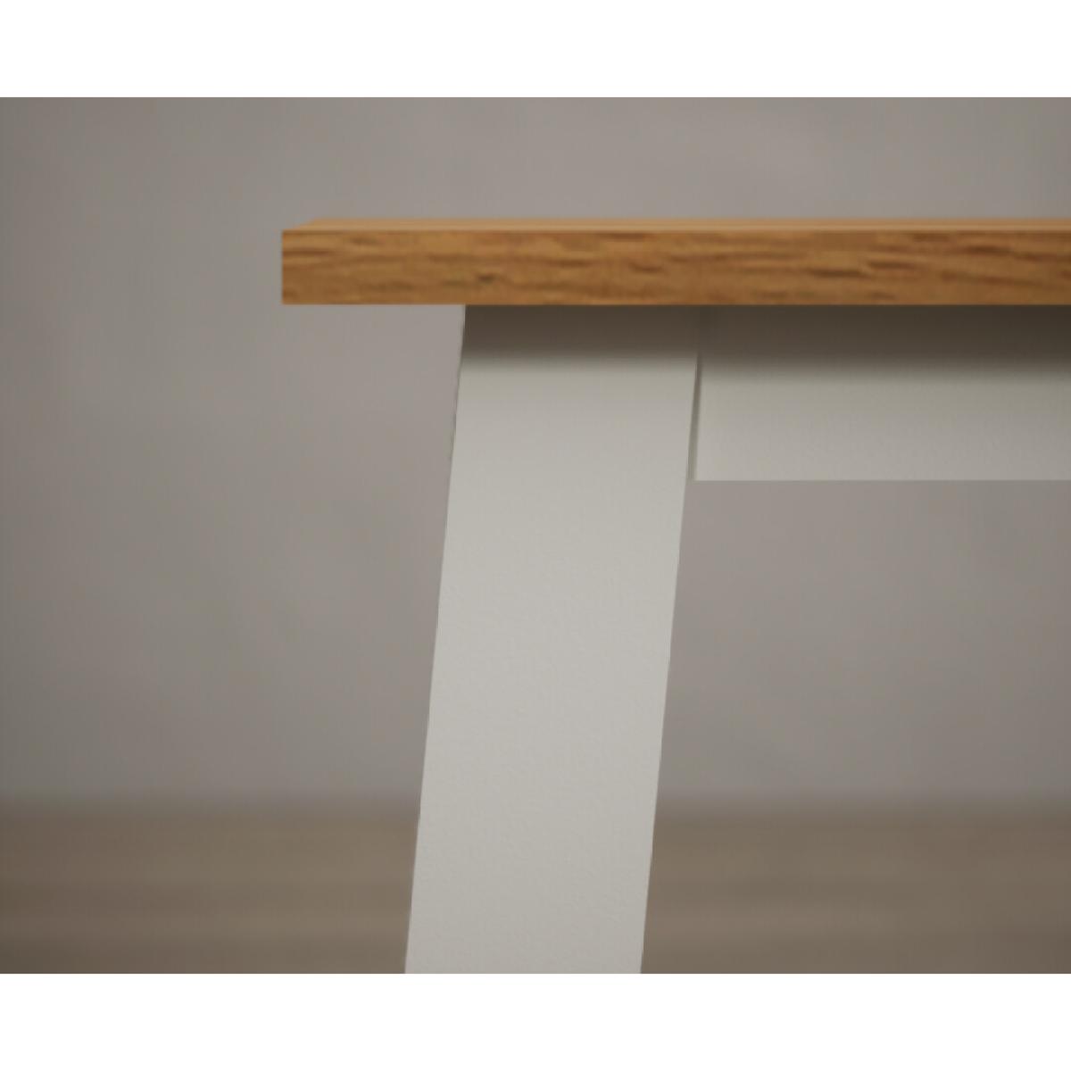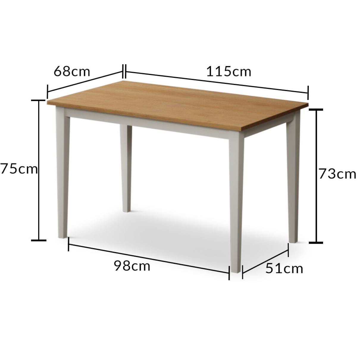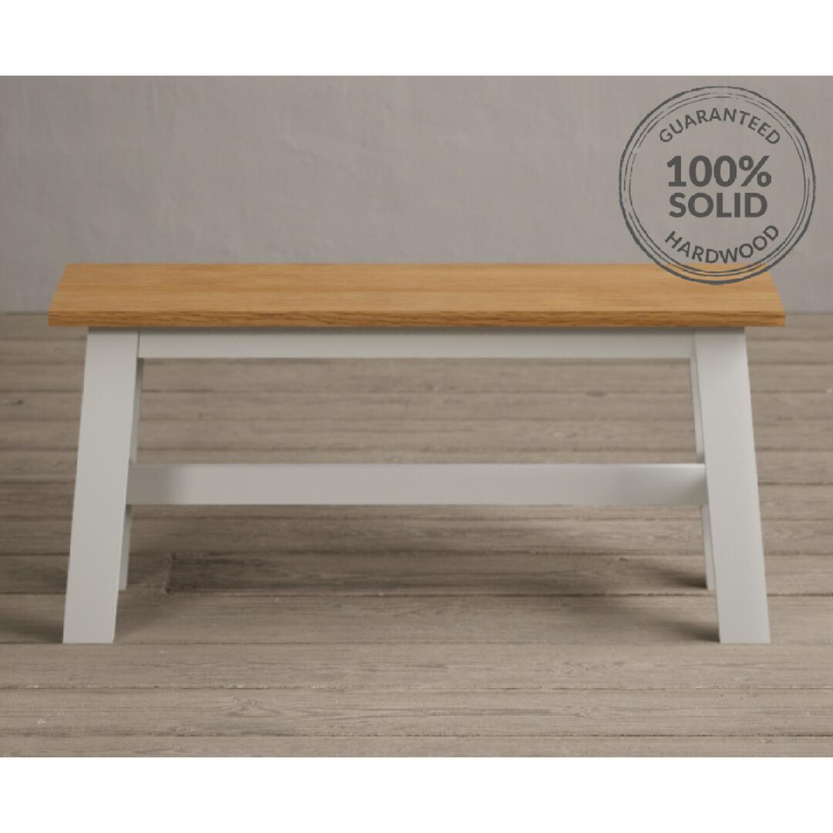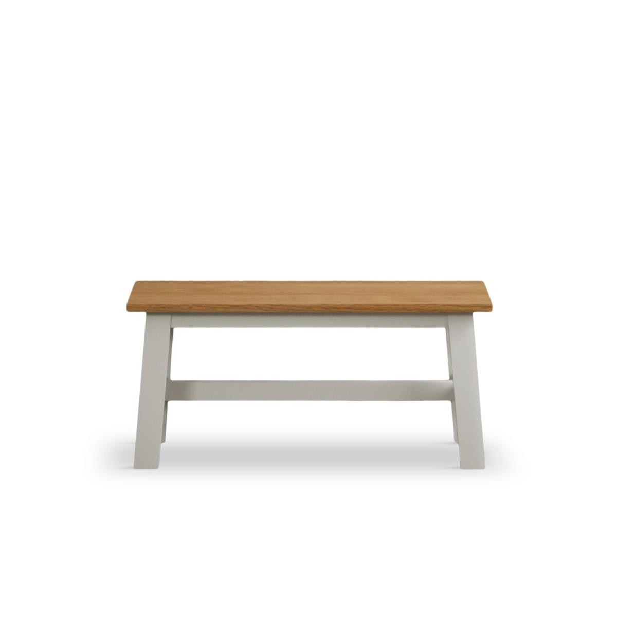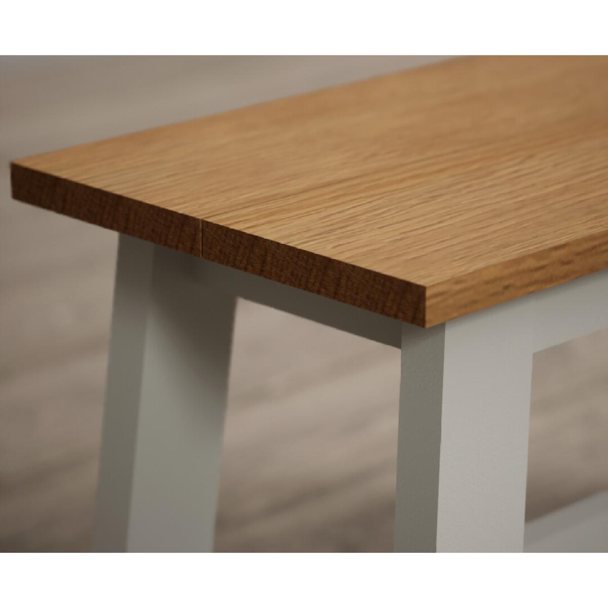 The Kendal 115cm Solid Oak and Signal White Painted Dining Table with Kendal Chairs and Benches is a stylish and sturdy dining set with a painted solid hardwood dining table with a solid oak top matched with painted chairs and benches.