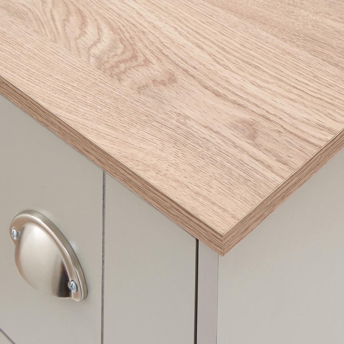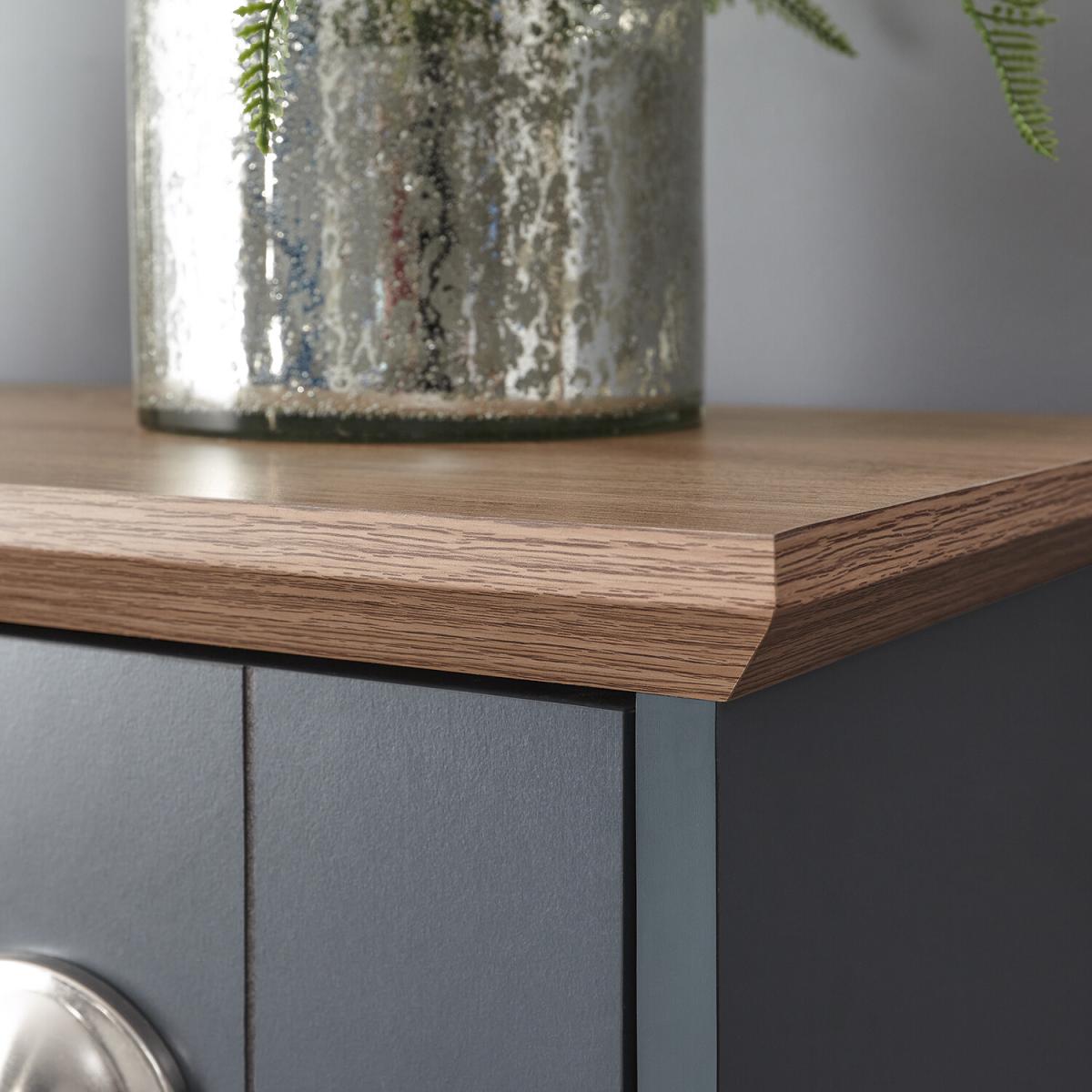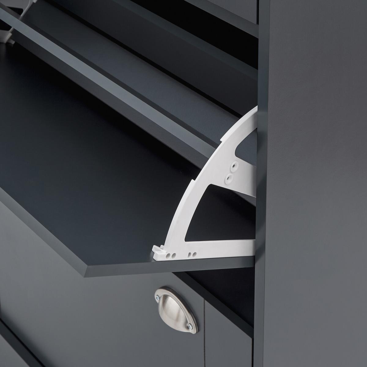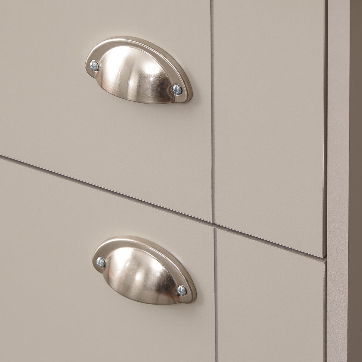 Make the smart choice with a shoe cabinet that fits perfectly into Kendal's timeless country furnishing aesthetic. The Kendal Deluxe Shoe Cabinet features elegant panels are finished in a choice of muted colours and complemented by brushed nickel cup handles that reflect the unit's classic look and feel. The full width top drawer is perfect for gloves, pet paraphernalia and outdoor accessories, while the twin pull down shoe compartments are each capable of accommodating up to six pairs of standard size (UK10) men's shoes, a dozen pairs in all. The chunky oak effect top adds to the rustic charm and creates a handy surface for a lamp or ornament.