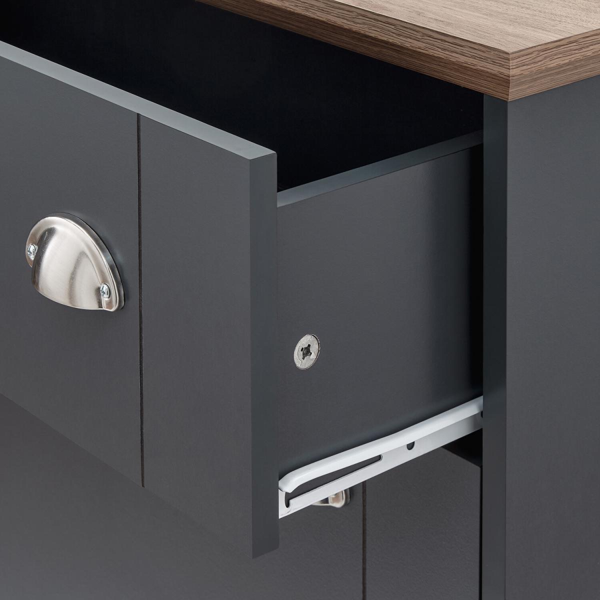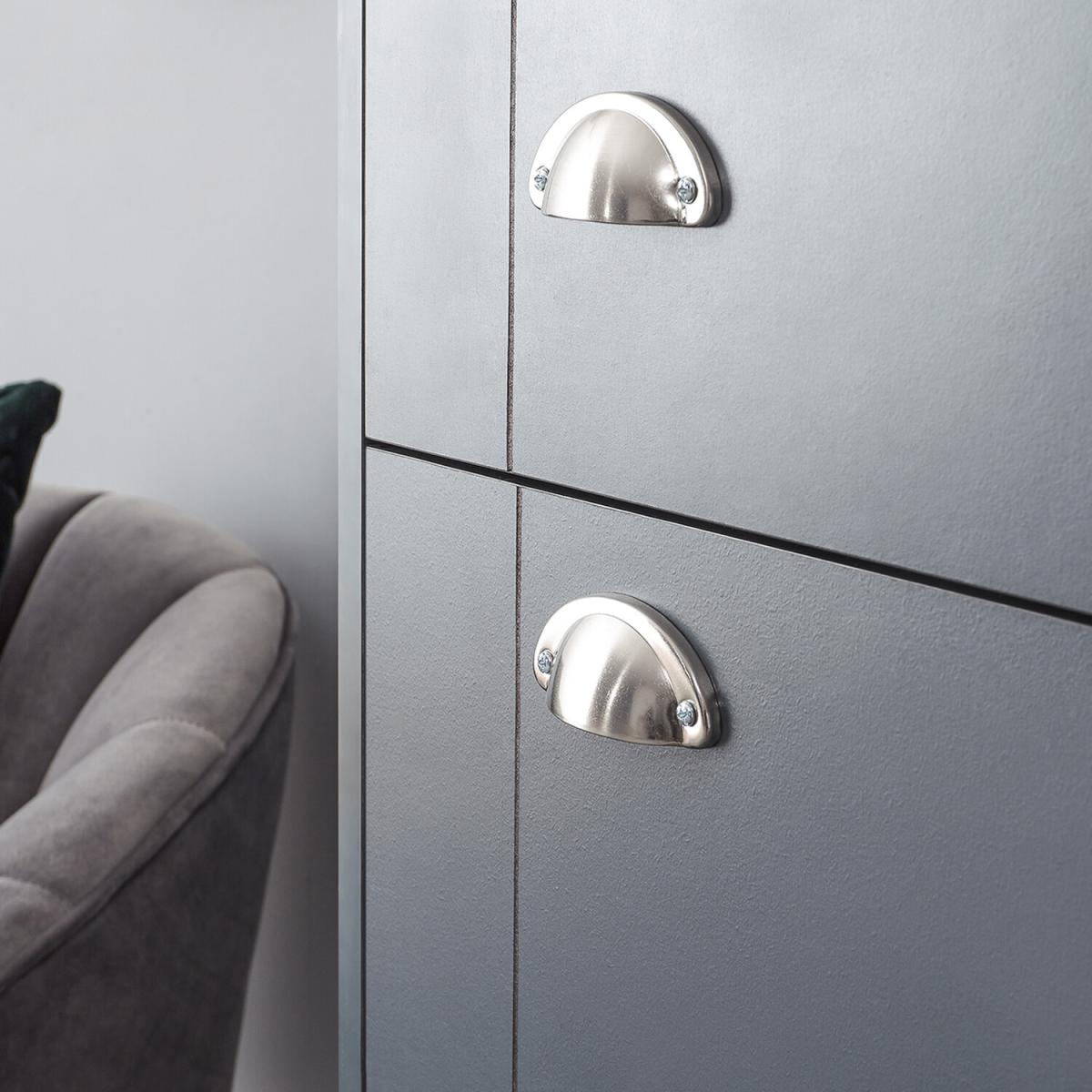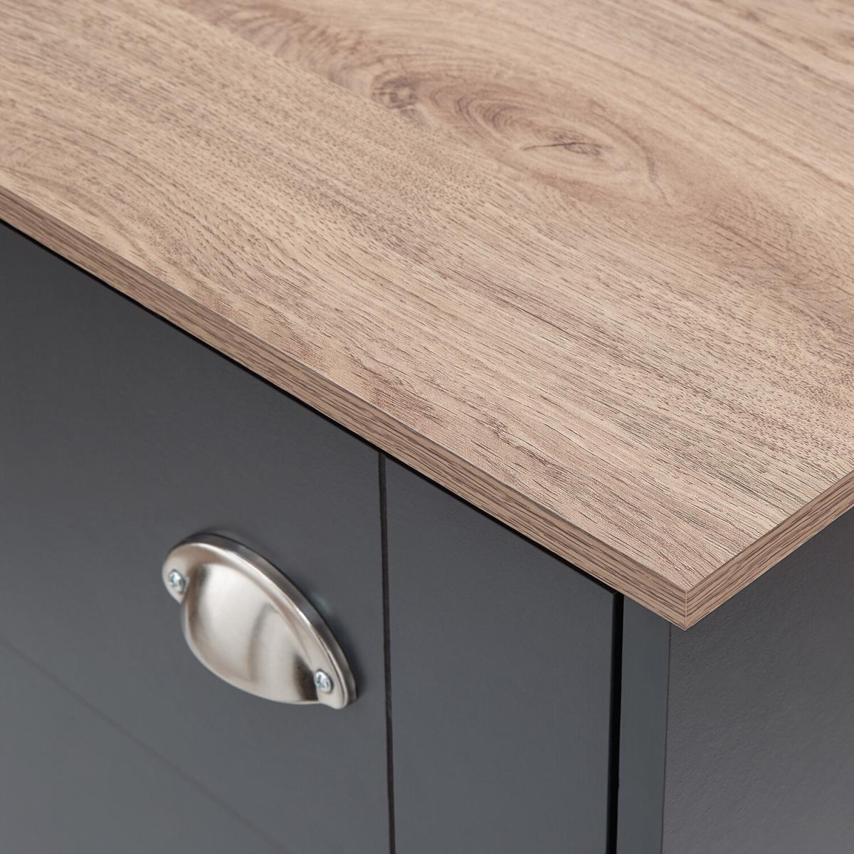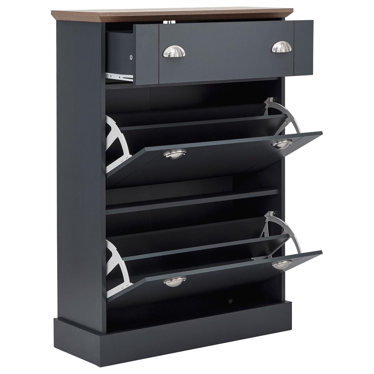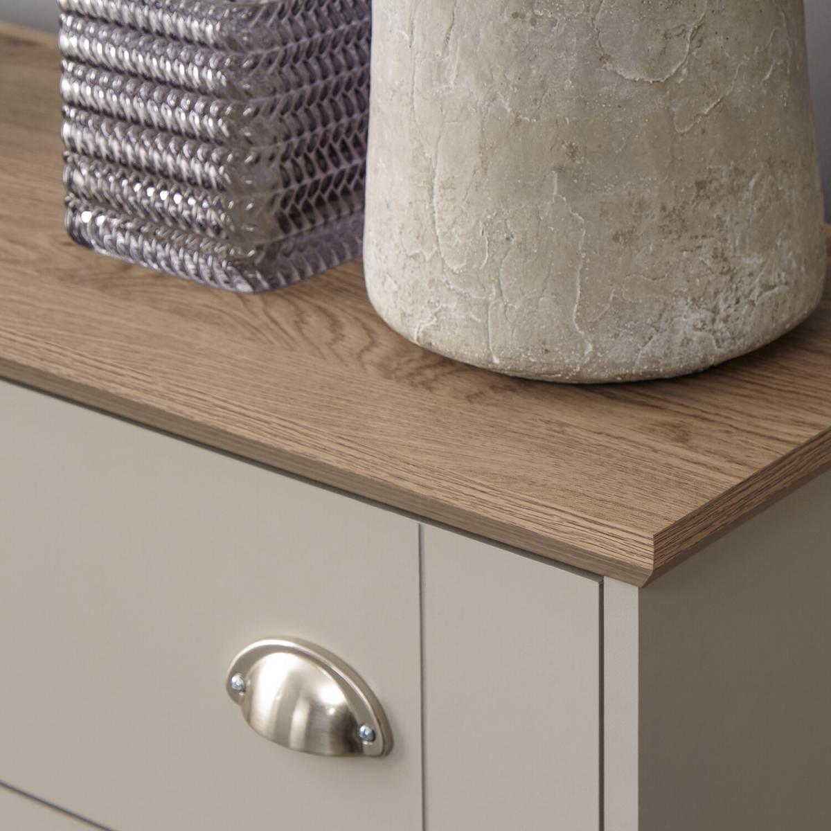 Make the smart choice with a shoe cabinet that fits perfectly into Kendal's timeless country furnishing aesthetic. The Kendal Deluxe Shoe Cabinet features elegant panels are finished in a choice of muted colours and complemented by brushed nickel cup handles that reflect the unit's classic look and feel. The full width top drawer is perfect for gloves, pet paraphernalia and outdoor accessories, while the twin pull down shoe compartments are each capable of accommodating up to six pairs of standard size (UK10) men's shoes, a dozen pairs in all. The chunky oak effect top adds to the rustic charm and creates a handy surface for a lamp or ornament.