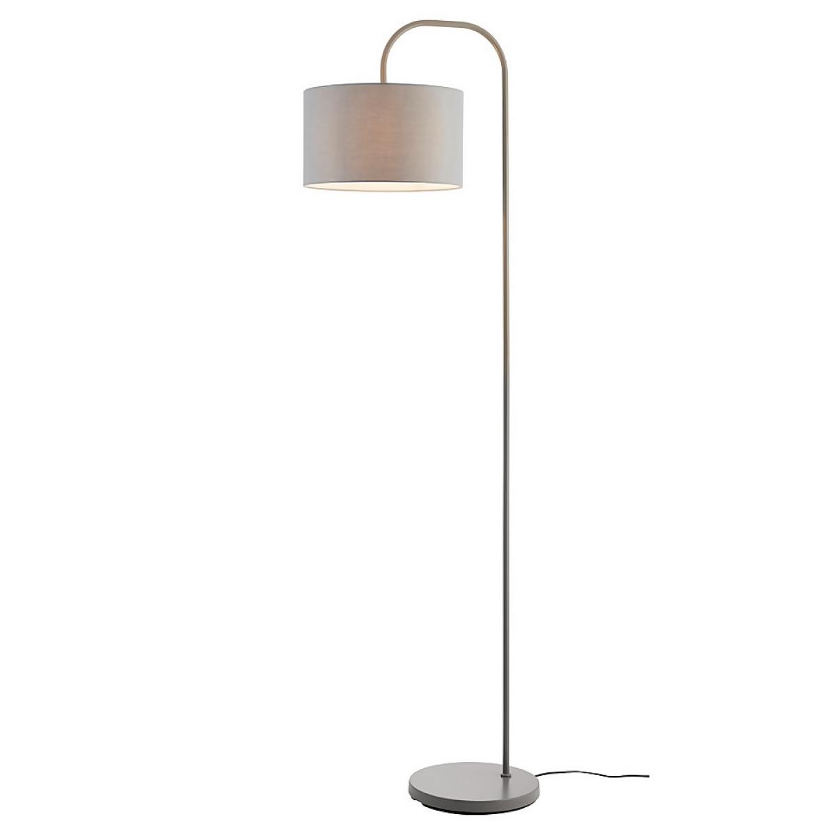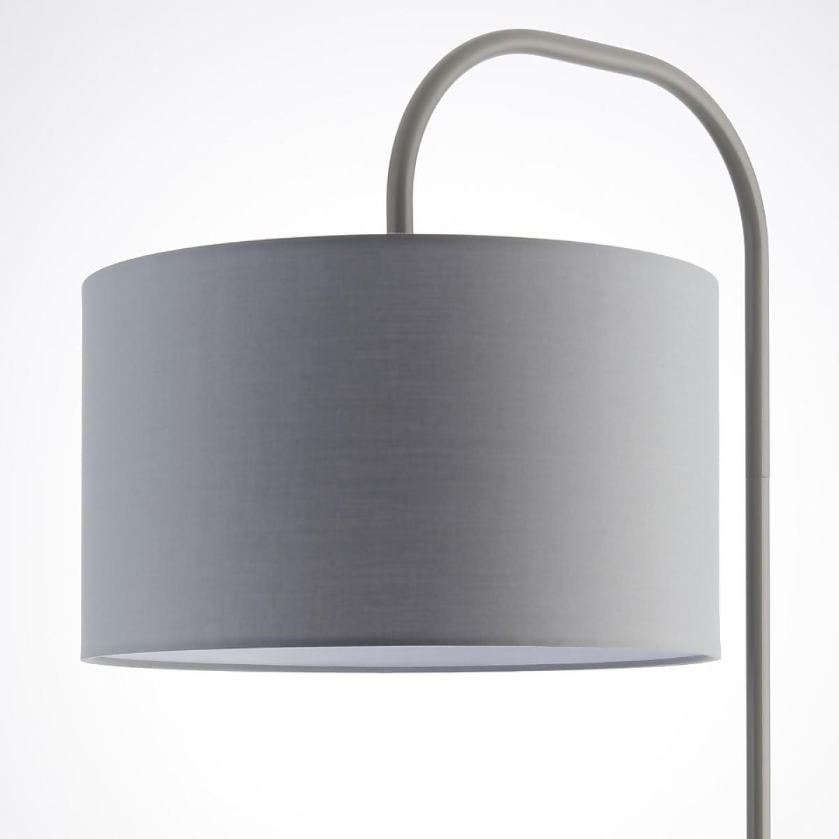 Modern living compact floor light, easy to place in any living space. Simple and easy to use with an inline on /off foot switch. With a grey painted base and matching grey shade this item will complement most modern interiors.