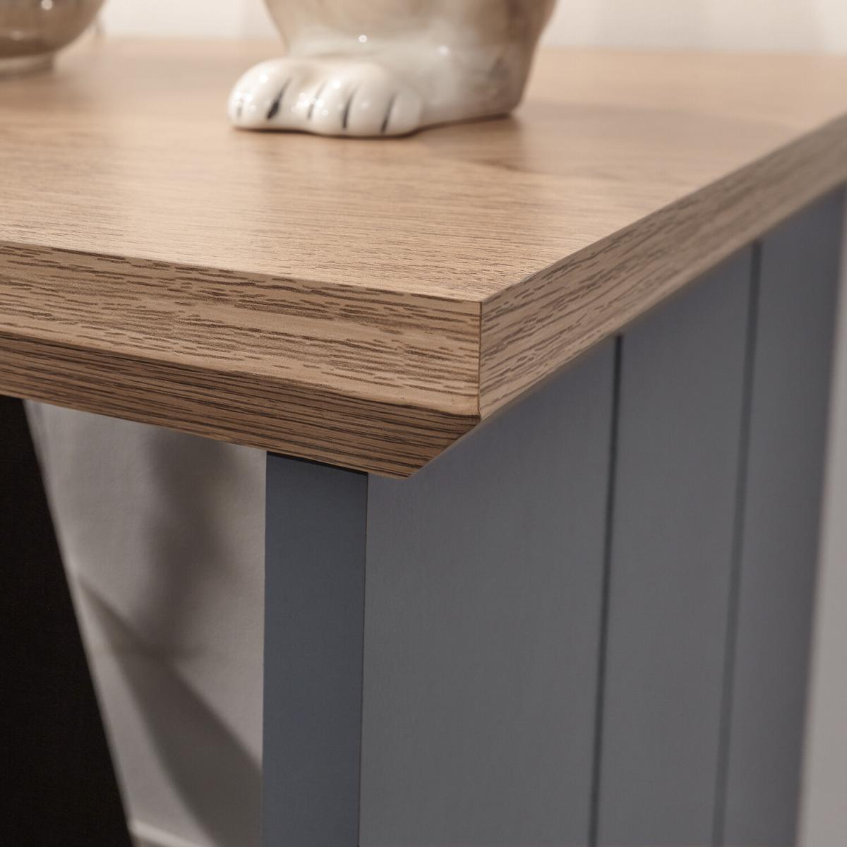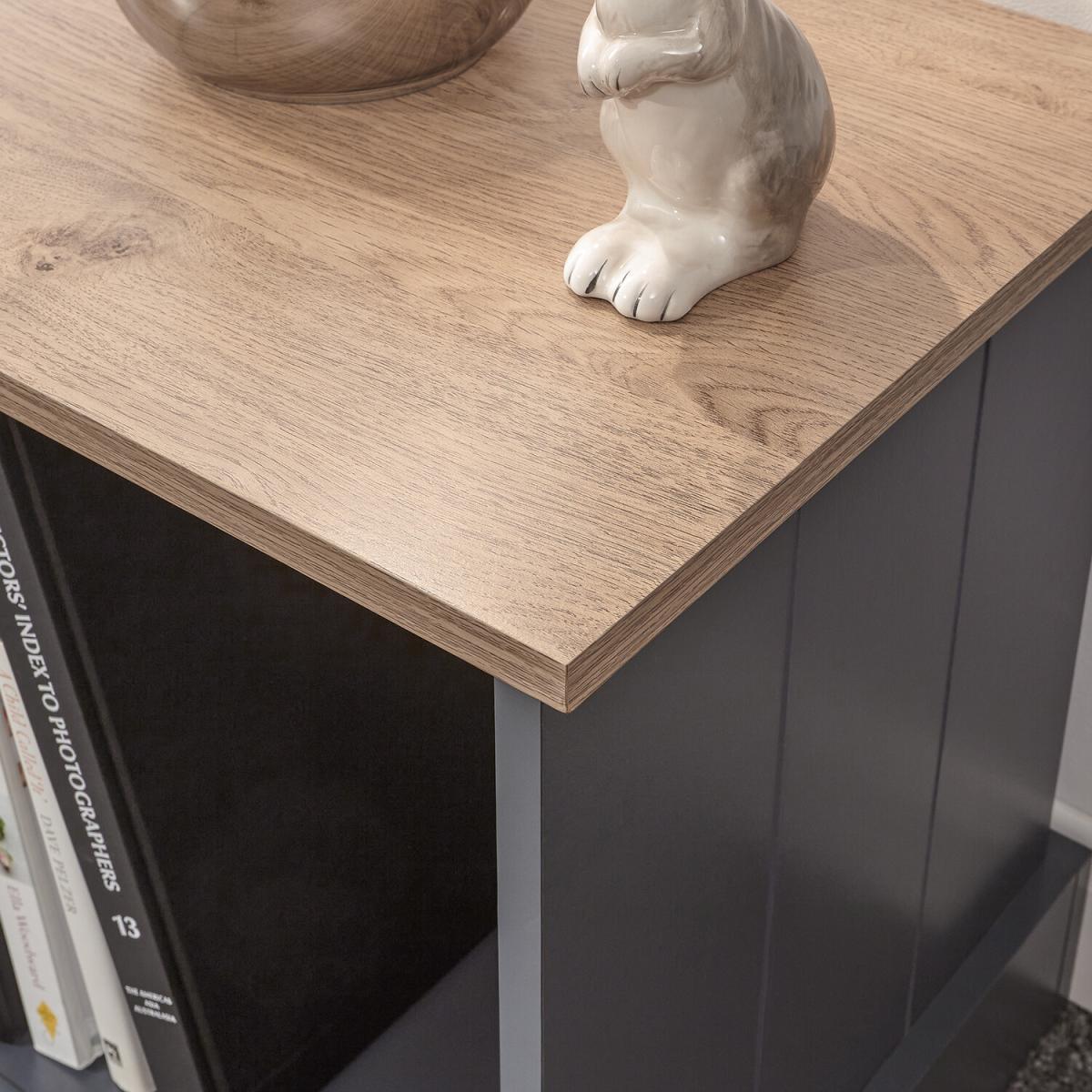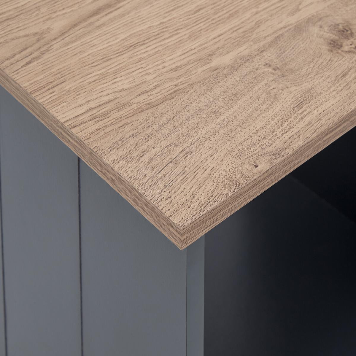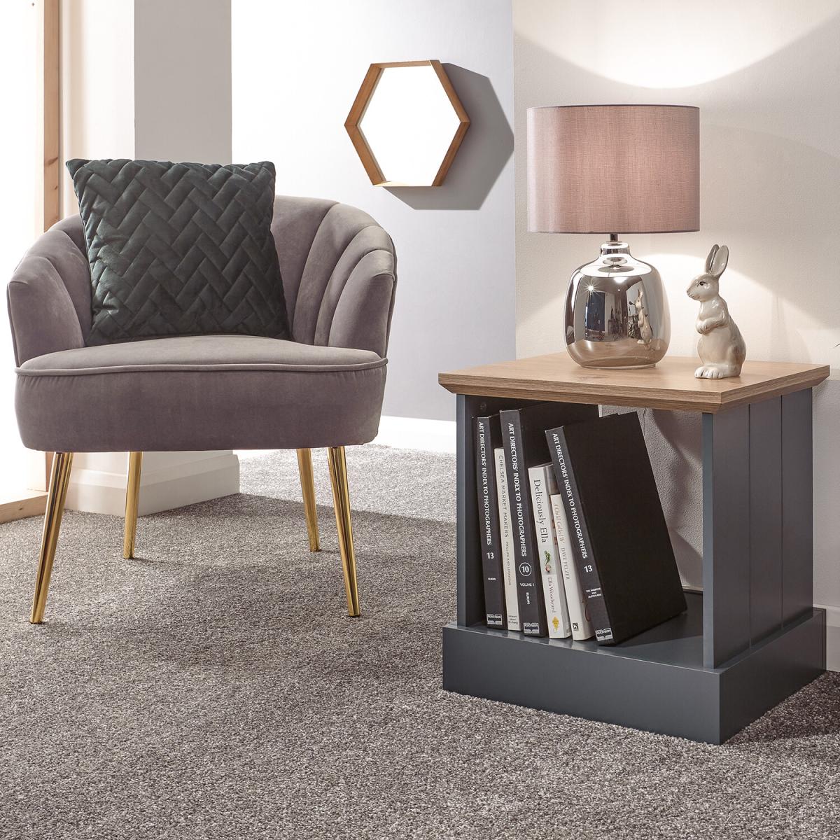 A smart lamp table is a neat addition to any room, the Kendal Lamp Table in Slate Blue provides a handy extra surface for drinks, plants or what you will, no need to limit your choice to lamps! This elegant design brings a touch of country charm to even the most contemporary of interiors, featuring grooved panels and a sturdy base plinth in either slate blue or cool grey, topped with a chunky oak-effect square. Double-sided for versatility, it can be positioned wherever you prefer and offers handy open storage space for books, magazines or accessories.
