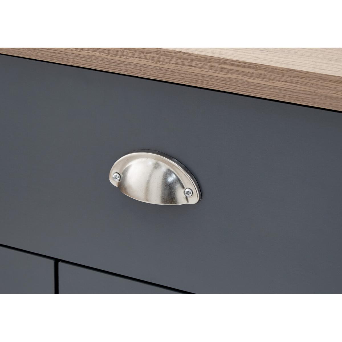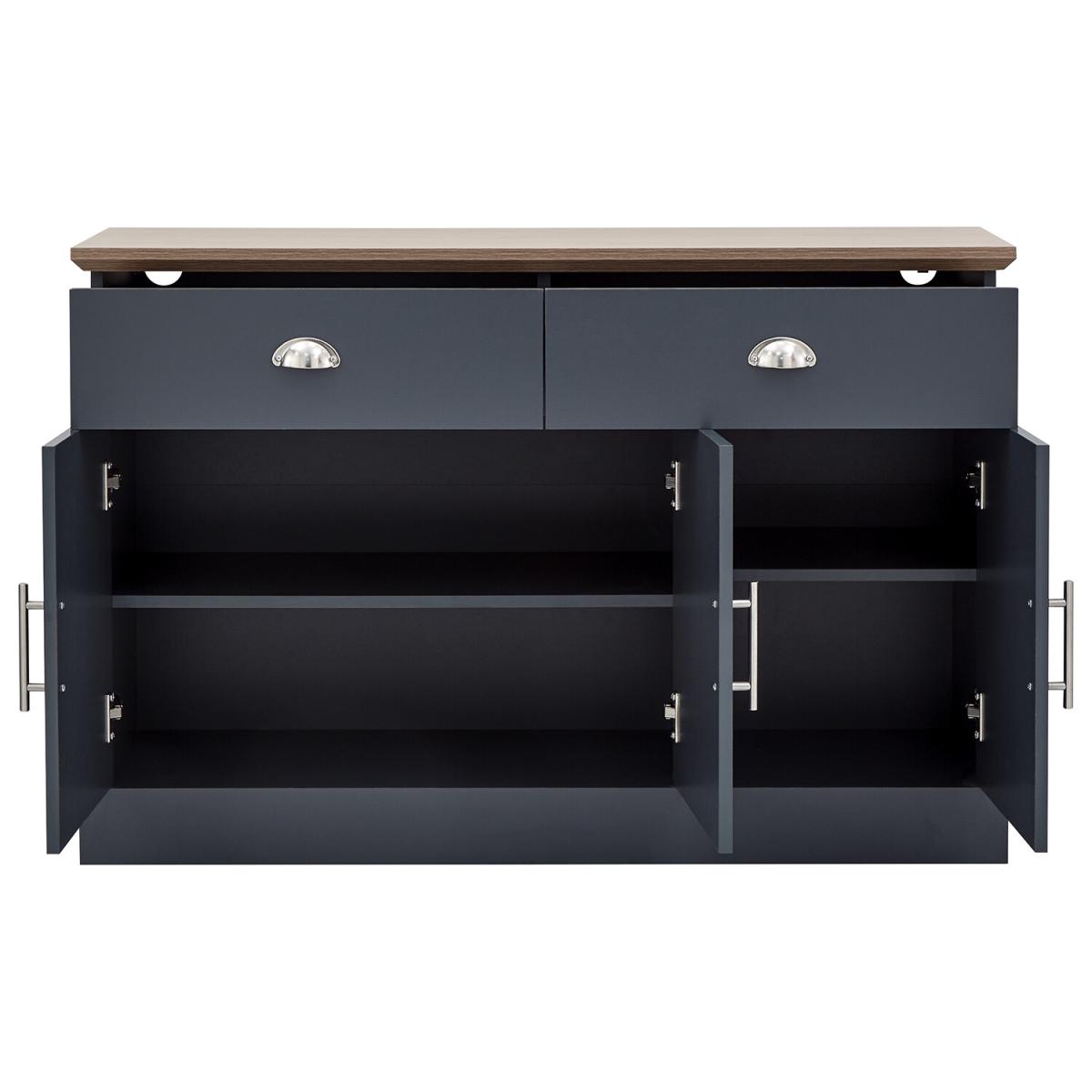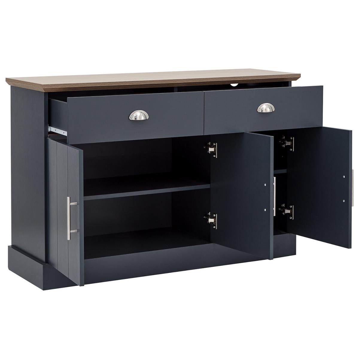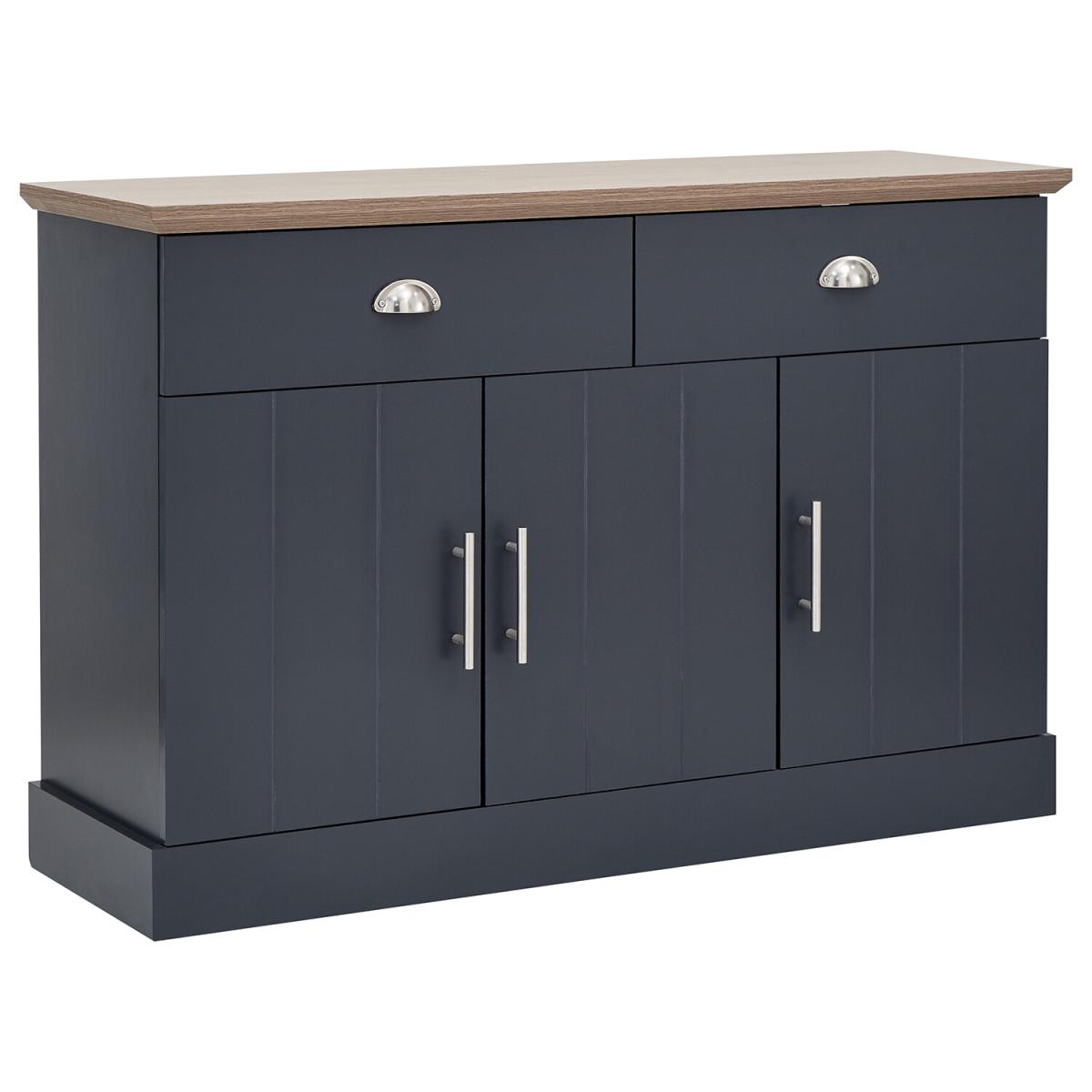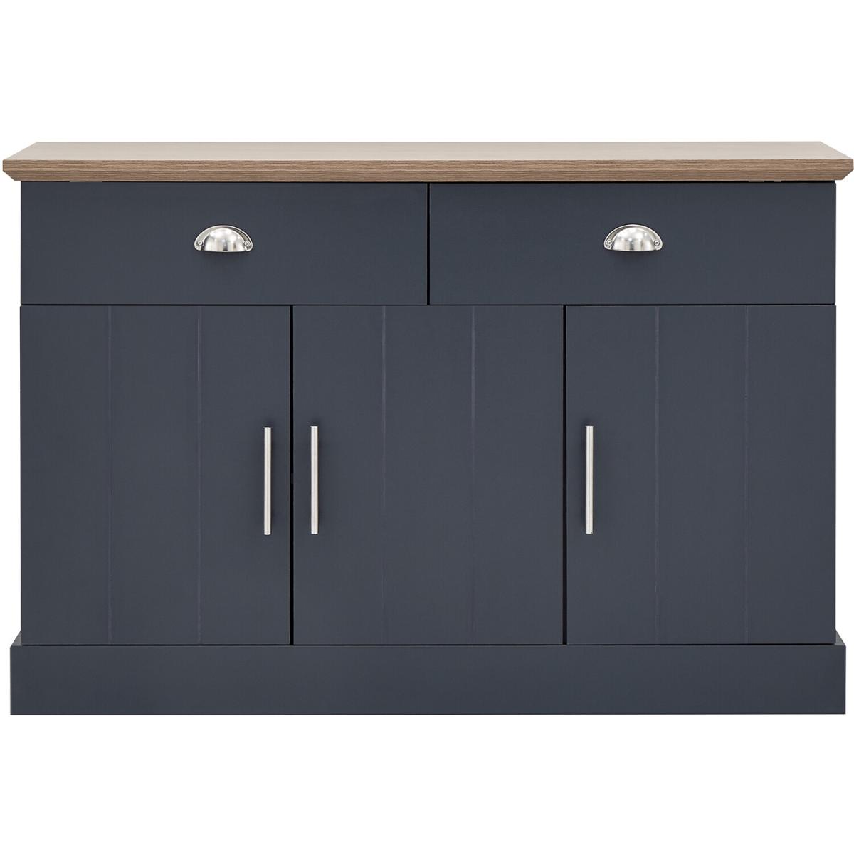 Every home needs ample practical storage solutions, especially if you want to be in with a chance of keeping your living space neat and tidy. But practical doesn't have to mean boring. Take this Kendal Large Sideboard, the classic country design allows it to shine in either a traditional or contemporary setting. A substantial piece, it incorporates shelved storage space below a pair of drawers. The combination of grooved panelling with deep base plinth and oak-effect top roots it in the cottage aesthetic, the slate bue or cool grey finish applying a contemporary twist.