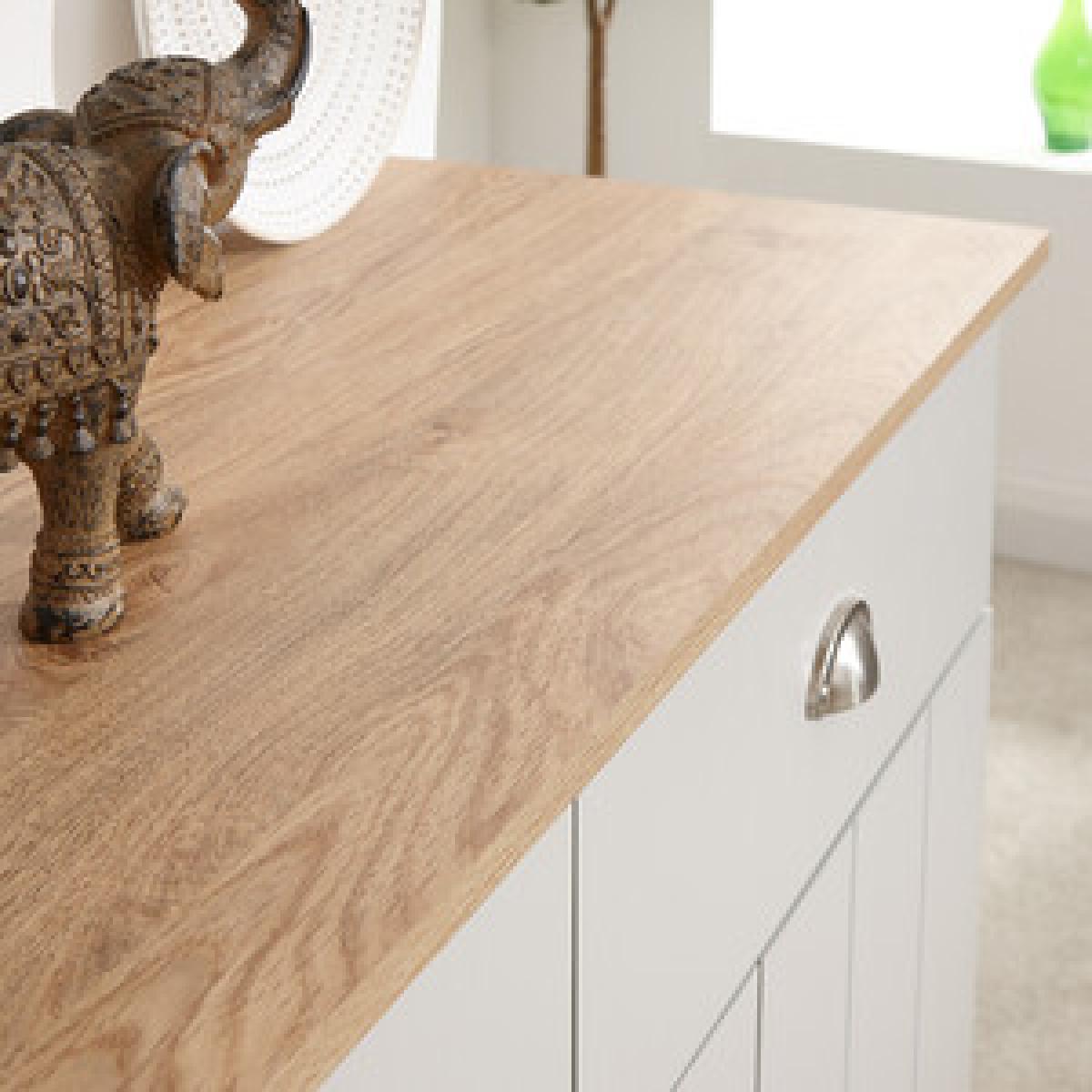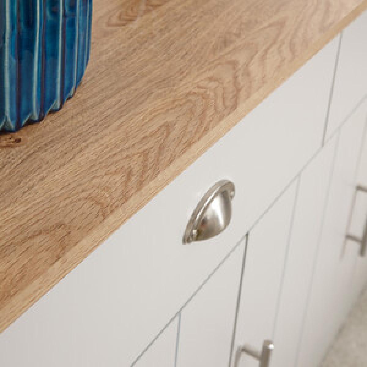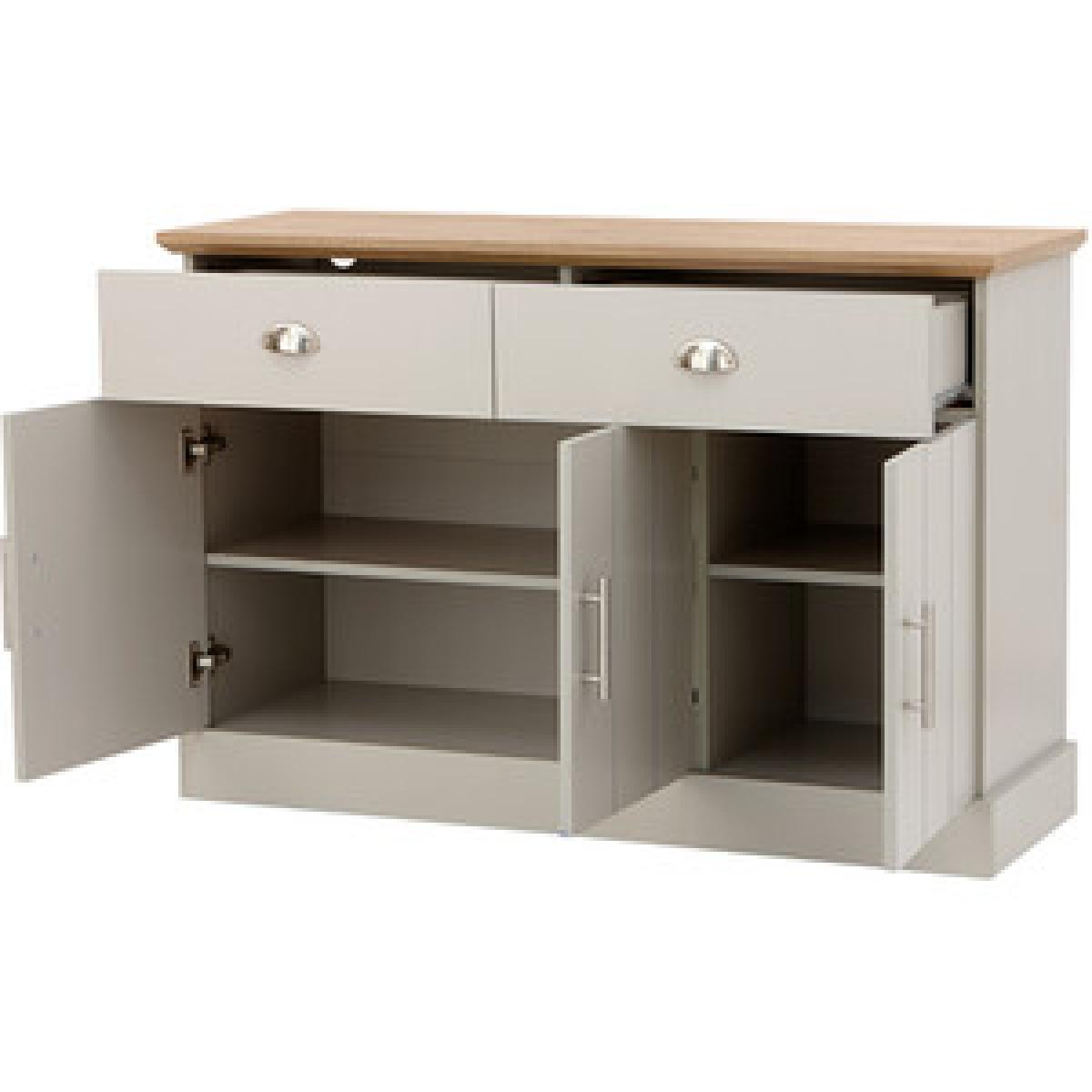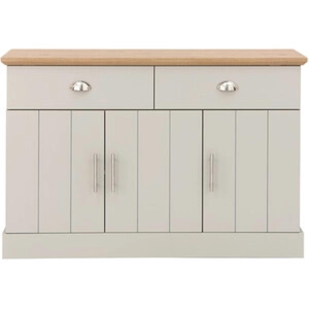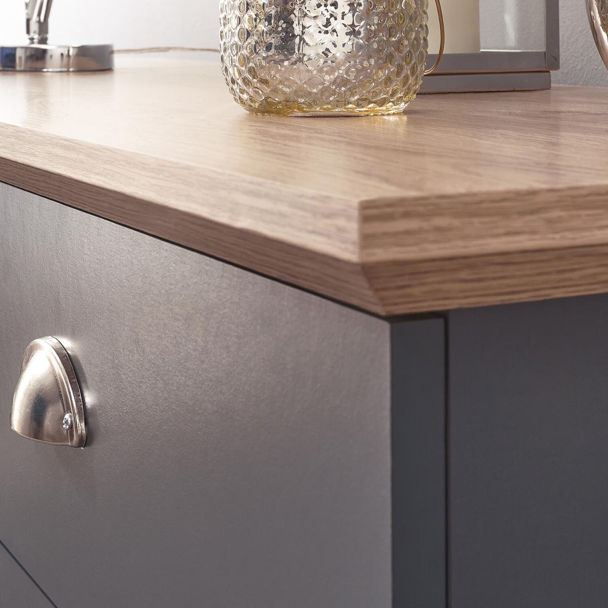 Every home needs ample practical storage solutions, especially if you want to be in with a chance of keeping your living space neat and tidy. But practical doesn't have to mean boring. Take this Kendal Large Sideboard, the classic country design allows it to shine in either a traditional or contemporary setting. A substantial piece, it incorporates shelved storage space below a pair of drawers. The combination of grooved panelling with deep base plinth and oak-effect top roots it in the cottage aesthetic, the slate bue or cool grey finish applying a contemporary twist.