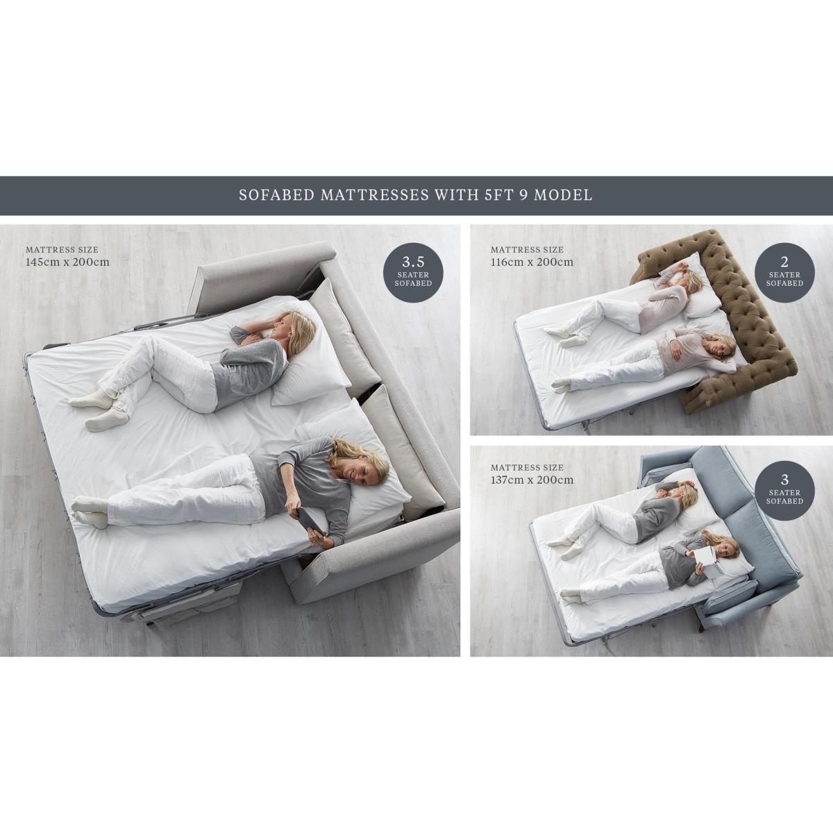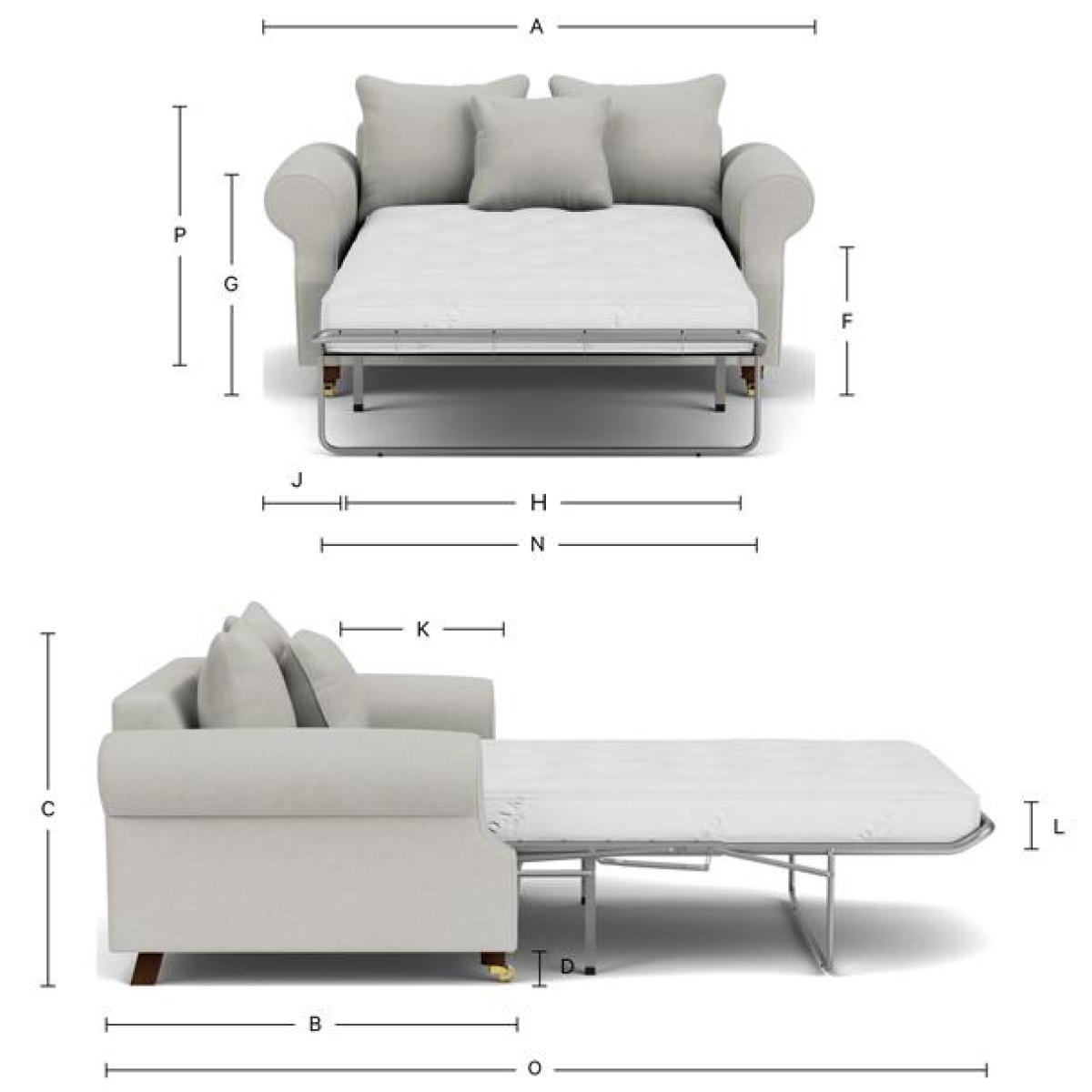 With its stylish curved arms and sumptuous seat, the Kendal scatter back 2 seater sofa bed is all about comfort, and enjoy the extra functionality of being a sofa bed and then move on to colour and material, with our extensive collection of over 170 luxury fabrics and leathers at your disposal. Finish by deciding on the cushion type, foot colour, contrast piping and whether you'd like any additional scatter cushions. All our sofa beds are handmade by expert craftspeople in the UK, using a combination of traditional skills, new technology and the finest materials. External (cm): - Width (A) = 170 - Depth (B) = 100 - Height (C) = 96 Seat (cm): - Width (H) = 130 - Depth (K) = 50 - Height (F) = 55 Arm (cm): - Width (J) = 20 - Height (G) = 56 Legs (cm): - Height (D) = 12 Frame Height (without Feet): - Height (P) = 77 Mattress: - Width (N) = 116 - Depth (O) = 240 - Height (L) = 12