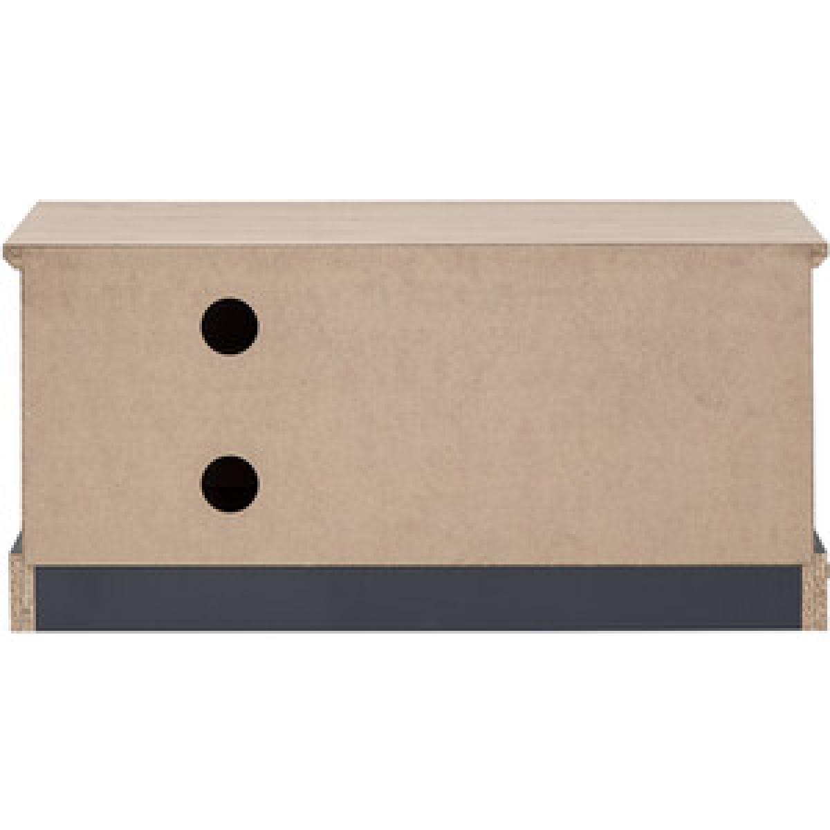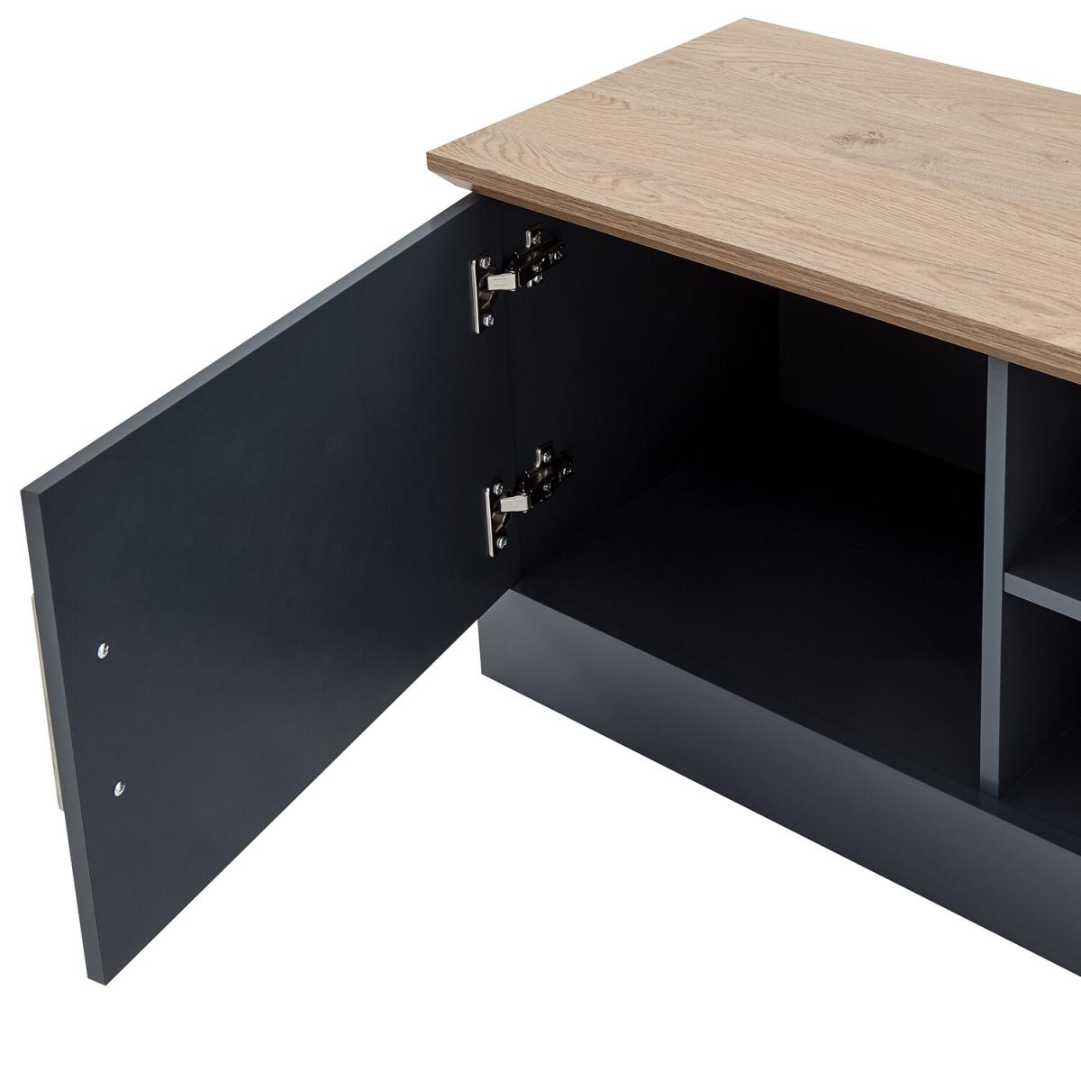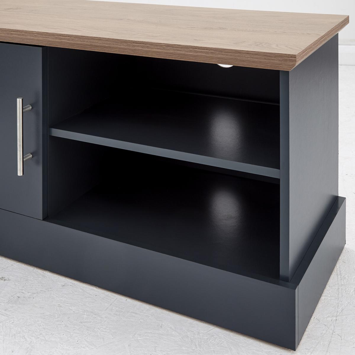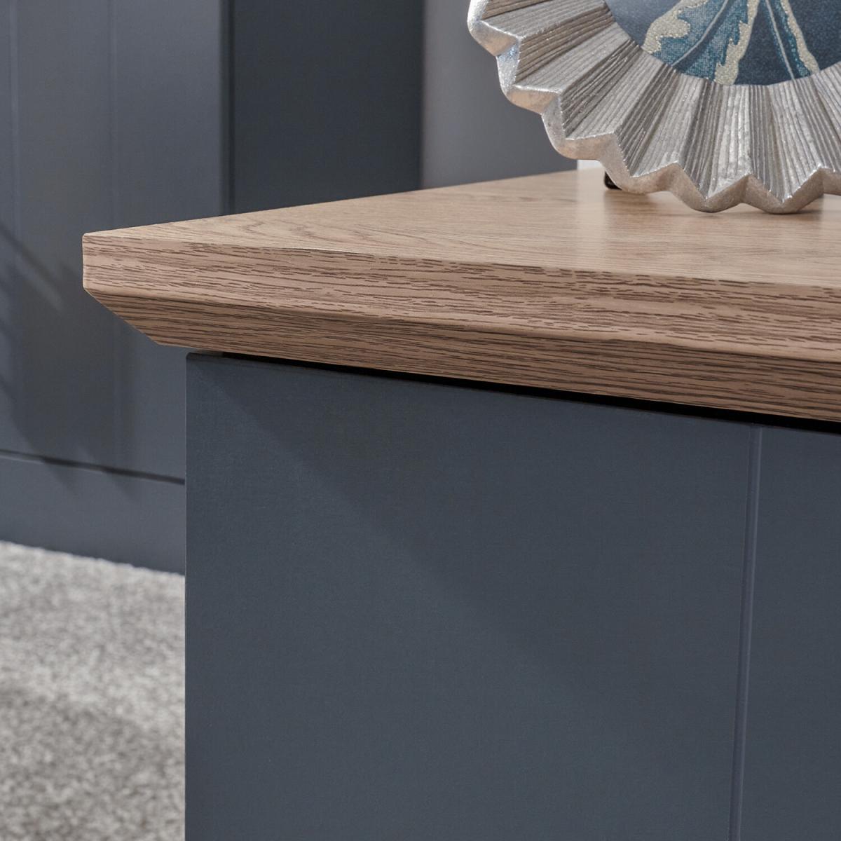 Even if you have only the most basic TV tech, TV screen plus viewing box or DVD player you need somewhere to put it. If you're not a fan of glass-and-chrome showboating, you may well favour a more classically designed furnishing piece like this Kendal Small TV Unit from the Kendal range. The unit's neat construction pairs a single door-fronted, groove-panelled cupboard with an open shelving section atop a deep base plinth all in slate blue or soft grey. The chunky oak-effect top adds rustic charm and provides sturdy support for a TV screen.