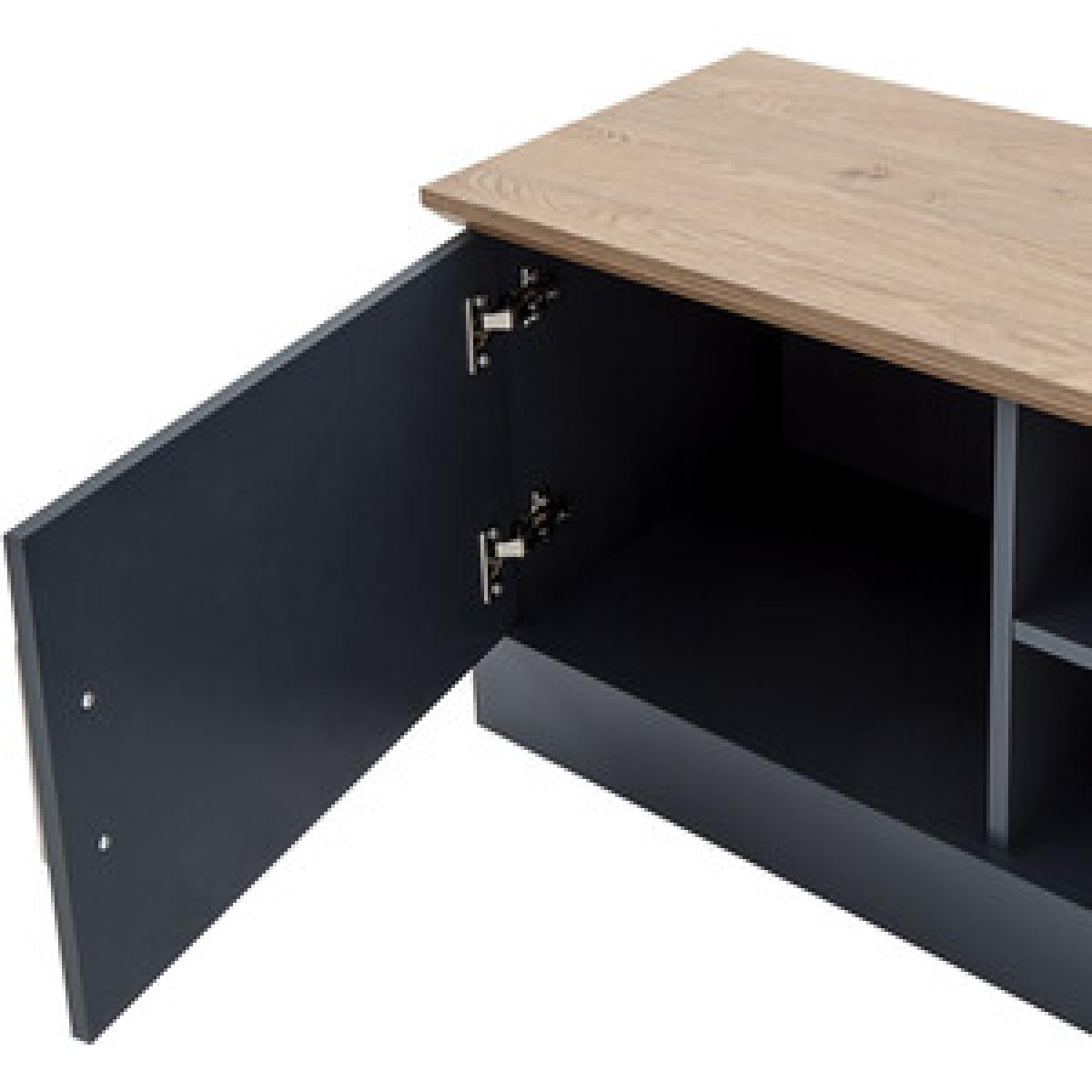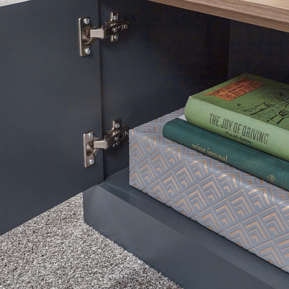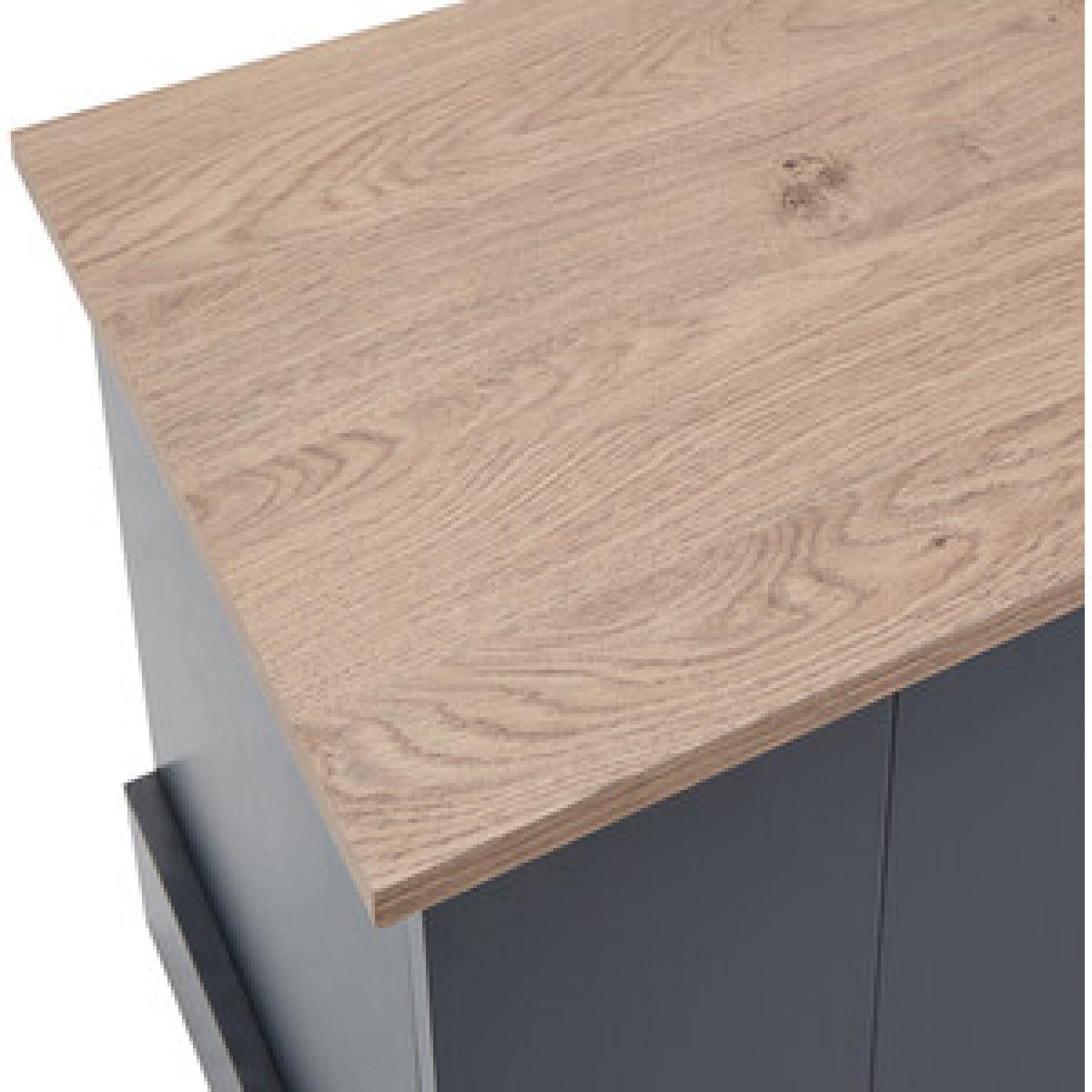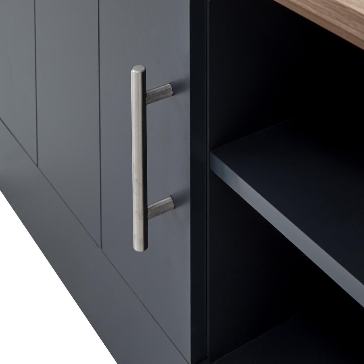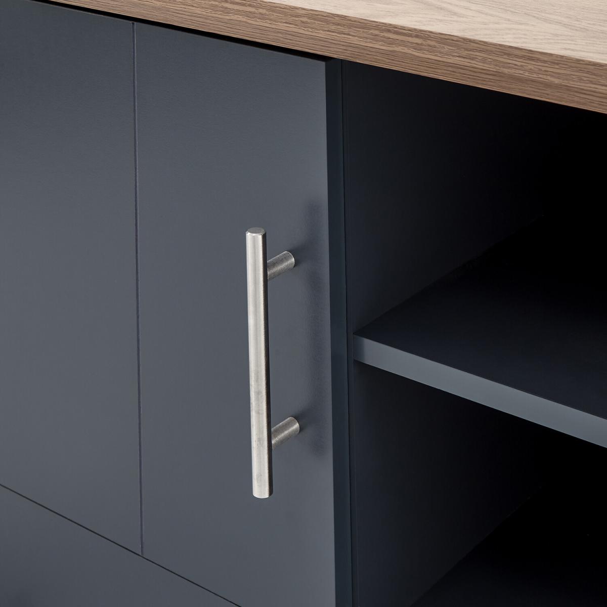 Even if you have only the most basic TV tech, TV screen plus viewing box or DVD player you need somewhere to put it. If you're not a fan of glass-and-chrome showboating, you may well favour a more classically designed furnishing piece like this Kendal Small TV Unit from the Kendal range. The unit's neat construction pairs a single door-fronted, groove-panelled cupboard with an open shelving section atop a deep base plinth all in slate blue or soft grey. The chunky oak-effect top adds rustic charm and provides sturdy support for a TV screen.