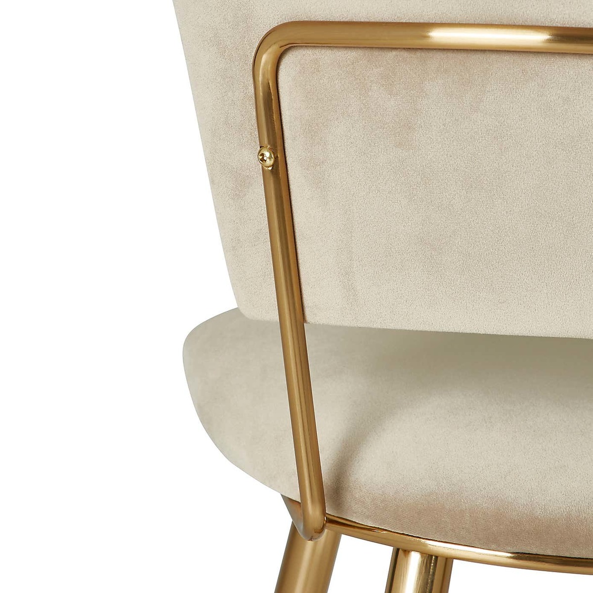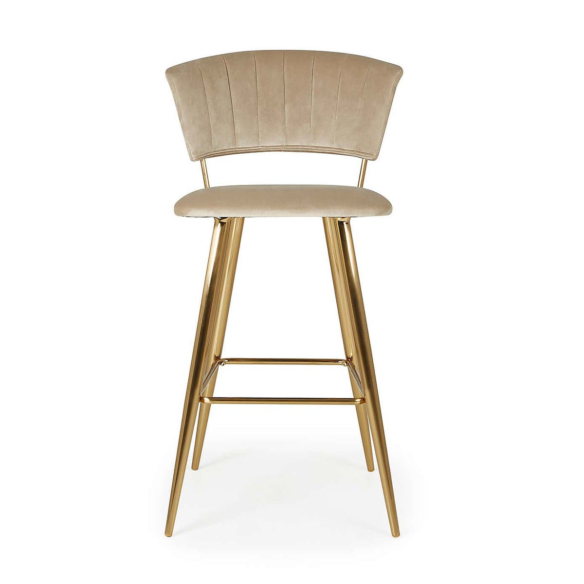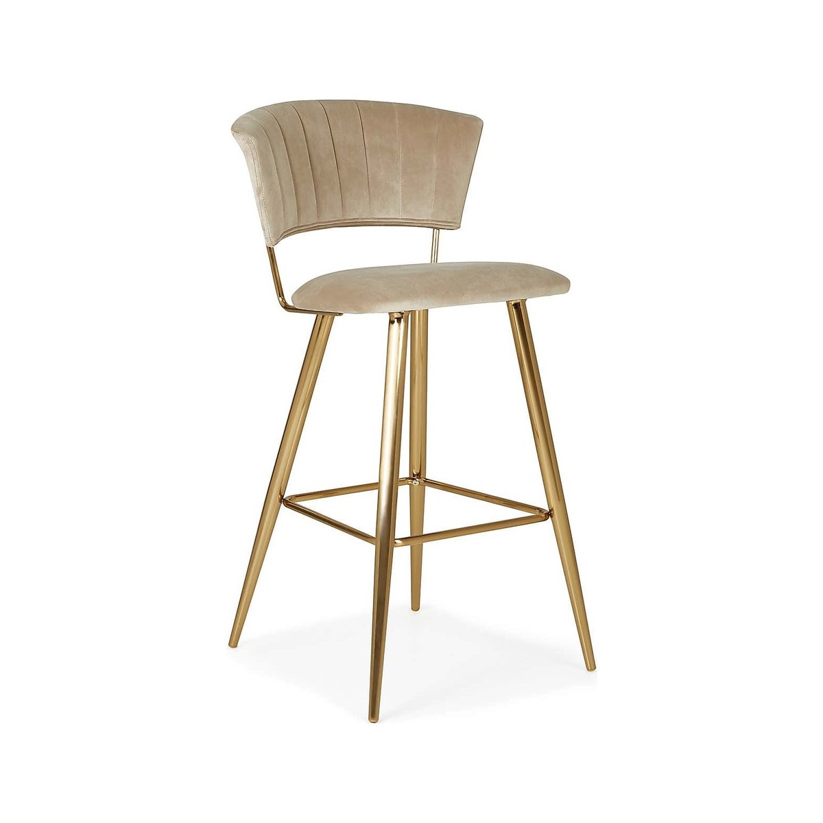 Finished in a plush velvet in a mink colourway to match the Kendall chair, this bar stool boasts a contemporary luxe design. This stylish bar stool is crafted with a pleated, curved shell back and gold-finished metal legs to add a modern touch to your kitchen area.