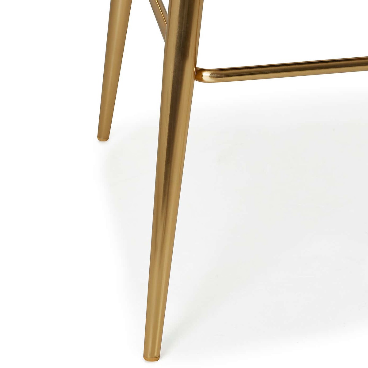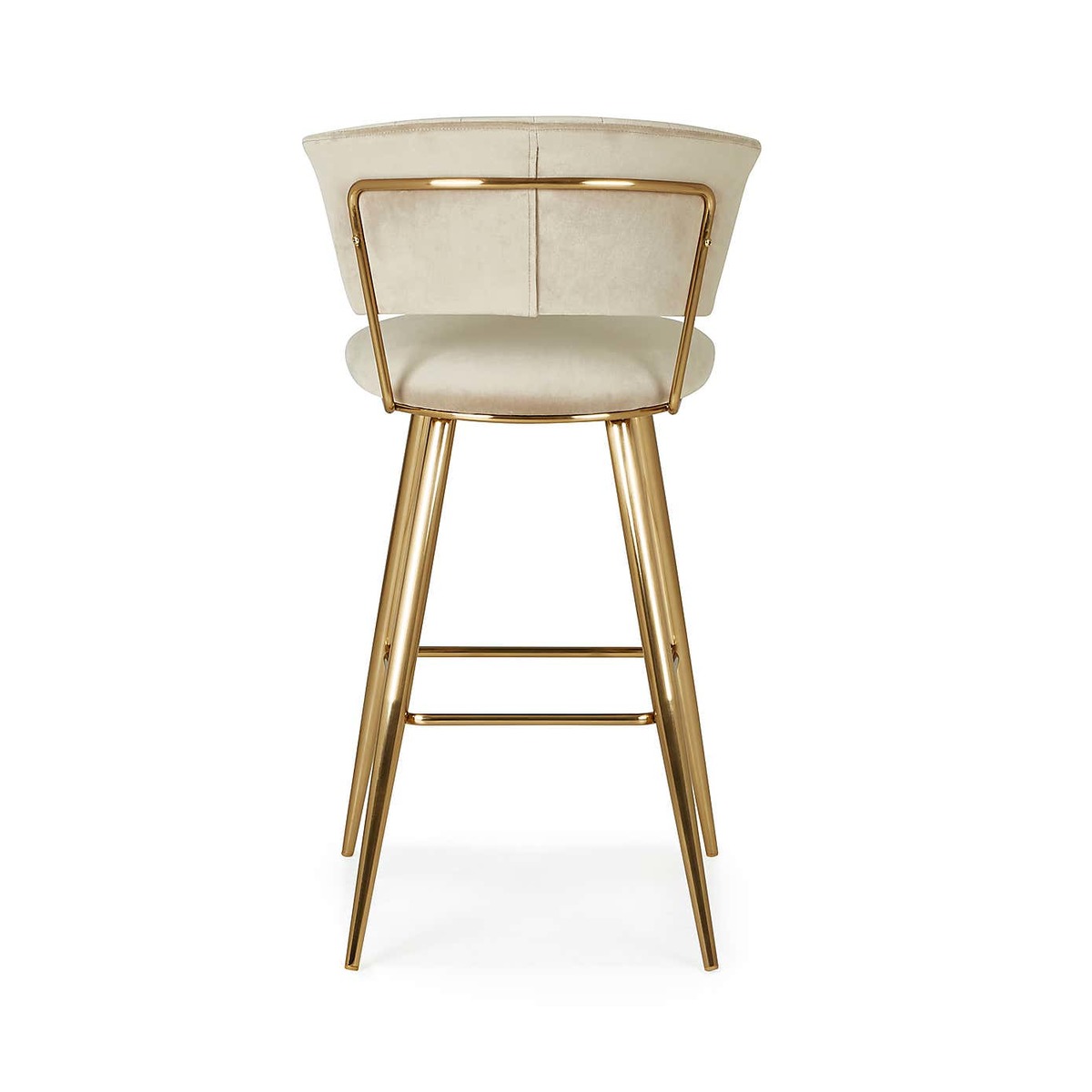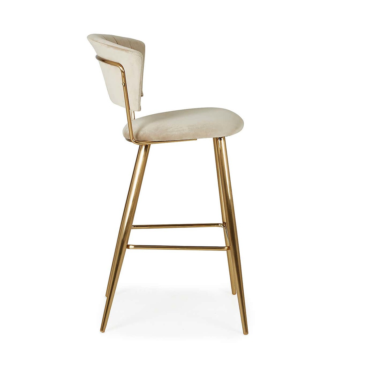 Finished in a plush velvet in a mink colourway to match the Kendall chair, this bar stool boasts a contemporary luxe design. This stylish bar stool is crafted with a pleated, curved shell back and gold-finished metal legs to add a modern touch to your kitchen area.