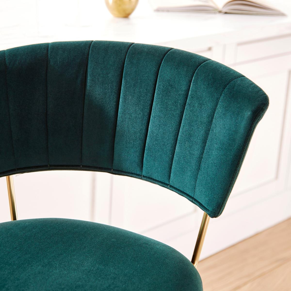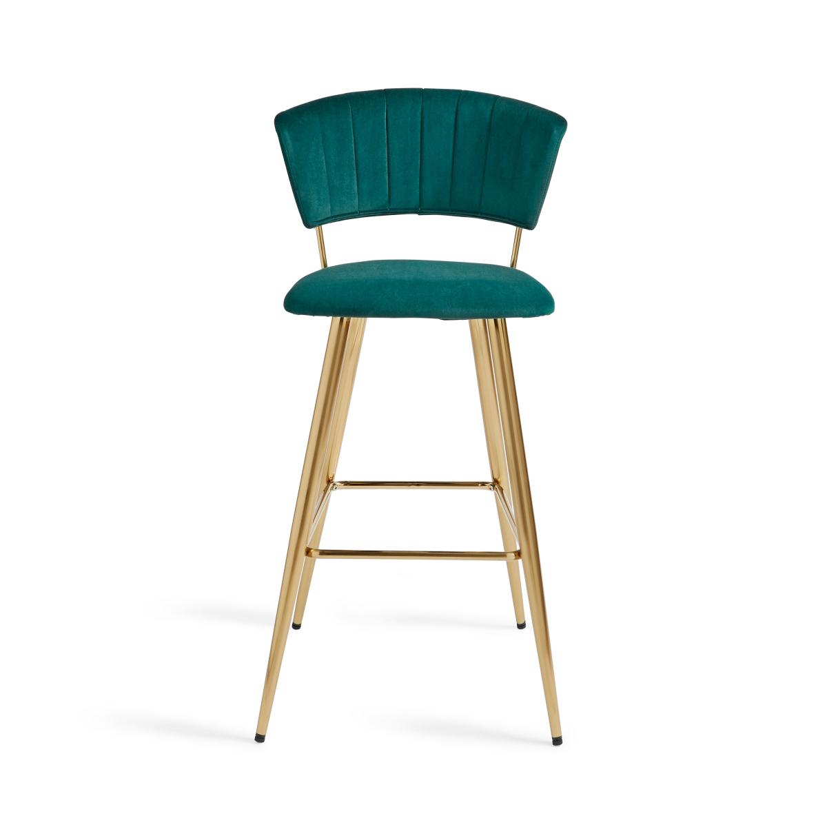 * Plush, soft velvet upholstery* Gold-finished metal legs* Contemporary, luxe design* Various, trendy colourways Finished in a plush velvet in a choice of stunning colours to match our Kendall chair, this bar stool boasts a contemporary luxe design. This stylish bar stool is crafted with a pleated, curved shell back and gold-finished metal legs to add a modern touch to your kitchen area. Care instructions: Keep fabric out of direct sunlight. Please Note: This product and any of its fabrics have been manufactured for domestic use only.