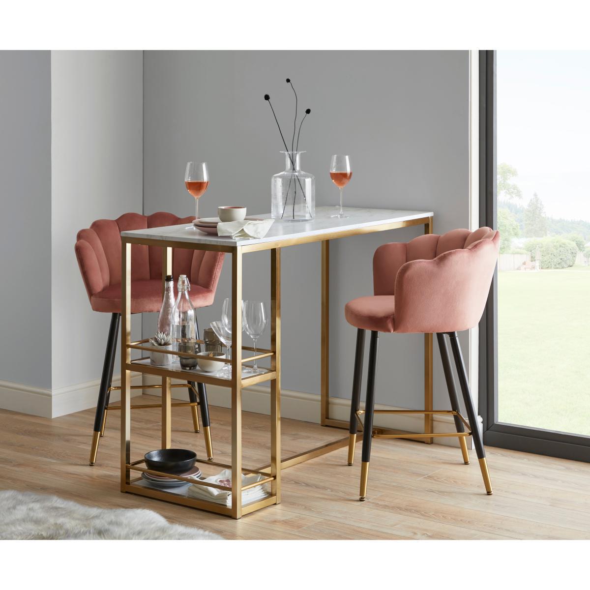 I love this bar table for its sleek marble top, which instantly elevates the look of any space. It’s perfect for creating a sophisticated bar or coffee area in a contemporary or modern interior. It works especially well in open-plan kitchens or dining areas where you want to introduce a touch of elegance without overwhelming the space. For styling, consider pairing it with soft, plush stools or chairs to contrast the marble’s cool, polished surface. Adding a few chic glassware or decorative pieces on the shelf underneath can also bring in practical charm. Keep the colour palette neutral or add metallic accents to complement the marble’s natural veining-this will help it stand out while maintaining a harmonious aesthetic.
