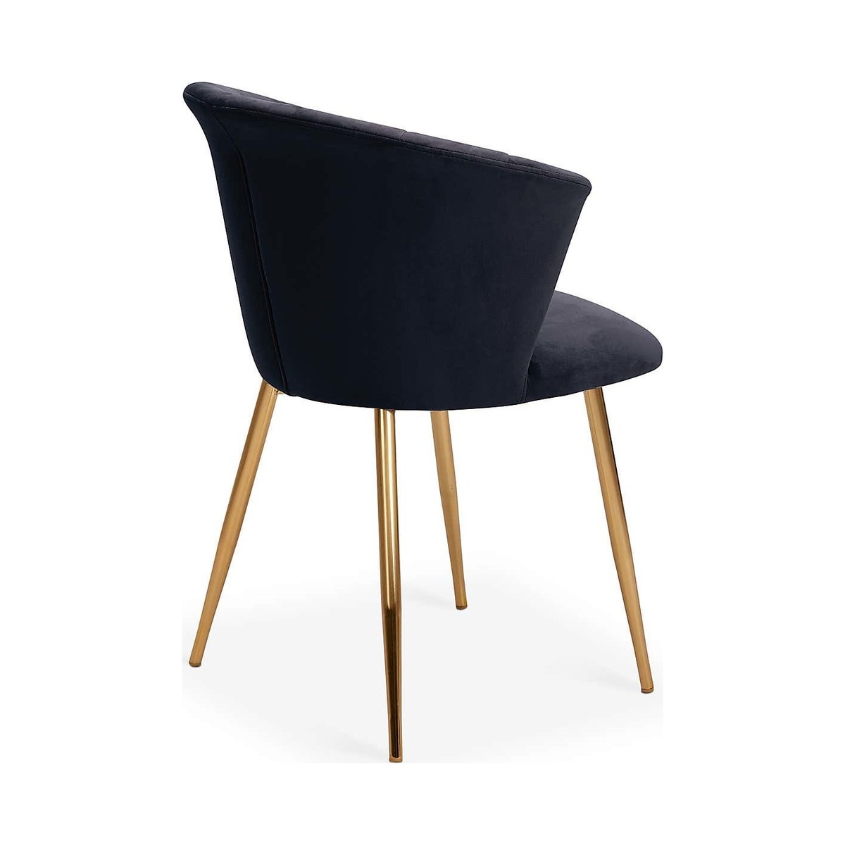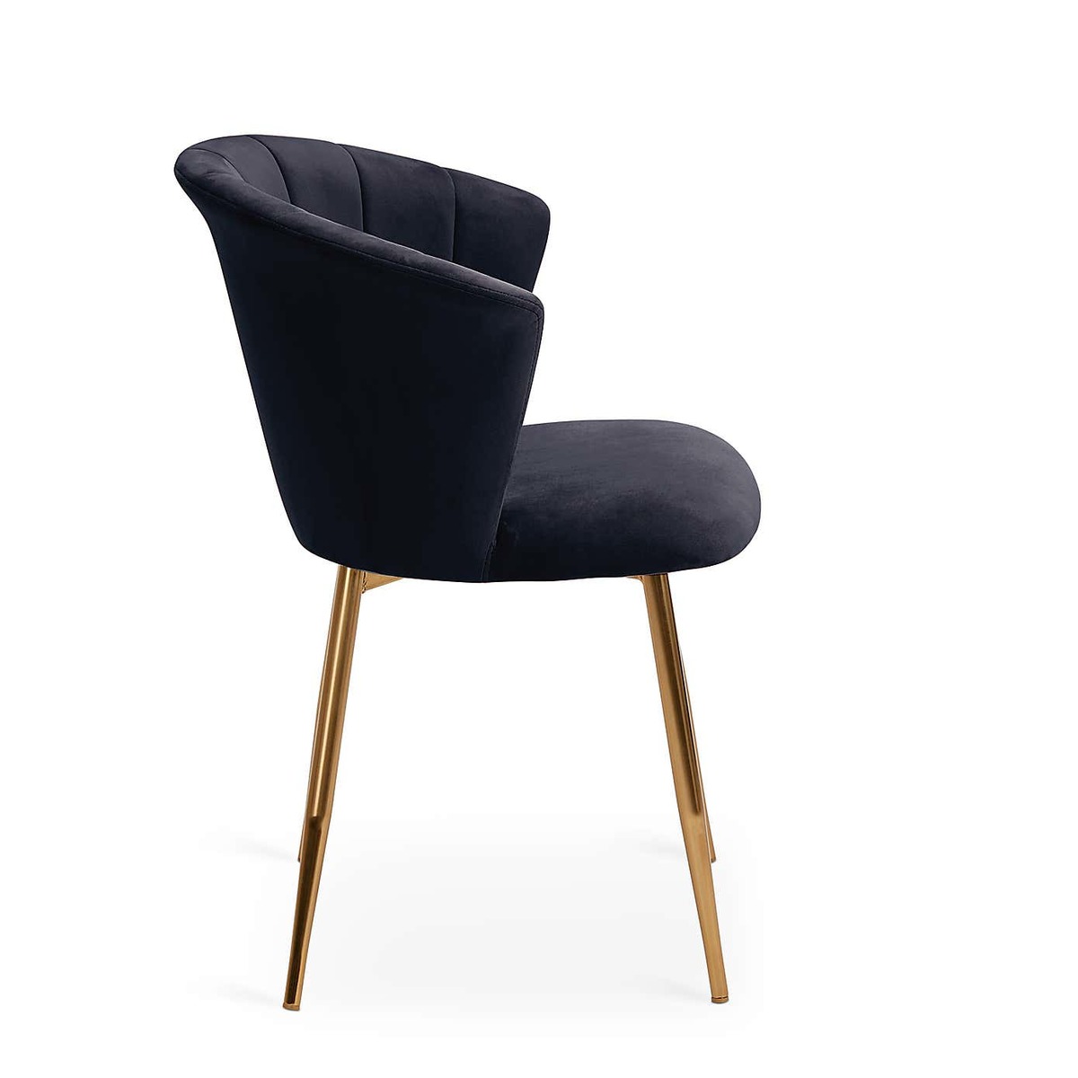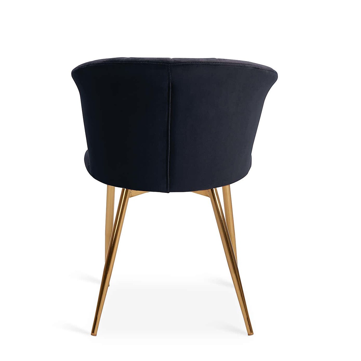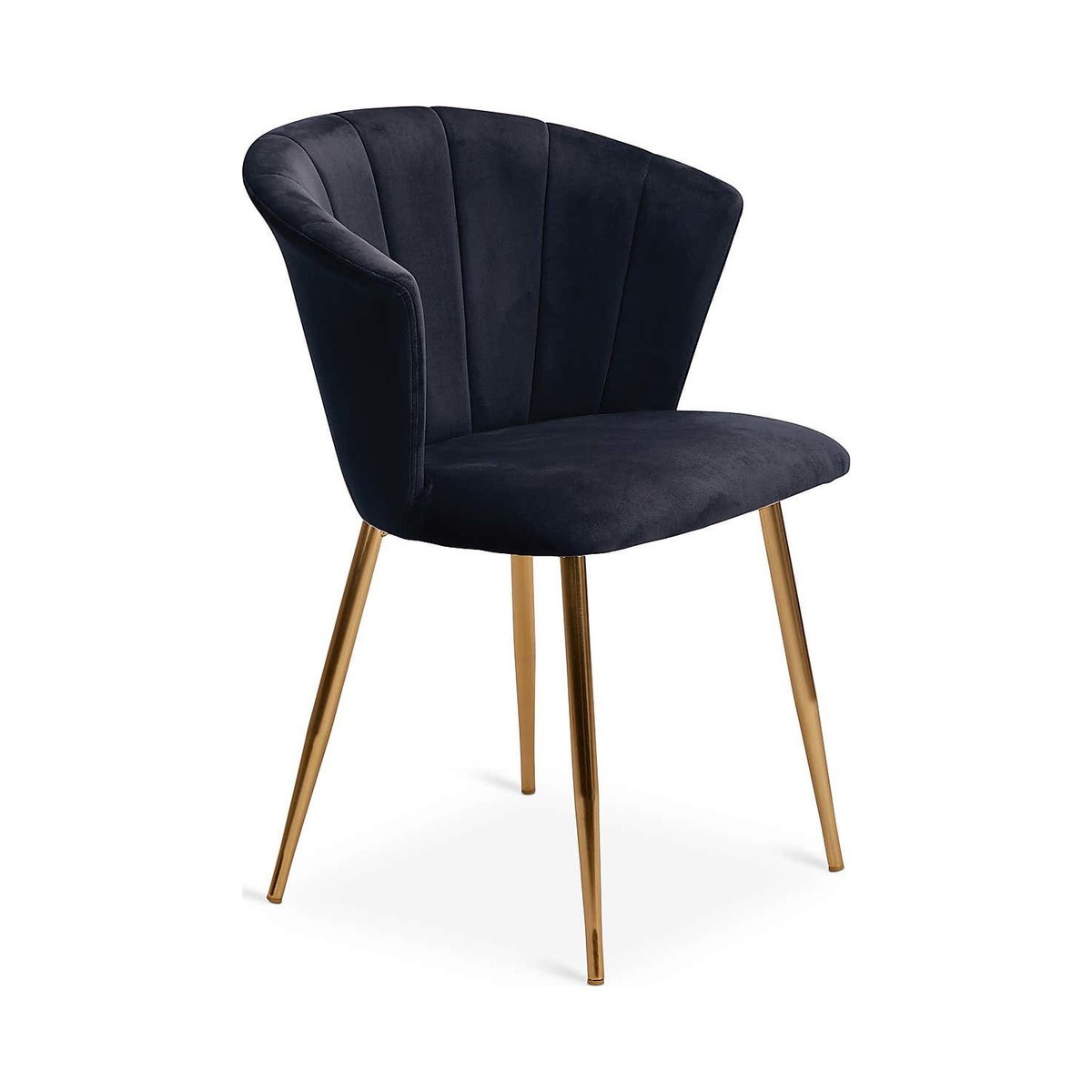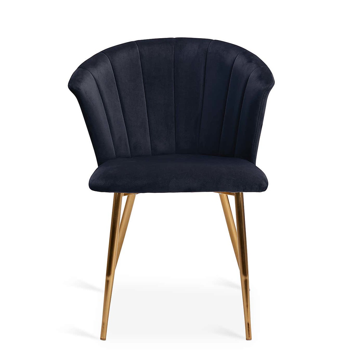 Finished in a rich velvet in a ink colourway, the Kendall chair features a generously proportioned, foam-filled seat for added comfort. Inspired by traditional art deco designs, this stylish chair is crafted with a pleated, curved shell back and gold-finished metal legs to add a contemporary touch.