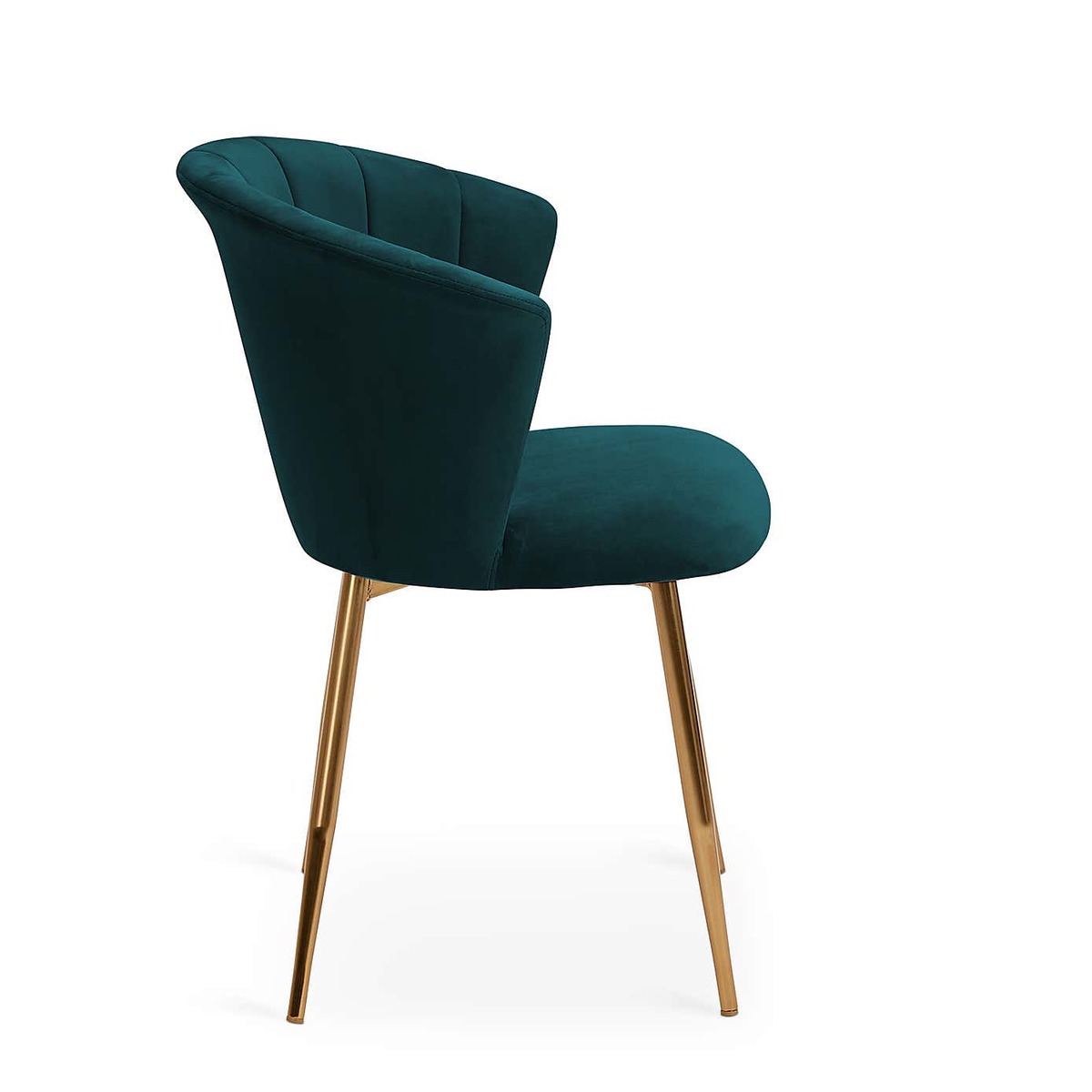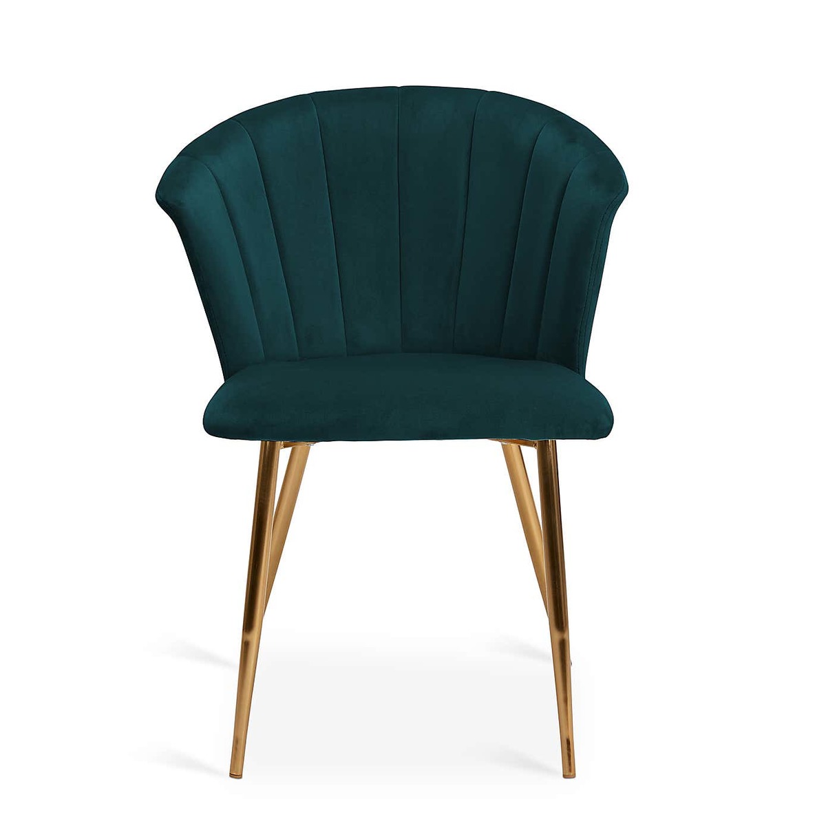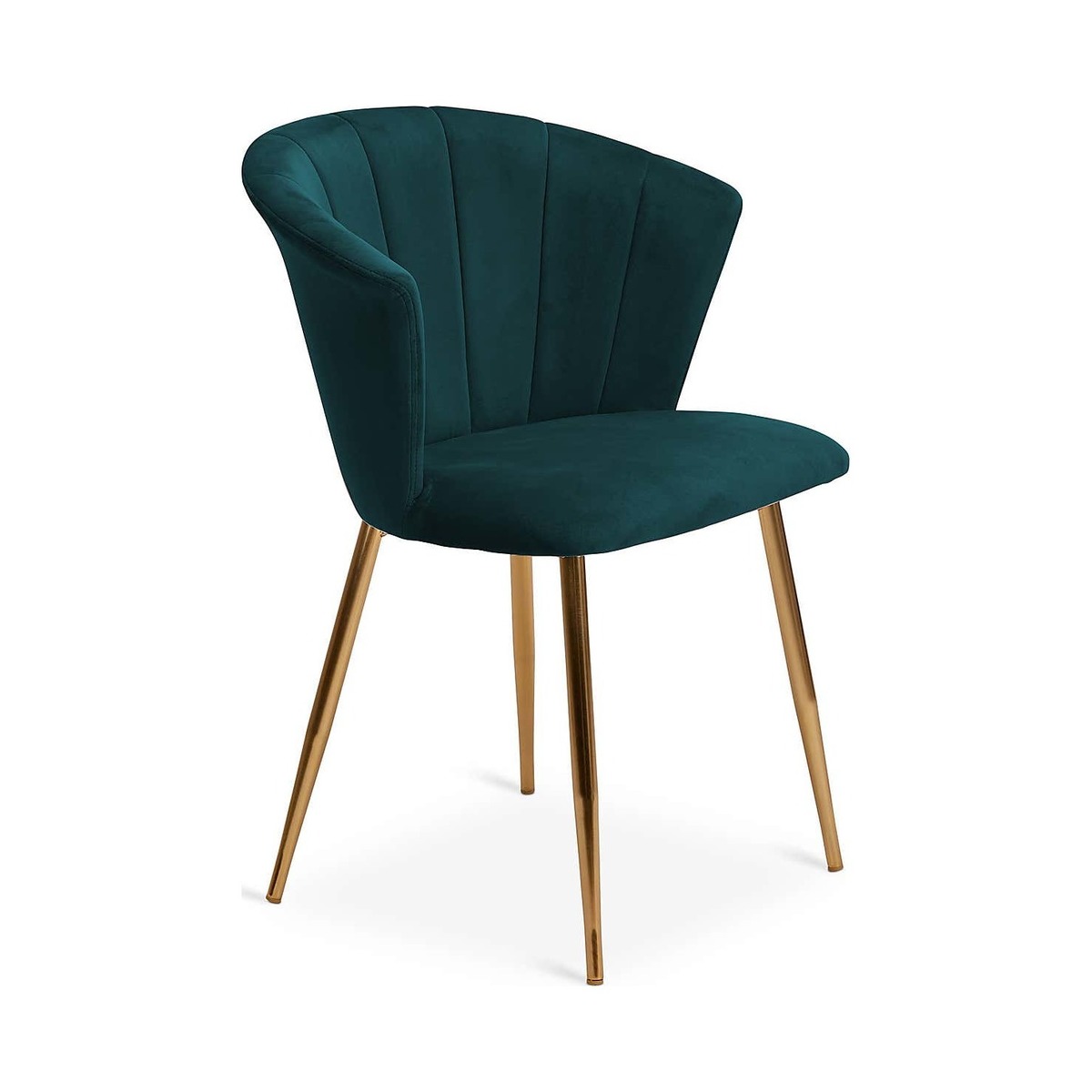 Finished in a rich velvet in a teal colourway, the Kendall chair features a generously proportioned, foam-filled seat for added comfort. Inspired by traditional art deco designs, this stylish chair is crafted with a pleated, curved shell back and gold-finished metal legs to add a contemporary touch.