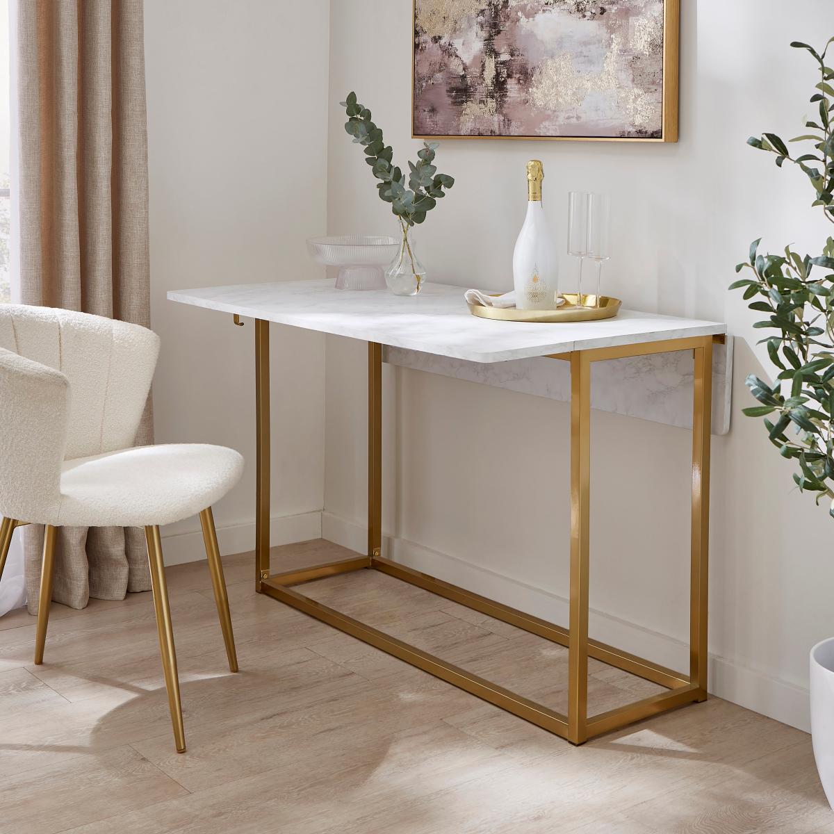 I’m a big fan of this console dining table for its space-saving versatility and clean marble-effect top paired with a warm brass-tone frame. It’s ideal in modern minimal, Scandi or contemporary glam schemes, sliding from sofa‐side console to a full dining surface in seconds. To style it, keep tabletop clutter to a minimum - think a slim vase of fresh greenery, a stack of coffee-table books and a couple of sculptural candleholders. Pair with upholstered chairs in neutral or jewel-toned velvet to add texture, and layer under a simple geometric rug to define the dining area. In a hallway it works just as well as a slim desk or buffet, so you get serious flexibility in even the tightest of London flats.