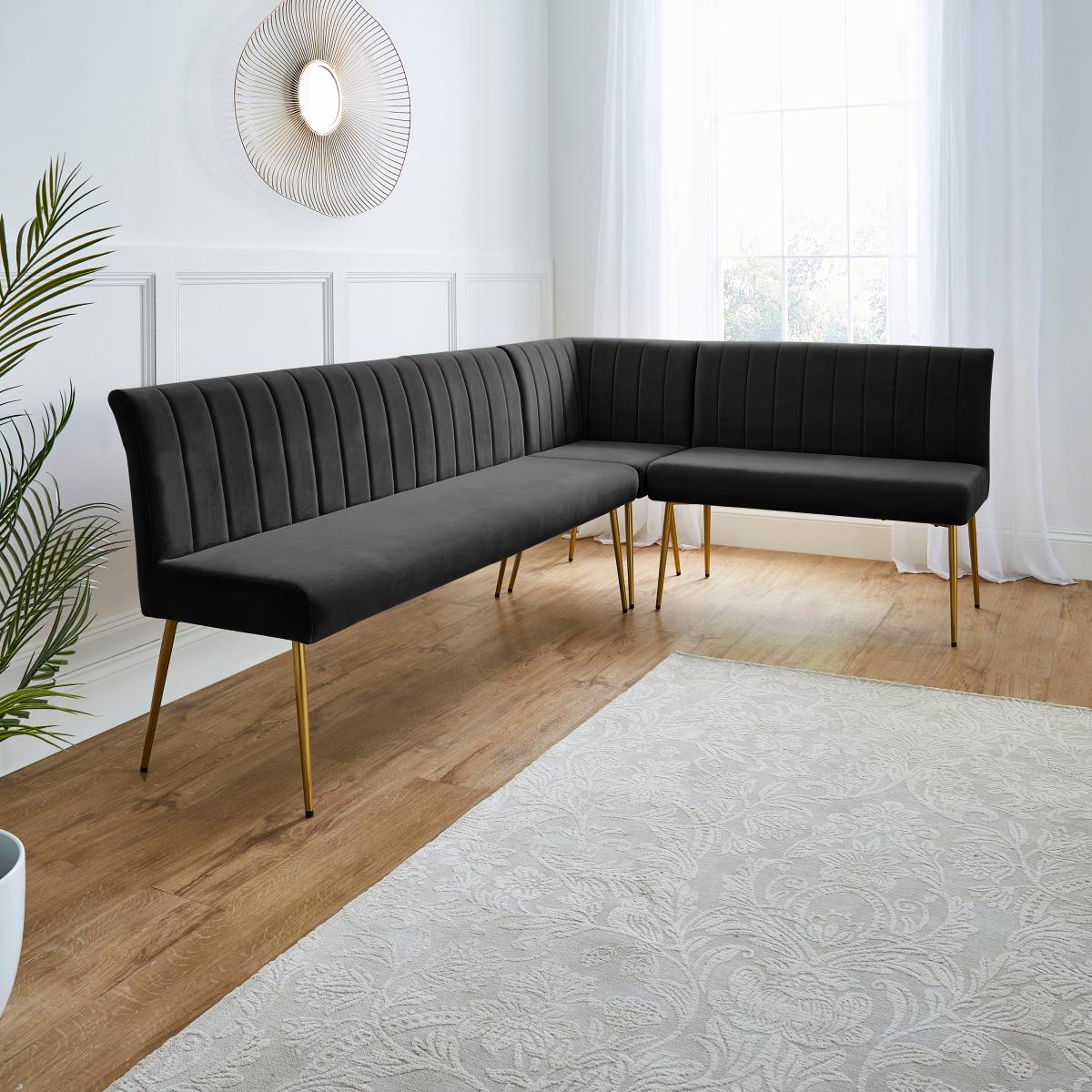 Kendall Corner Dining Bench, Velvet Black