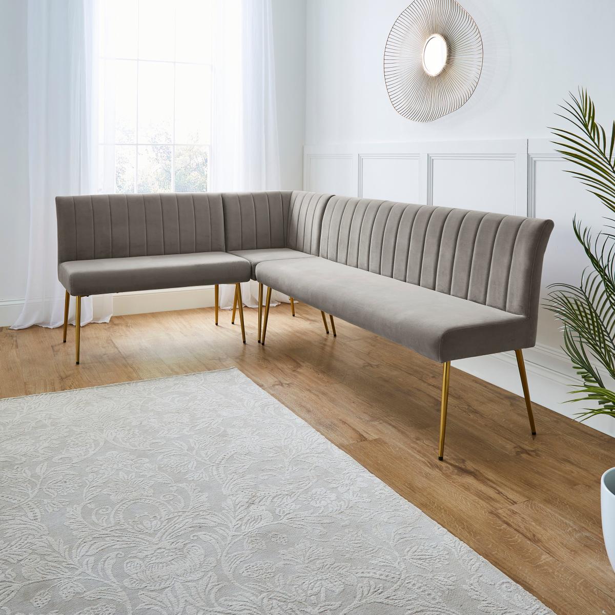Kendall Corner Dining Bench, Velvet Grey
