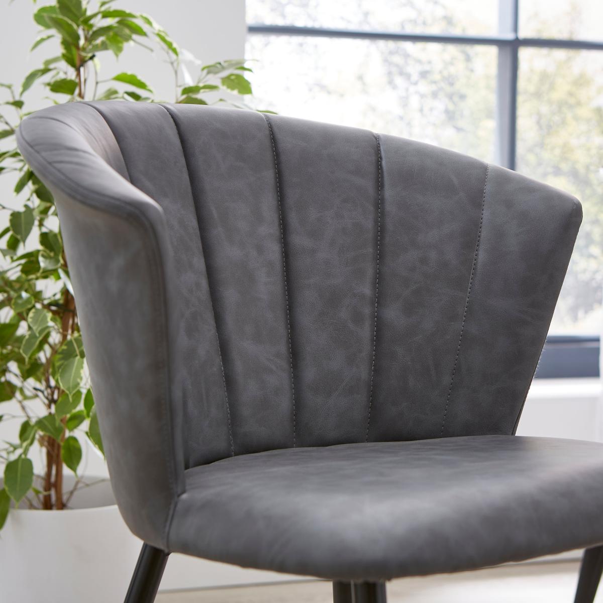 Save 10% on this item by using our DUN23AWFURN1. 0 code. Just enter the code when at the basket. *Terms and conditions apply* Please note, the discount code is only usable for the Brown colourway. With its pleated curved shell back and luxurious faux leather upholstery, this chair effortlessly combines sophistication with comfort, making it a perfect addition to any dining space. The faux leather upholstery not only replicates the allure of genuine leather but also offers a more affordable and animal-friendly alternative without compromising on style or texture. Designed to provide optimum comfort, the foam-filled seat and backrest of this chair offer plush cushioning, allowing you and your guests to indulge in leisurely dining experiences. Sink into the chair's embrace as you enjoy a sumptuous meal or engage in lively conversations around the dining table. With its neutral colour, this dining chair effortlessly blends into any interior decor, complementing both contemporary and traditional settings.