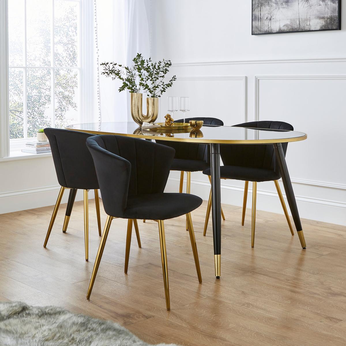 I’m a fan of this black velvet chair for its rich texture and slim brass legs - it brings a refined, modern edge without feeling bulky. It sits comfortably in contemporary, mid-century and art-deco-inspired schemes, adding just the right amount of luxe. Styling-wise, pair it with a glass or dark-wood table so the brass detail can shine, and anchor the set with a neutral rug. Keep centrepieces simple - a single ceramic vase or sculptural bowl - and balance the dark upholstery with pale walls or soft linens for contrast.