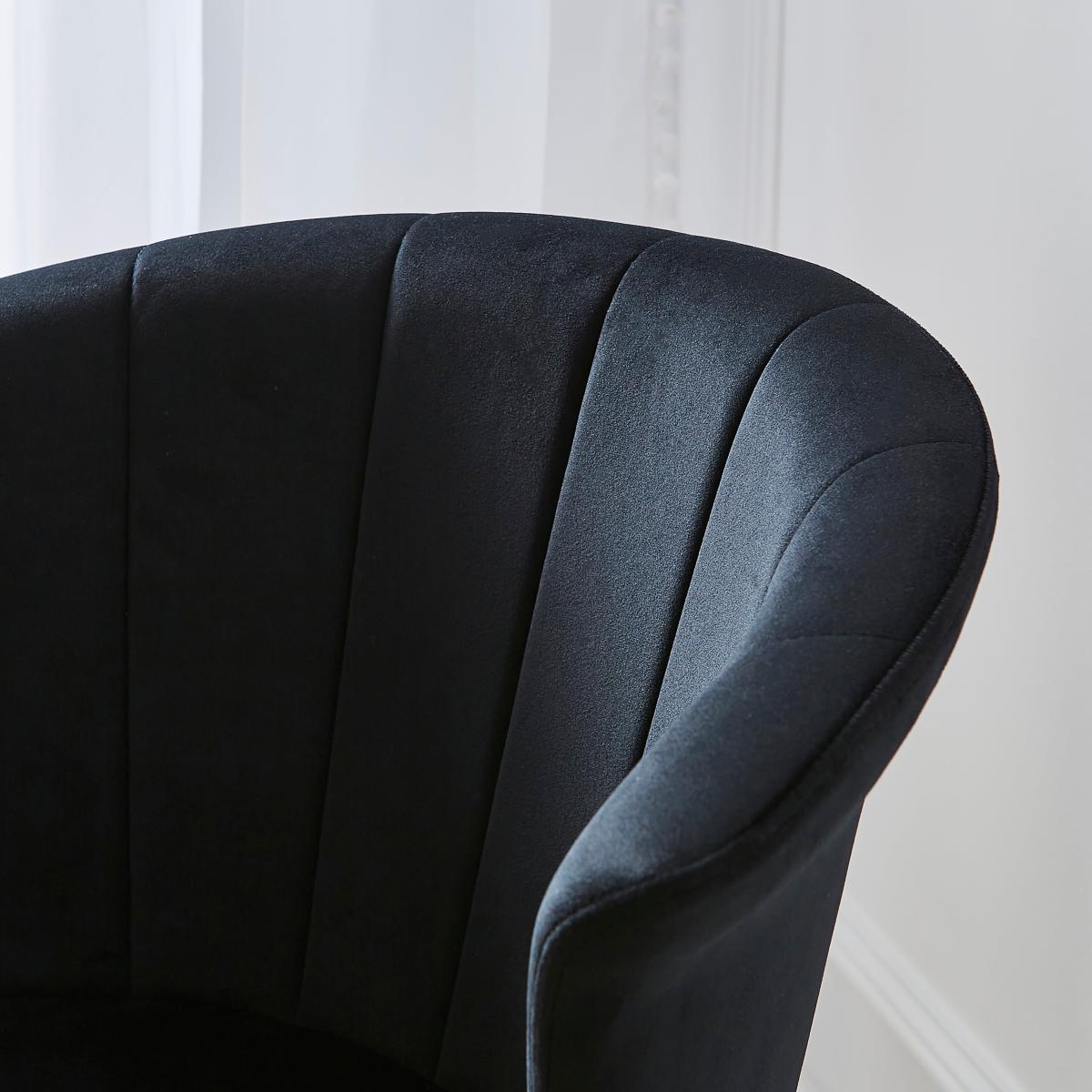 Dunelm Exclusive - Designed and Developed by Dunelm* Art deco inspired design* Plush, soft velvet upholstery* Gold-finished metal legs* Various, trendy colourways Finished in a rich velvet in a choice of colours, the Kendall chair features a generously proportioned, foam-filled seat for added comfort. Inspired by traditional art deco designs, this stylish chair is crafted with a pleated, curved shell back and gold-finished metal legs to add a contemporary touch. Care instructions: Keep fabric out of direct sunlight. Please Note: This product and any of its fabrics have been manufactured for domestic use only.