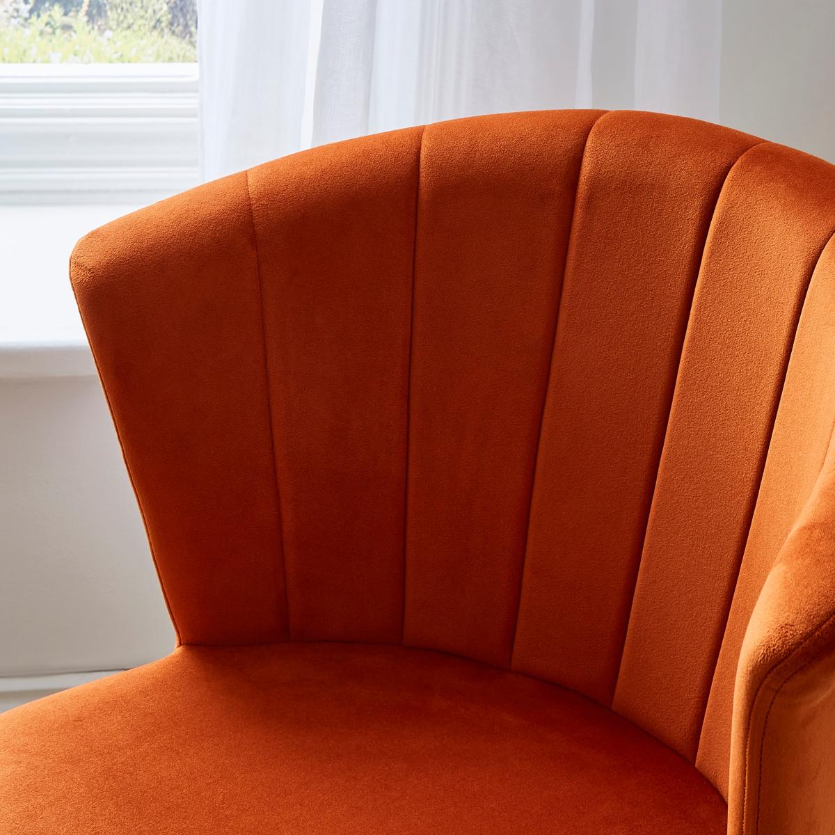 Dunelm Exclusive - Designed and Developed by Dunelm* Art deco inspired design* Plush, soft velvet upholstery* Gold-finished metal legs* Various, trendy colourways Finished in a rich velvet in a choice of colours, the Kendall chair features a generously proportioned, foam-filled seat for added comfort. Inspired by traditional art deco designs, this stylish chair is crafted with a pleated, curved shell back and gold-finished metal legs to add a contemporary touch. Care instructions: Keep fabric out of direct sunlight. Please Note: This product and any of its fabrics have been manufactured for domestic use only.