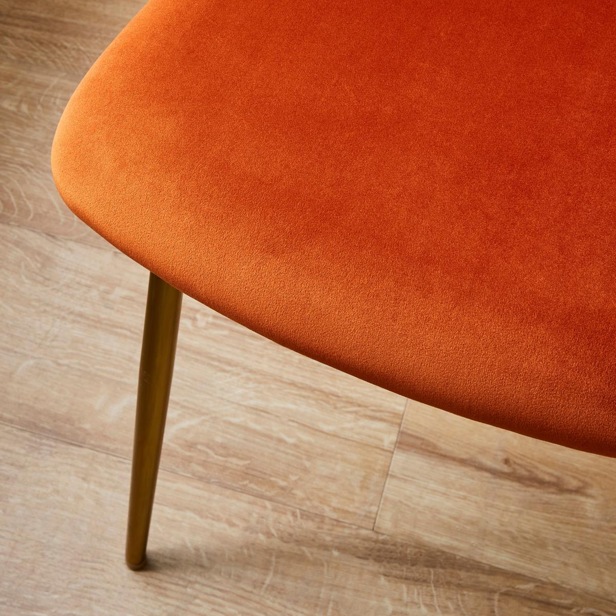 I’m a fan of this orange velvet dining chair for the way its curved back and slim brass-tipped legs lift an otherwise simple dining setup. The rich, warm hue works particularly well in contemporary and mid-century interiors, adding a dash of colour without overpowering the room. For styling, pair it with a light oak or marble-top table to balance the intensity of the seat, and introduce brass or black metal accents elsewhere - think a floor lamp or mirror frame - to tie in the leg detail. Keep linens and crockery in soft neutrals or muted greens to let the chair remain the focal point, and layer in a natural-fibre rug for texture underfoot.