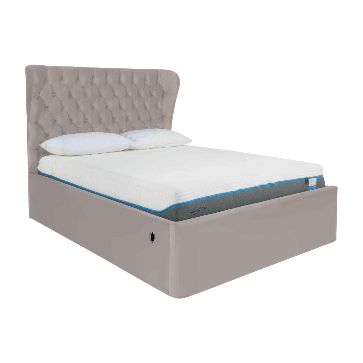 Traditional style gets a cool contemporary look in the Kendall collection of bed frames. The range, which comprises a bed frame and an end-lift ottoman bed frame, showcases a winged headboard adorned with beautiful buttoning. Sitting flush to the floor, bed frames are tall and imposing with clean lines and squared edges in the modern style. Bed frames are available in a wide choice of sophisticated upholstery fabrics. Handcrafted in the UK for Furniture Village. Need some extra storage? The Kendall ottoman bed frame offers a spacious storage compartment that’s perfect for keeping spare bedding hidden away. Why you'll love it This upholstered ottoman bed frame is elegant and practical. Traditional style with contemporary proportions. High winged headboard with beautiful all-over buttoning. End-lift ottoman conceals a large and useful storage compartment. Electric powered lift mechanism for easy access. Sprung base of beech wood slats encased in a metal frame is sturdy and supportive. Extensive range of sophisticated upholstery fabrics. In a choice of bed sizes – double, king and super king. Entirely handcrafted in the UK A Furniture Village exclusive. What you need to know Mattress not included. Please take care when opening and closing. Clean weekly using a soft brush or vacuum with the curtain attachment. Professional cleaning advised for oil- and grease-based stains. Some fabrics can show wear on areas of more use or in direct sunlight. A bed frame without ottoman storage is available in double, king and super king sizes.