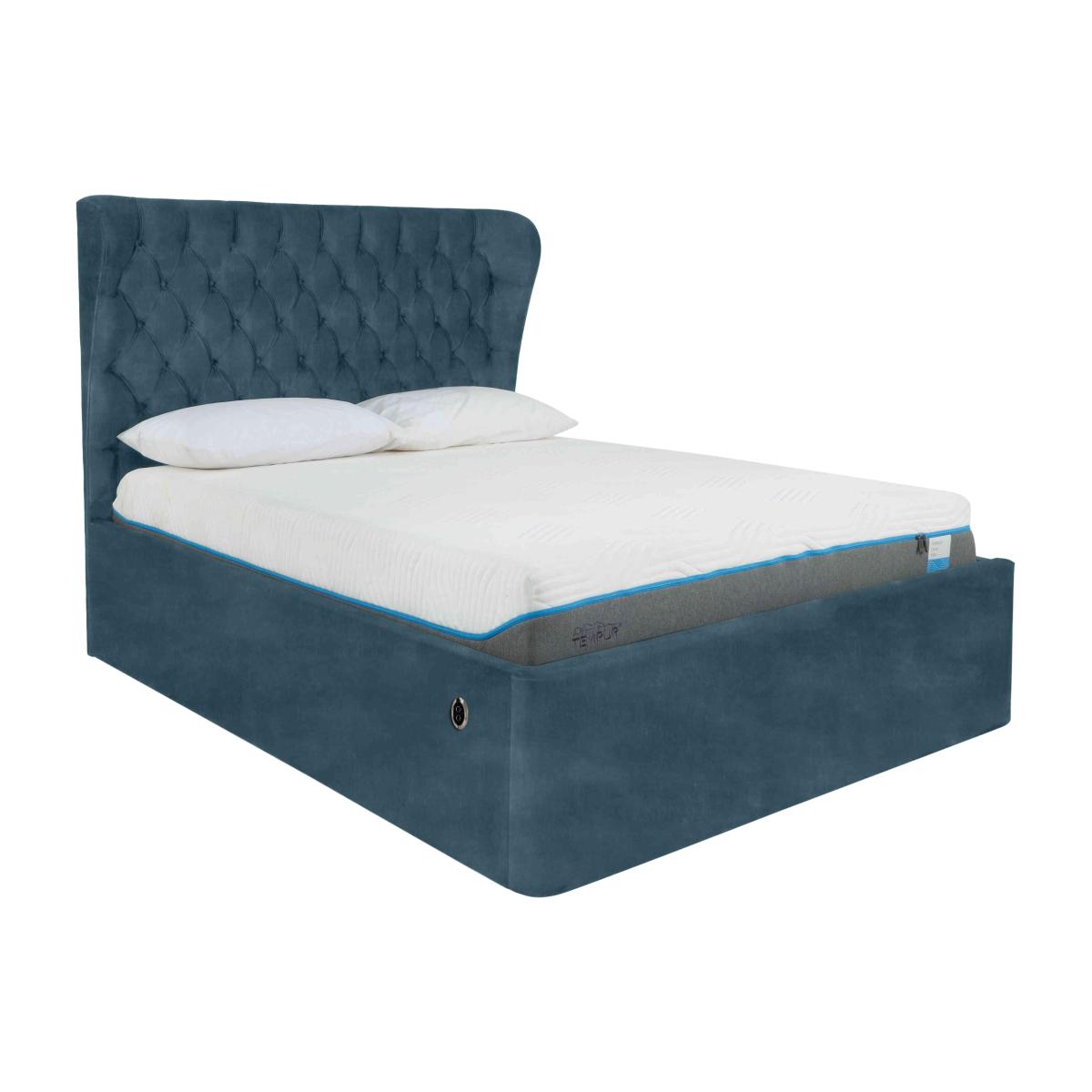 Traditional style gets a cool contemporary look in the Kendall collection of bed frames. The range, which comprises a bed frame and an end-lift ottoman bed frame, showcases a winged headboard adorned with beautiful buttoning. Sitting flush to the floor, bed frames are tall and imposing with clean lines and squared edges in the modern style. Bed frames are available in a wide choice of sophisticated upholstery fabrics. Handcrafted in the UK for Furniture Village. Need some extra storage? The Kendall ottoman bed frame offers a spacious storage compartment that’s perfect for keeping spare bedding hidden away. Why you'll love it This upholstered ottoman bed frame is elegant and practical. Traditional style with contemporary proportions. High winged headboard with beautiful all-over buttoning. End-lift ottoman conceals a large and useful storage compartment. Electric powered lift mechanism for easy access. Sprung base of beech wood slats encased in a metal frame is sturdy and supportive. Extensive range of sophisticated upholstery fabrics. In a choice of bed sizes – double, king and super king. Entirely handcrafted in the UK A Furniture Village exclusive. What you need to know Mattress not included. Please take care when opening and closing. Clean weekly using a soft brush or vacuum with the curtain attachment. Professional cleaning advised for oil- and grease-based stains. Some fabrics can show wear on areas of more use or in direct sunlight. A bed frame without ottoman storage is available in double, king and super king sizes.
