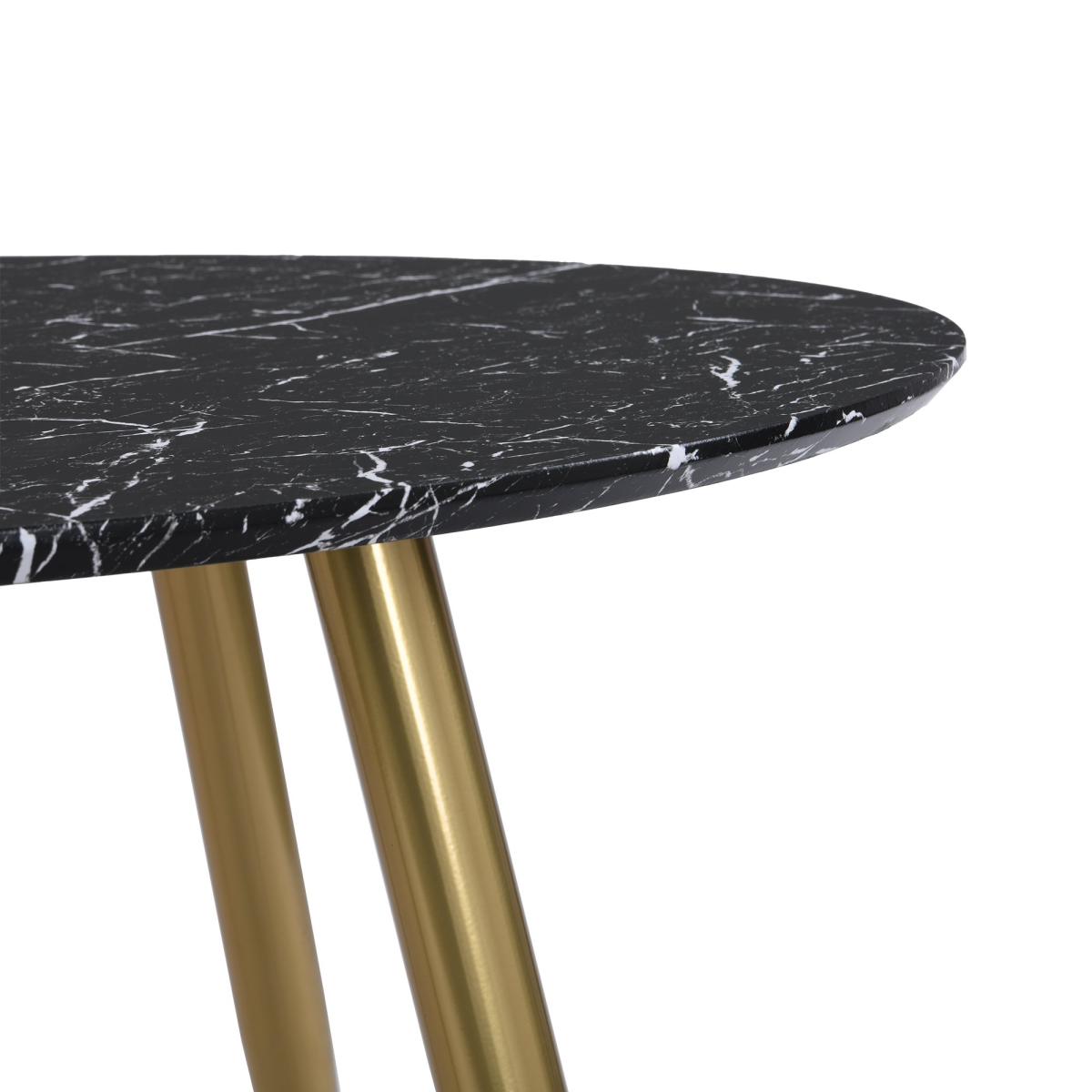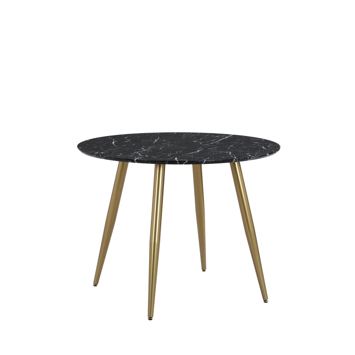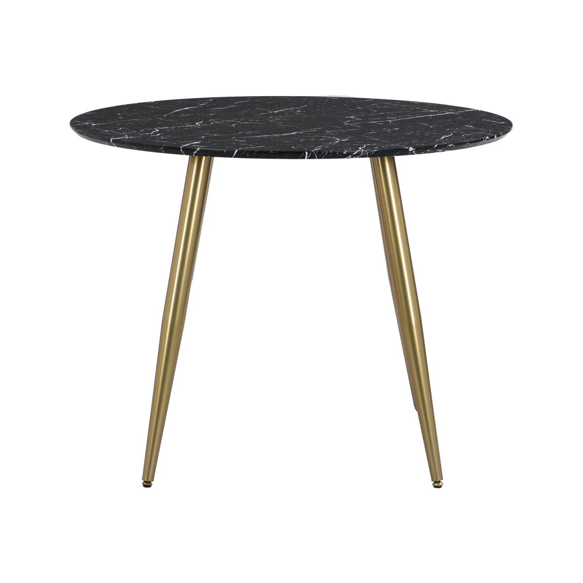 Sleek and sophisticated, the Kendall Faux Marble Round Dining Table combines a striking faux marble with splayed gold-finish metal legs for a truly contemporary look. This dining table seats 4 people comfortably, and adds a stylish touch to any home.