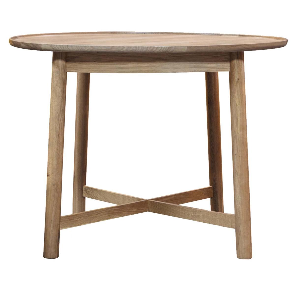 The Kendall Round Dining Table is a stylish addition to any dining room. Made using solid European Oak in a natural dry sheen level finish, this table has cross support beams connecting the four rounded legs, and a slightly lipped edge, while the circular shaped top enables conversation to freely flow. This practical choice has a timeless feel thanks to the natural material and simplistic design, which makes it the perfect addition to a family home and looks great alongside other pieces in the collection.