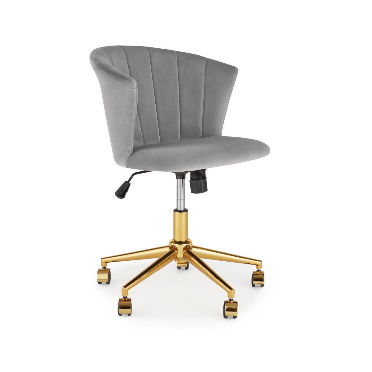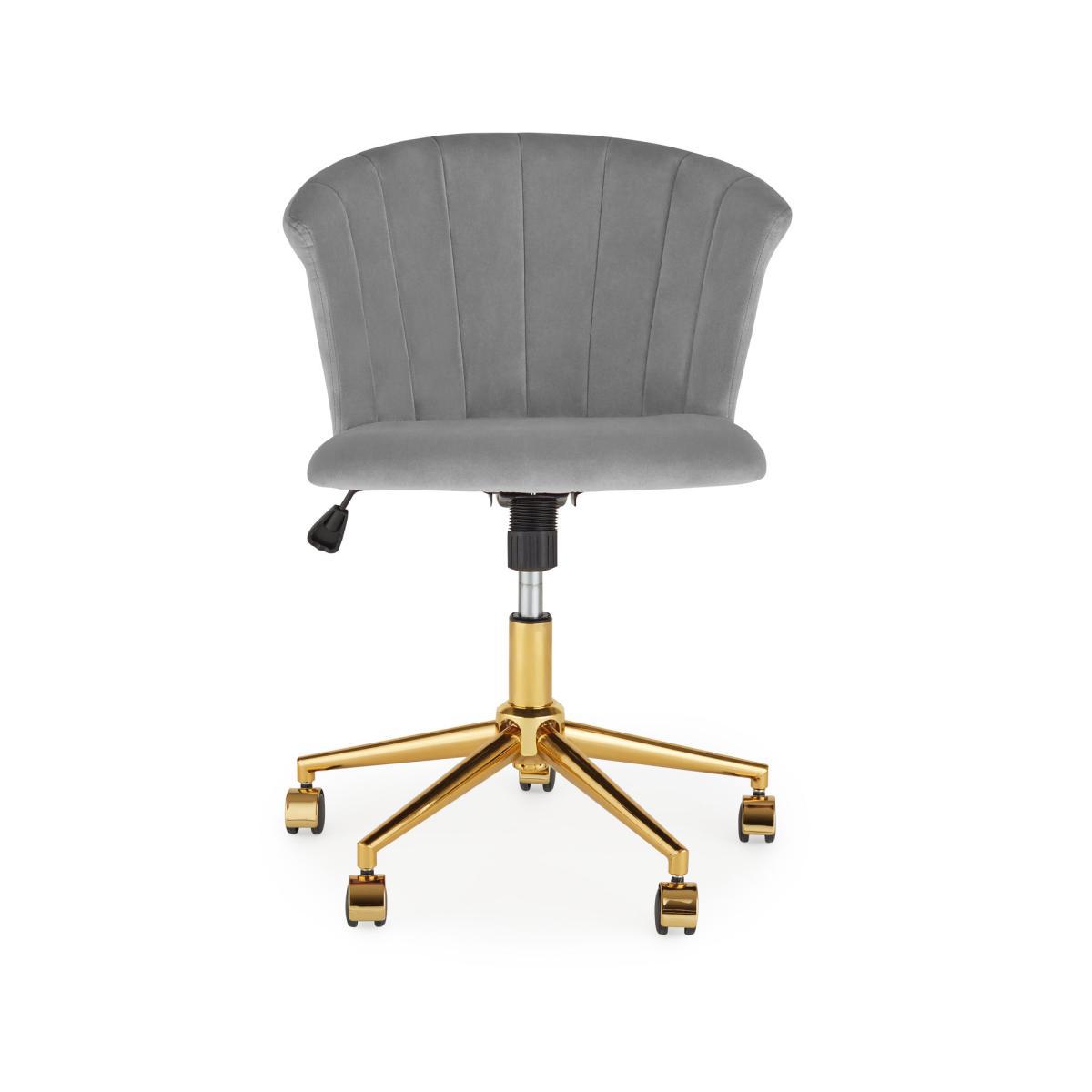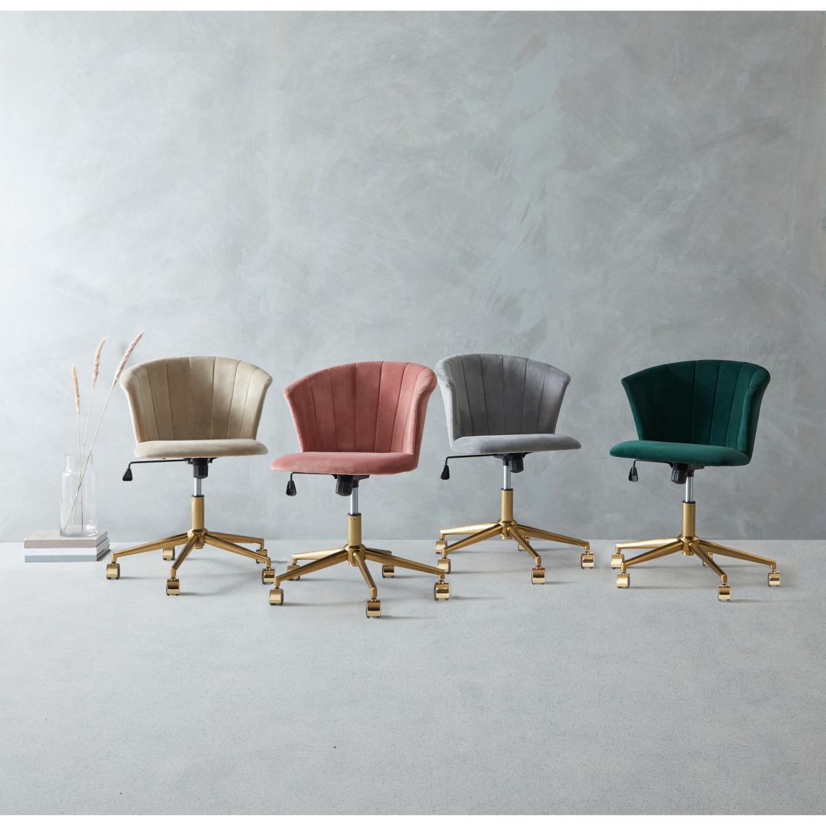 Finished in a soft touch velvet fabric in a seletion of gorgeous colourways, the Kendall office chair features a foam filled seat and curved backrest to provide maximum comfort. Inspired by traditional art deco designs, this elegant chair is crafted with a pleated, curved shell back and a gold finished metal base to add a contemporary touch. As practical as it is stylish, this office chair comes complete with a height adjustable gas lift mechanism, and a lockable tilt feature with weight tension control on a wheeled swivel base.