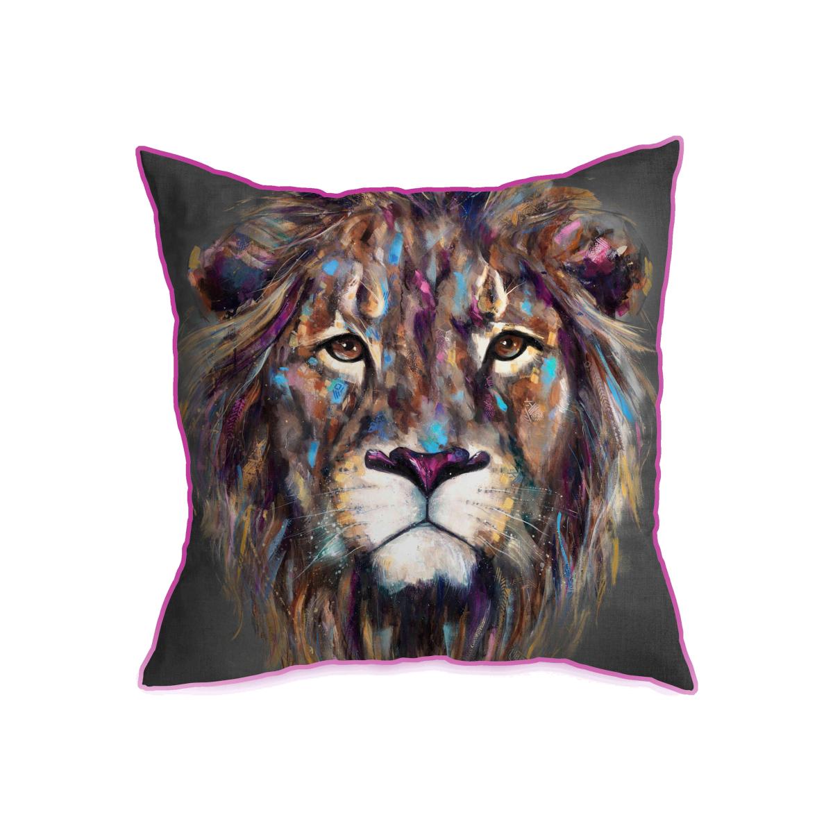 In a choice of lovely colourways, our small Kendi lion cushion makes a bold statement. A lovely piece for art lovers – and home lovers. Why you'll love it Small but beautiful, our Kendi lion cushion really draws the eye. A striking finishing touch for your living room. Features a faithful reproduction of original artwork by Louise Luton. In velvet with elegant piped edges. Two colourways. Soft fibre filling. For maximum impact, pair with the matching framed picture. Made in the UK. A Furniture Village online exclusive. This small cushion is part of the Furniture Village home accessories collection. What you need to know Backed with a plain coordinating fabric. For indoor use only. Some fabrics can show wear on areas of more use or in direct sunlight. Clean regularly using a soft brush or vacuum with the curtain attachment. Deal with any spills promptly. Professional cleaning advised for oil- and grease-based stains. Please read our upholstery care guide for more advice. Dimensions Height: 36 cm (15 in). Width: 36 cm (15 in).