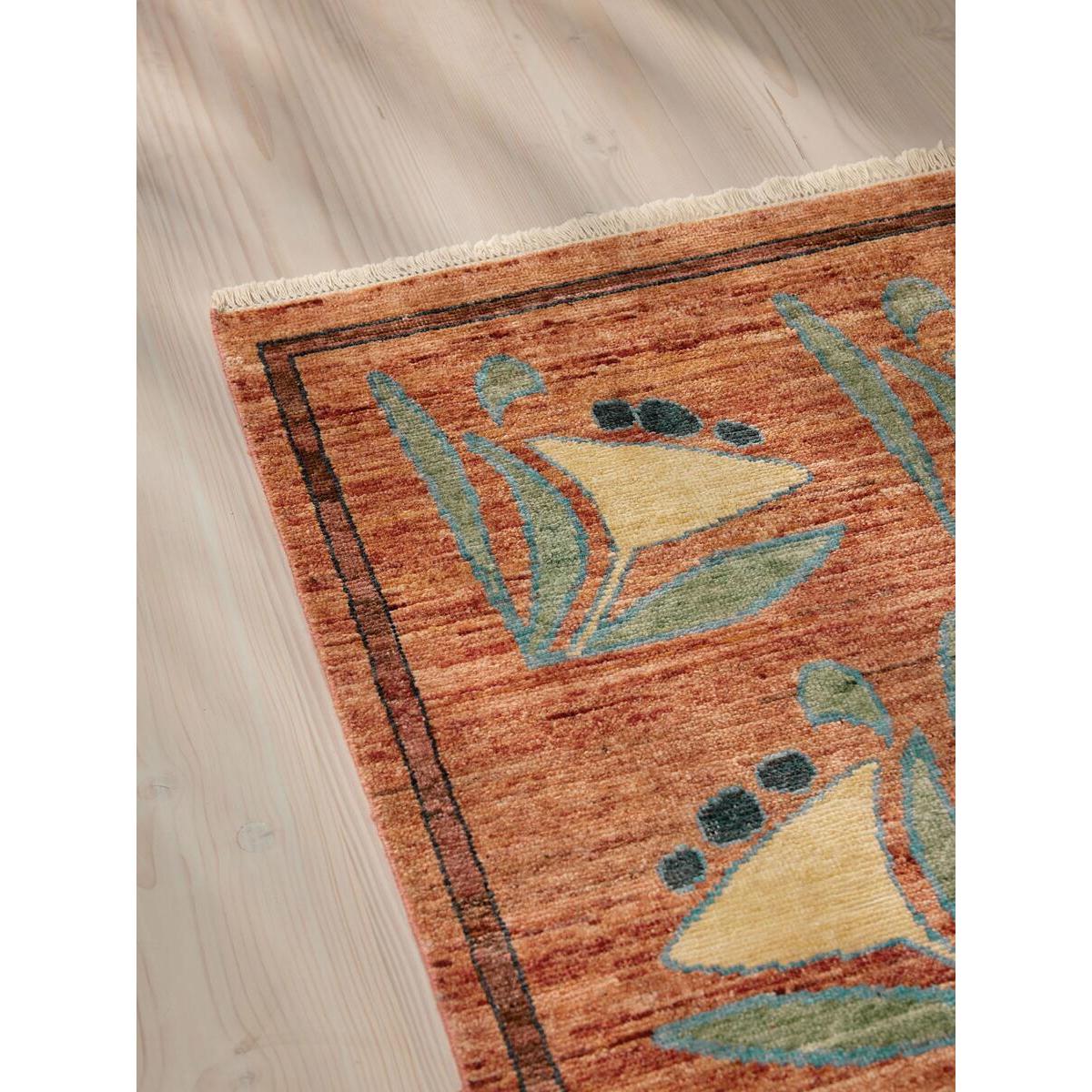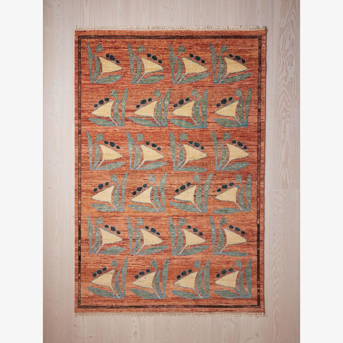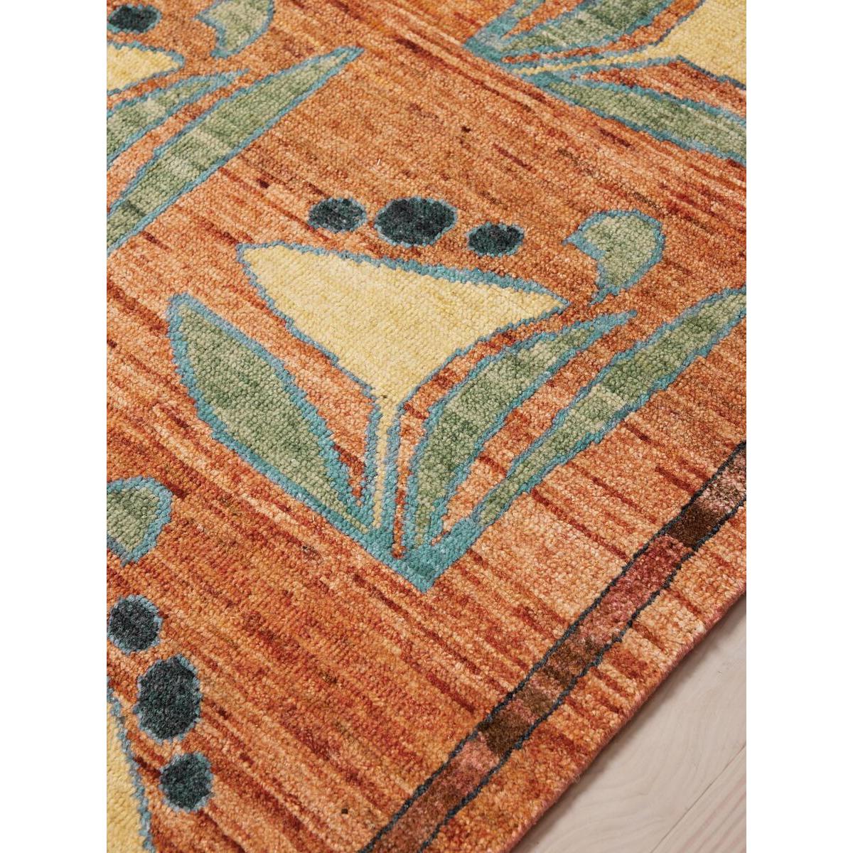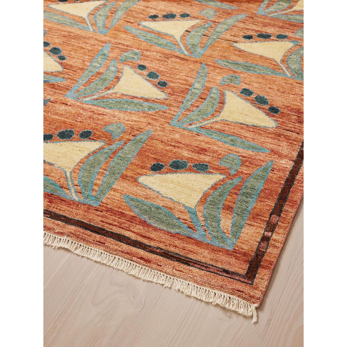 Our Kendra rug is based on a hand-painted artwork designed in-house, meaning no two are the same. Each floral motif is slightly varied, adding to its handcrafted feel, while the dappled colouring translates the highs and lows in the original artwork into the rug. Hand-knotted from wool by a group of skilled artisans in India, each rug takes up to six months to craft with as many as 63 knots per square inch for a hardwearing design. The rust-red shade will add instant warmth, while pairing well alongside our upholstery colours, with the pops of blue adding a vibrant contrast. Floral rug Based on hand-painted artwork designed in-house No two artworks the same Hand-knotted in India Each rug takes up to six months to craft 63 knots per square inch Hand-fringe detail Available in a range of sizes Inspired by Soho House Stockholm