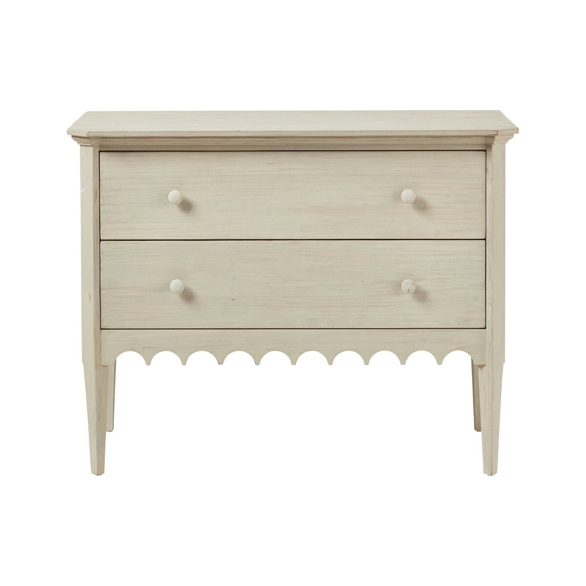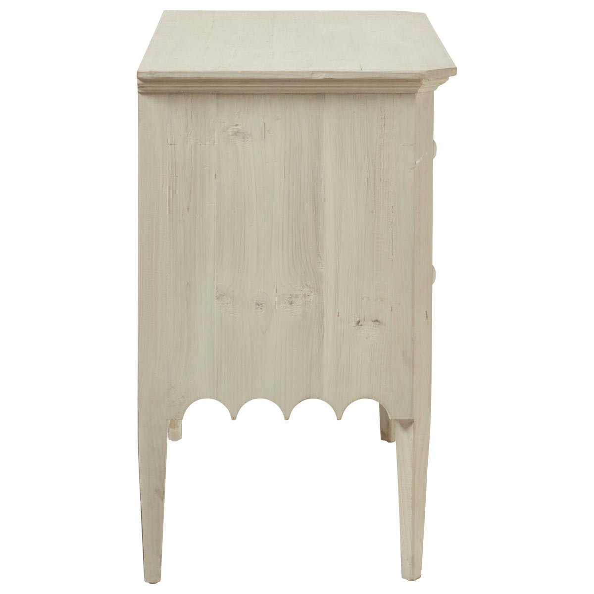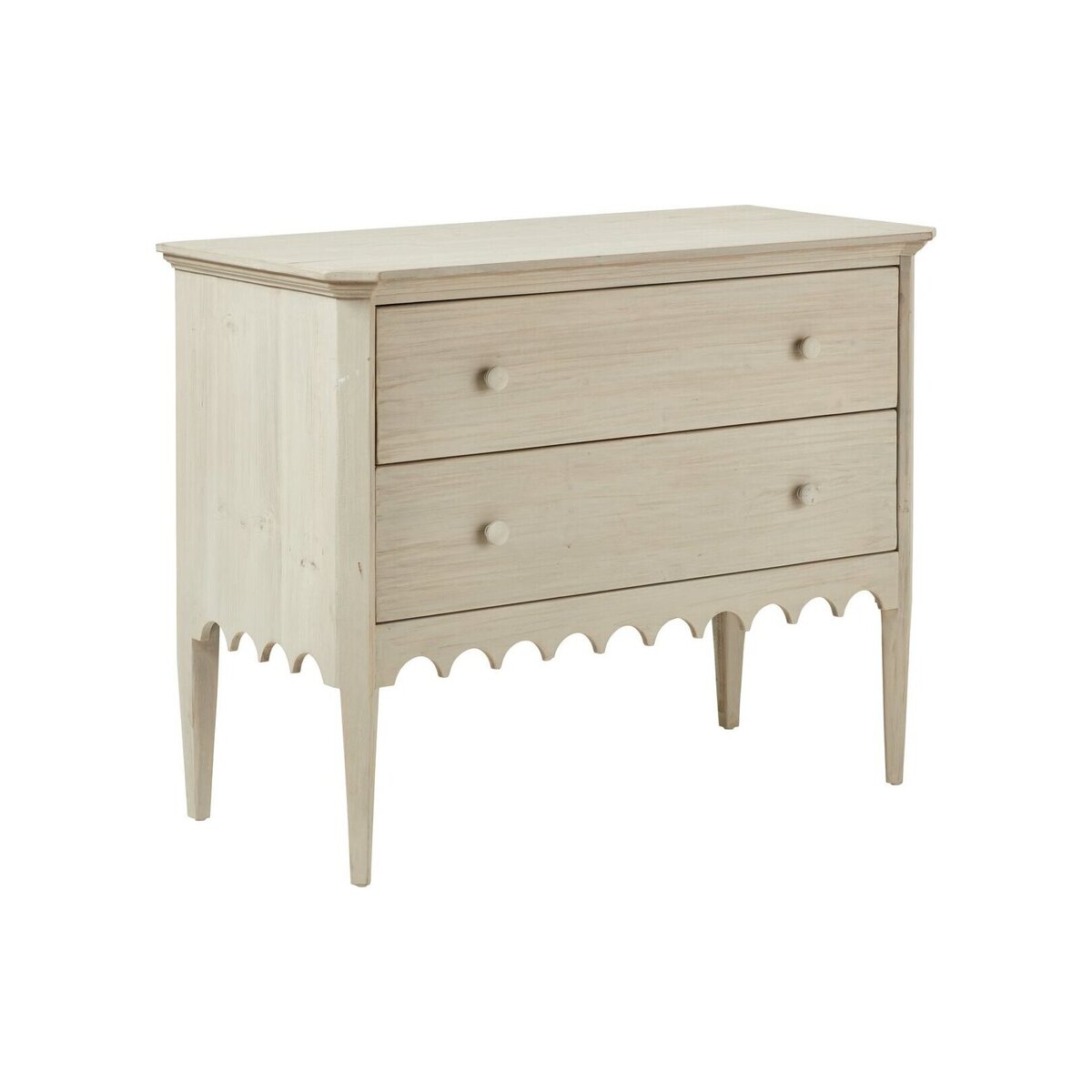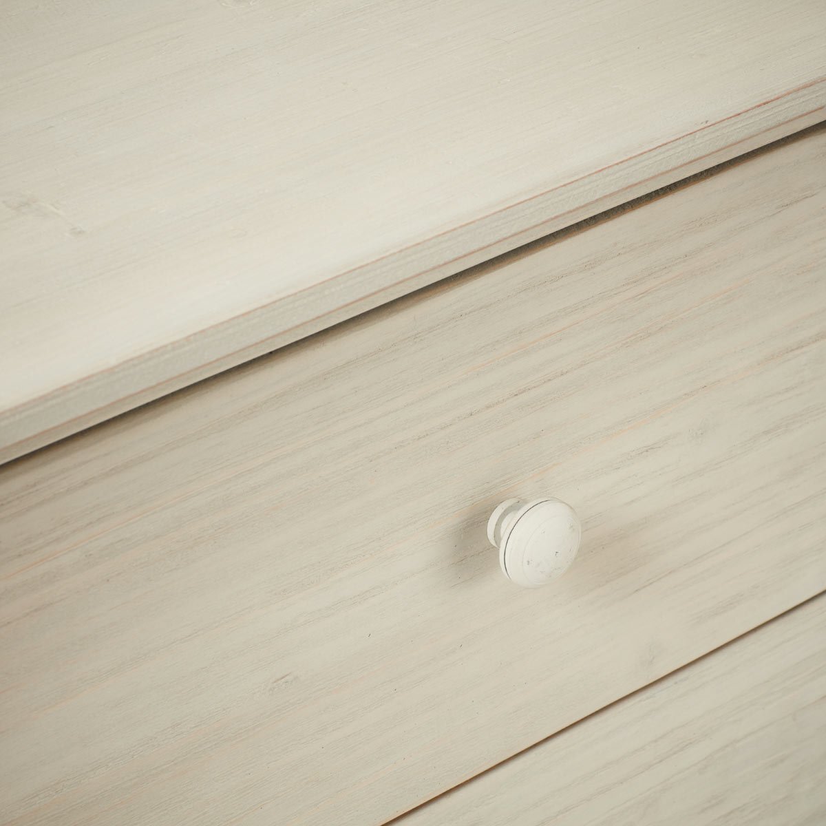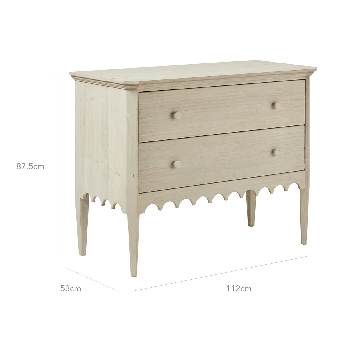 With its turret-like apron and rustic finish, this chest of drawers simply had to be named after a castle - the grey stone, historic Kenmure in Scotland felt like an apt choice. Every little detail of this piece has been carefully thought out, from the subtle washed grey finish that complements the versatile pine design, to the interiors of the drawers, which are painted dark blue. Just when you thought this chest couldn't get any more charming, you'll notice its natural markings and characteristics - which occur as it is crafted from a soft, reclaimed wood - that make each one utterly unique.