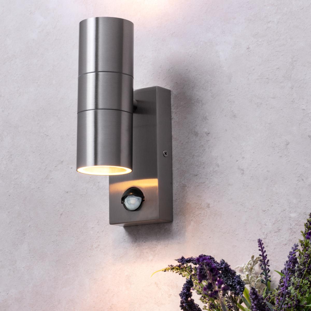 Kenn Outdoor PIR Sensor Up and Down Wall Light - Stainless Steel