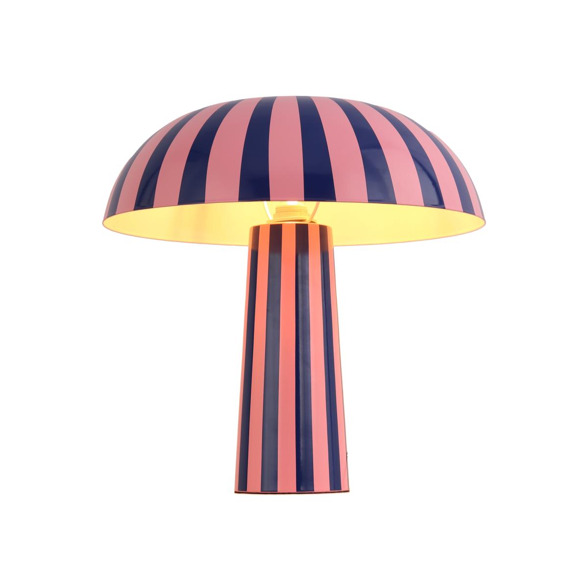 Add colour and elegance to your indoors with this Kenna Stripe Table Lamp. Flaunting a pink and blue striped design, the table lamp makes a great choice for reading nooks, desks and bedside tables. The glossy finish enhances its overall look, while the dome-shaped shade makes it a statement piece. Offering soft, ambient lighting, it serves as a stylish and decorative addition to any decor.