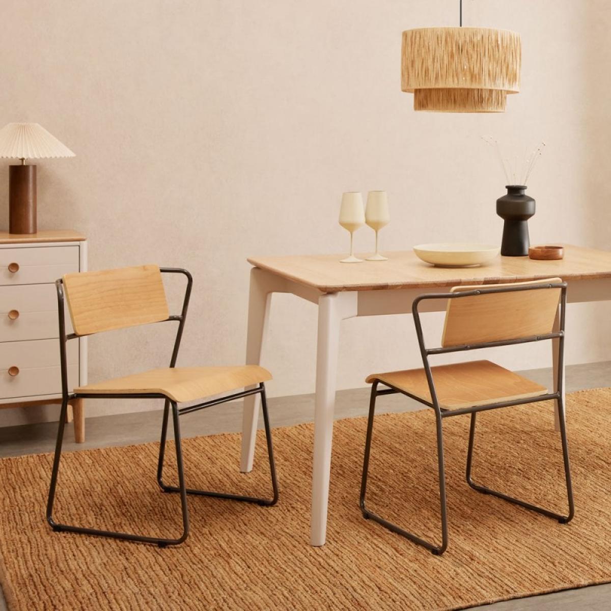 I love this chair for its sleek blend of natural wood and gunmetal accents, making it versatile for both contemporary and minimalist interiors. It works particularly well in dining rooms with pared-back, Scandinavian-inspired décor or as an accent piece in industrial settings. Practically, it’s lightweight and easy to move, ideal for everyday use. Styling tips include pairing it with a chunky wooden table for a warm, cohesive look, or contrasting it against a colourful or patterned tablecloth to let the chair’s modern lines stand out. Overall, a stylish yet practical addition that offers a fresh, Nordic vibe to any dining space.
