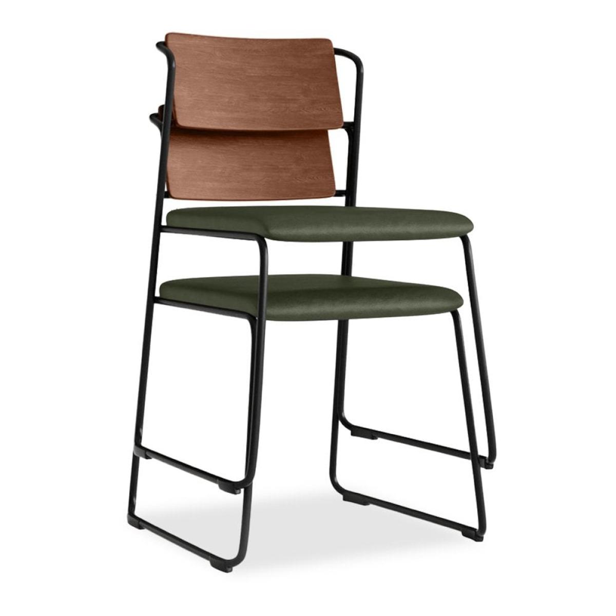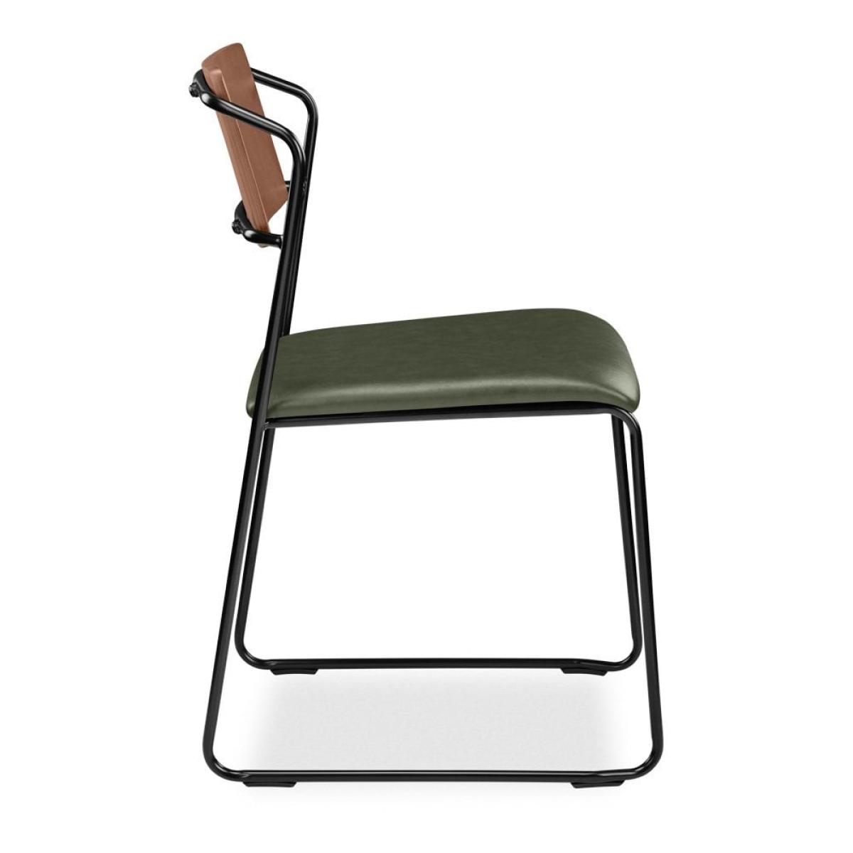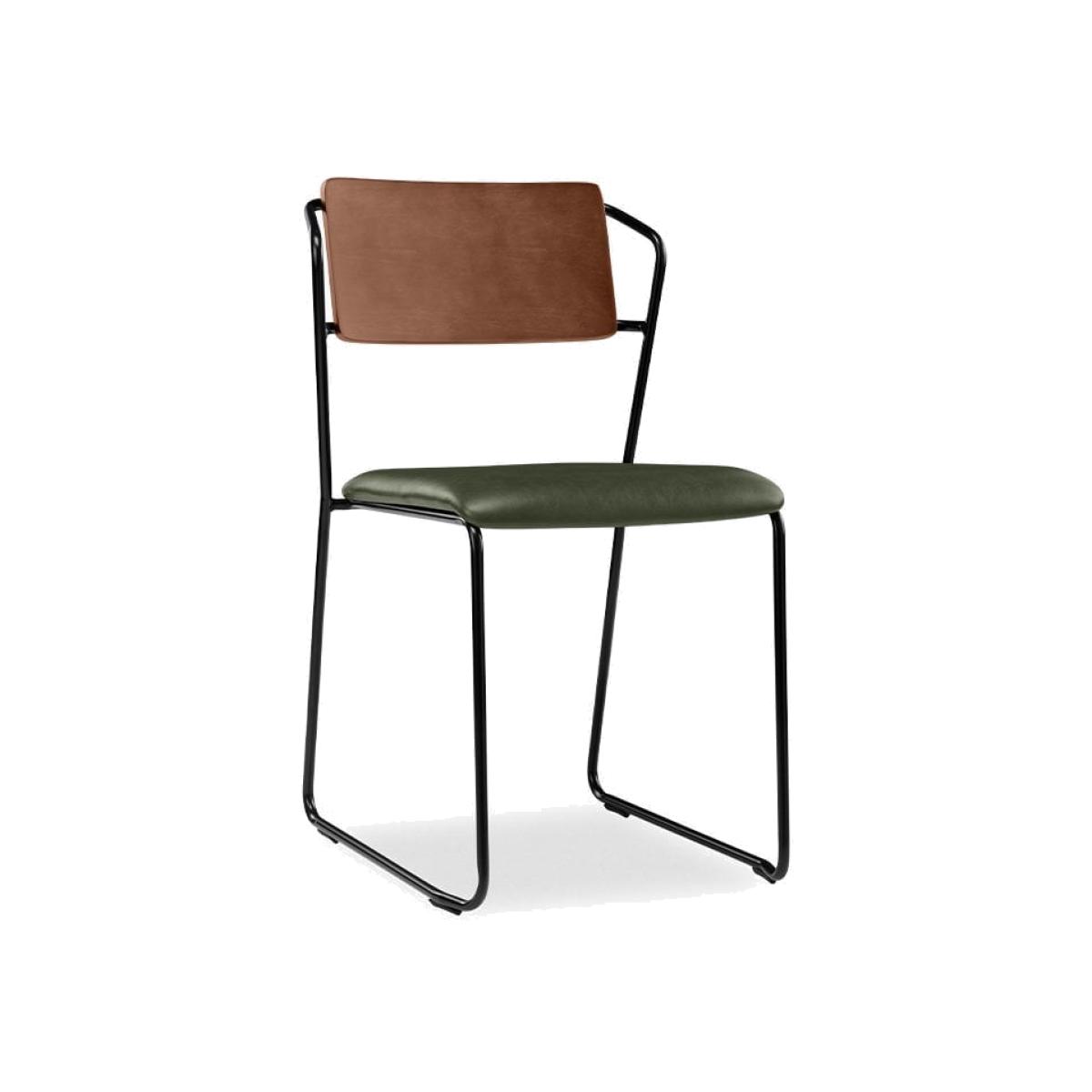 Industrial design has functionality in mind. The Kensal Dining Chair is inspired by Bauhaus design with that classic Mid Century style featuring a sleek black frame, a walnut-stained backrest and a faux leather seat in vintage green. A great addition to your kitchen table, the Kensal Range is also stackable; ideal for smaller spaces.