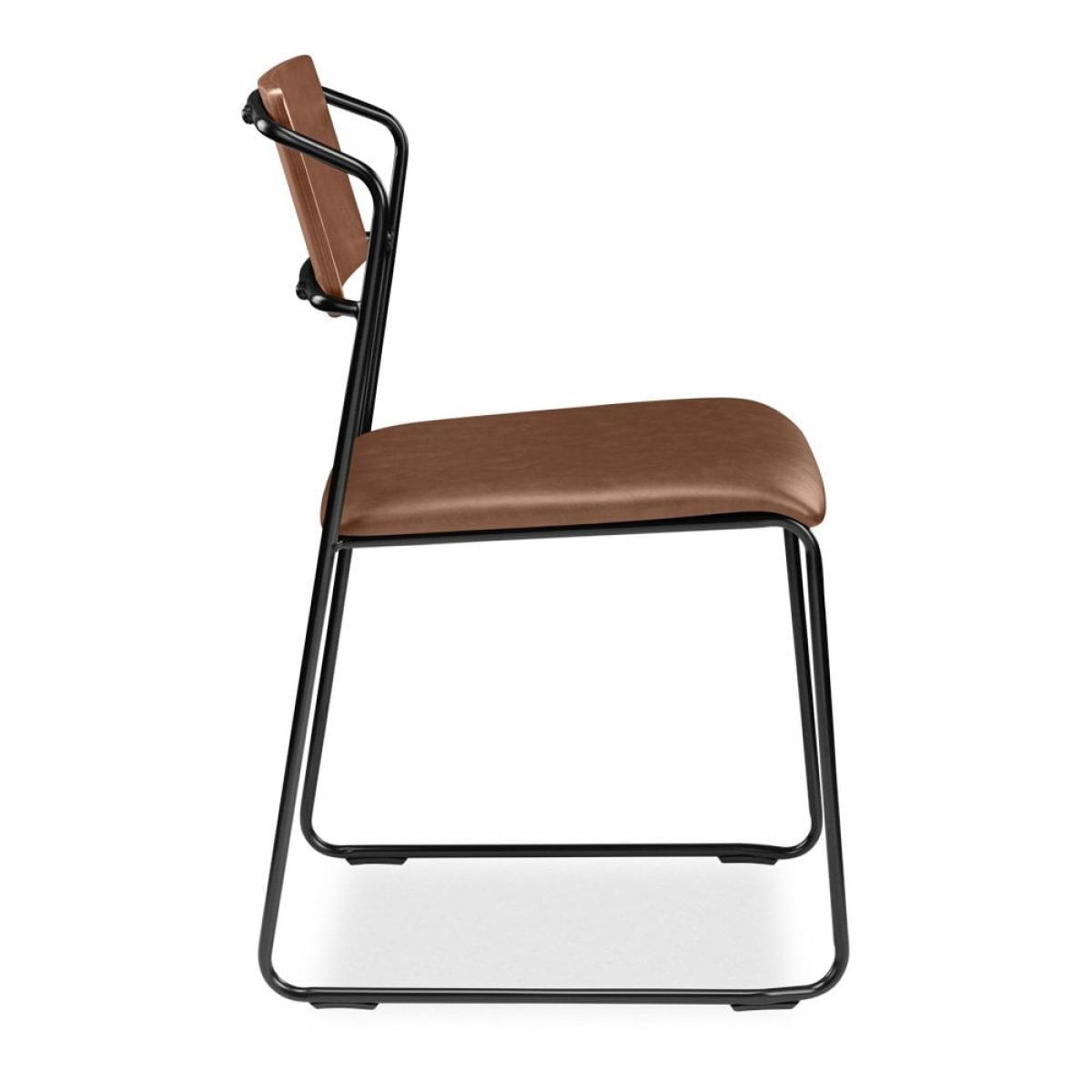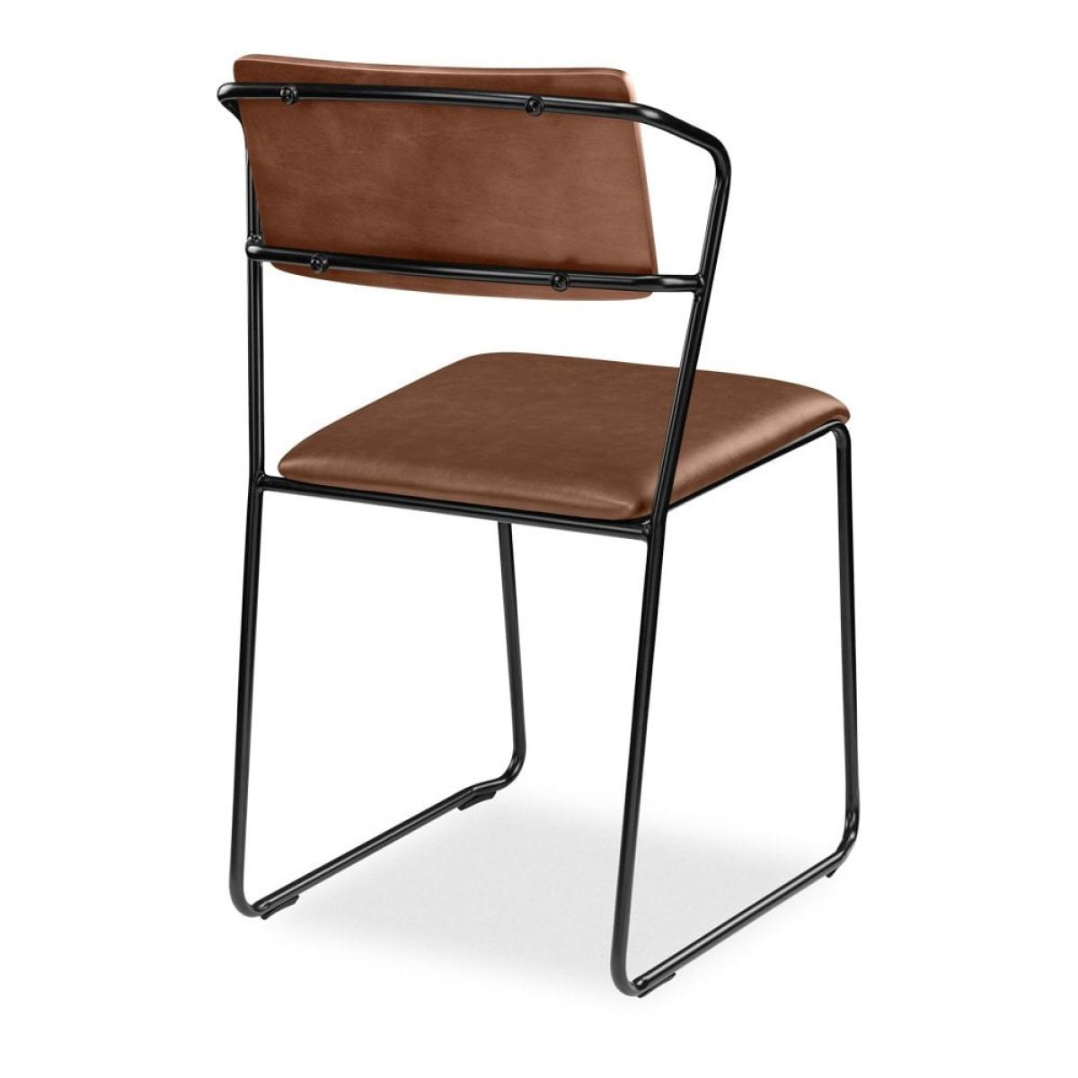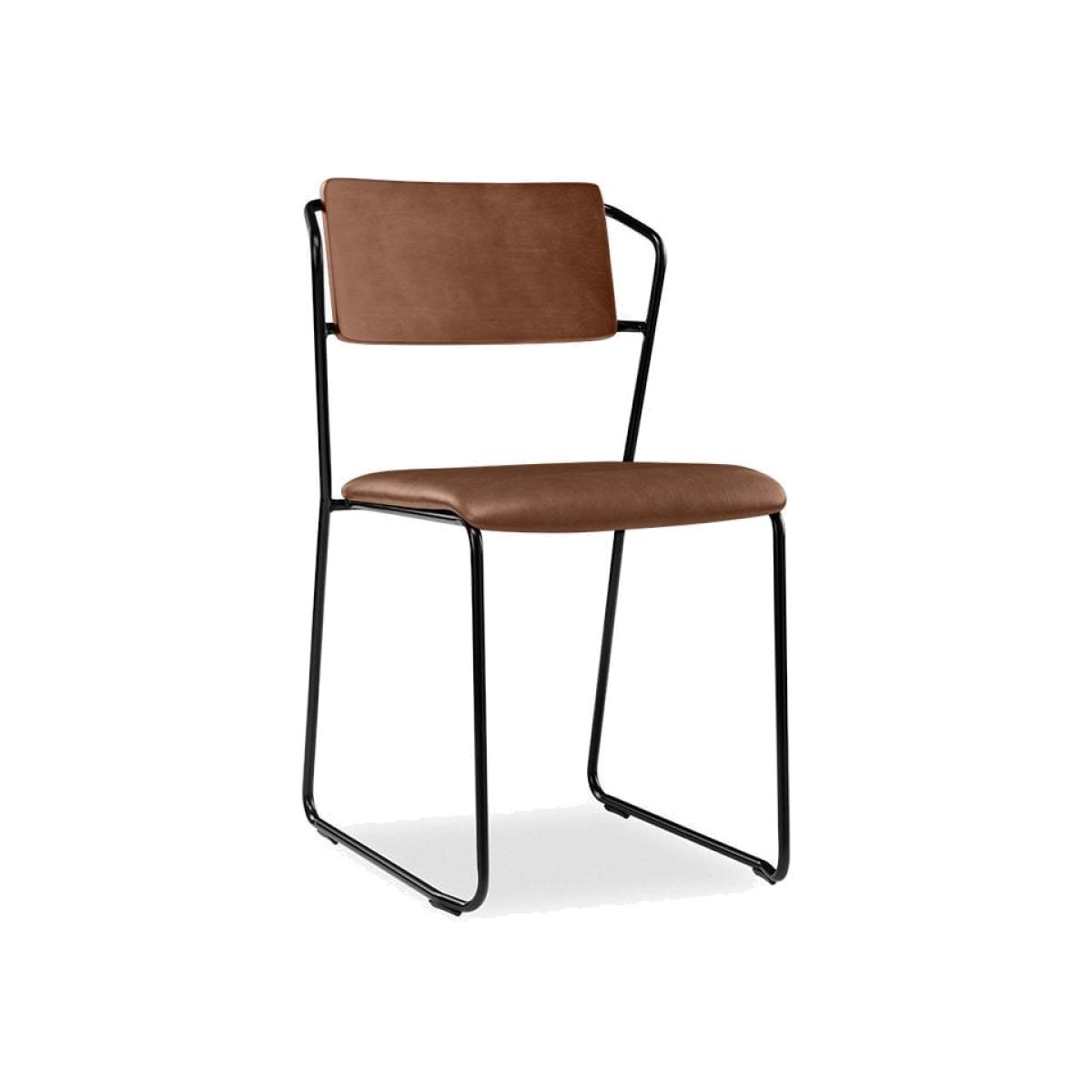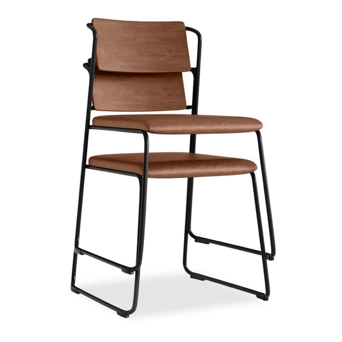 Industrial design has functionality in mind. The Kensal Dining Chair is inspired by Bauhaus design with that classic Mid Century style featuring a sleek black frame, a walnut-stained backrest and a faux leather seat in vintage tan. A great addition to your kitchen table, the Kensal Range is also stackable; ideal for smaller spaces.