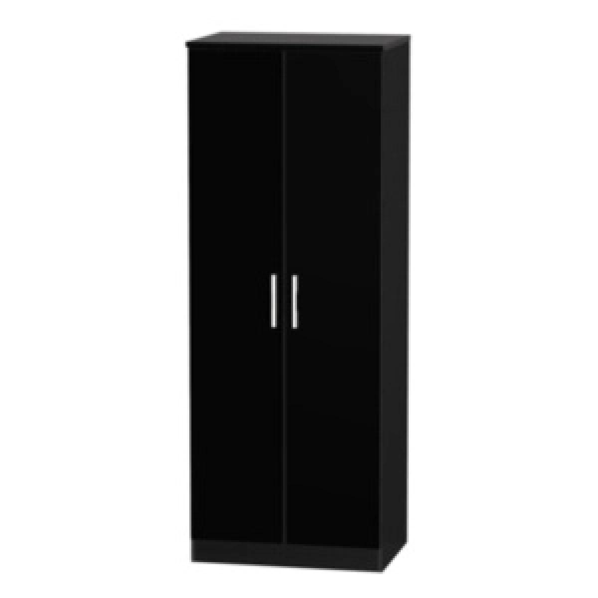 Combining style and practicality, this stunning Kensington Double Hanging Wardrobe is beautifully crafted with a smart high gloss finish. The chrome finished metal handles are rounded and slim, adding to the glossy exterior and creating depth and character to the simple design. The minimalist style matches well with modern interior decor, turning your house into a stylish and sophisticated home. Perfect for storing away your shirts and dresses on the two internal hang rails, this wardrobe will protect your favourite garments from dust and dirt whilst keeping them organised and crease-free. Delivered fully assembled, the wonderful storage solution is ready to go as soon as you have picked your spot.