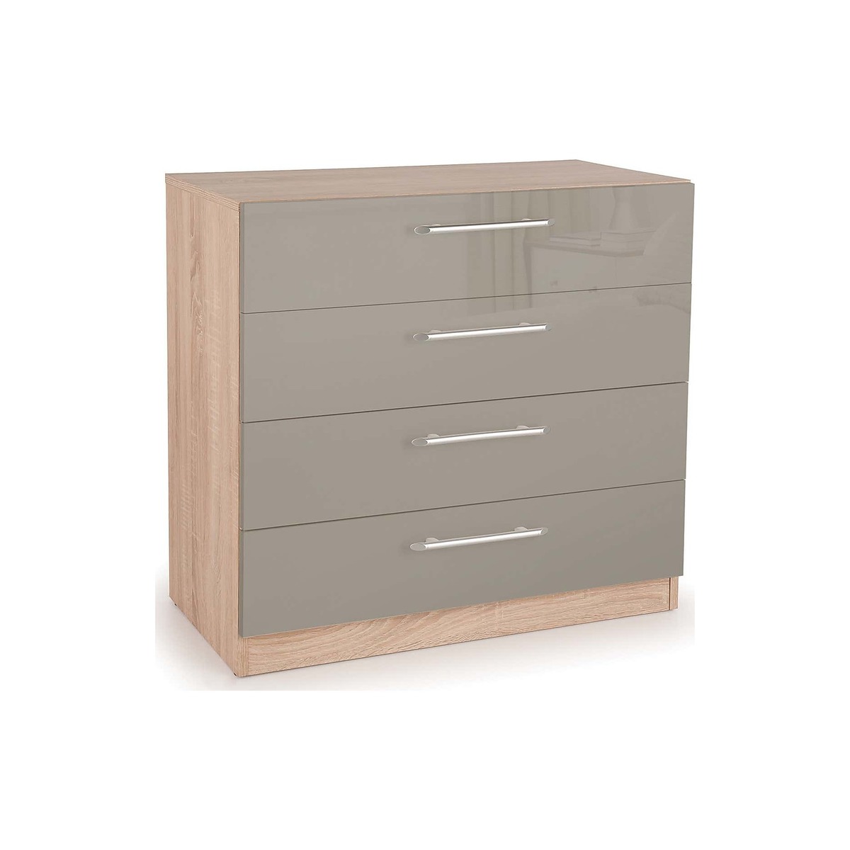 The Kensington 4 drawer chest features 4 equally sized drawers on easy glide metal runners and durable easy grip handles. The crisp and modern Kensington range from Harmony is certain to brighten up any bedroom with its contemporary features. The drawers have metal effect plastic handles and storage space that sit on heavy duty metal runners so will last over a number of years. Please note, unfortunately we cannot deliver this item to the Channel Islands.