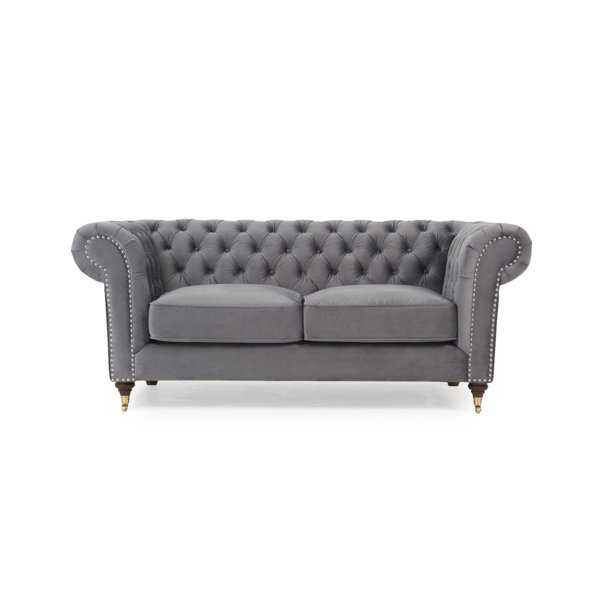 Kensington Chesterfield Dark Grey Velvet 2 Seater Sofa