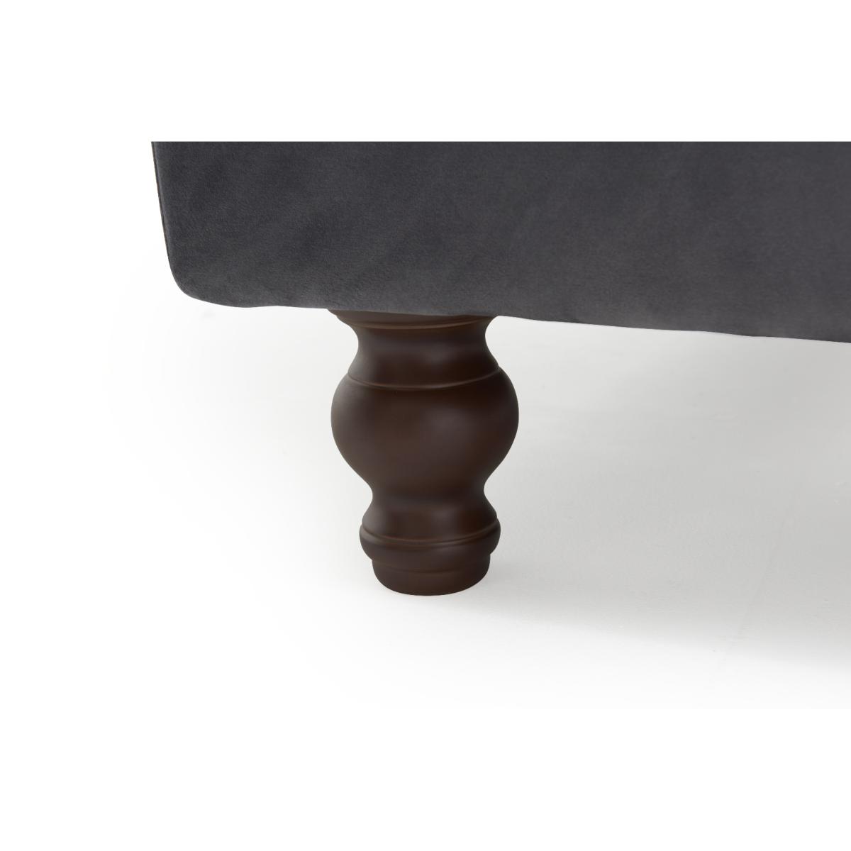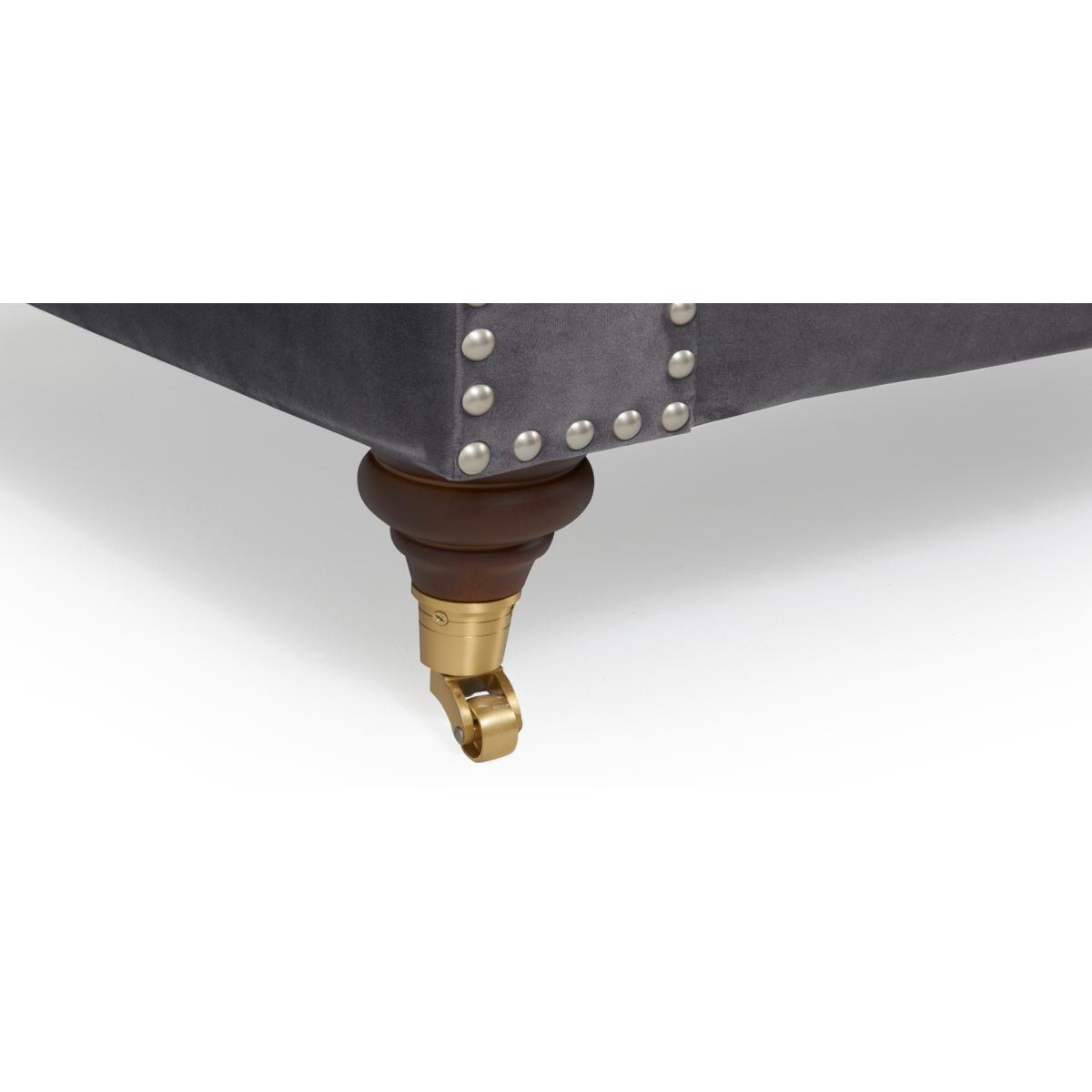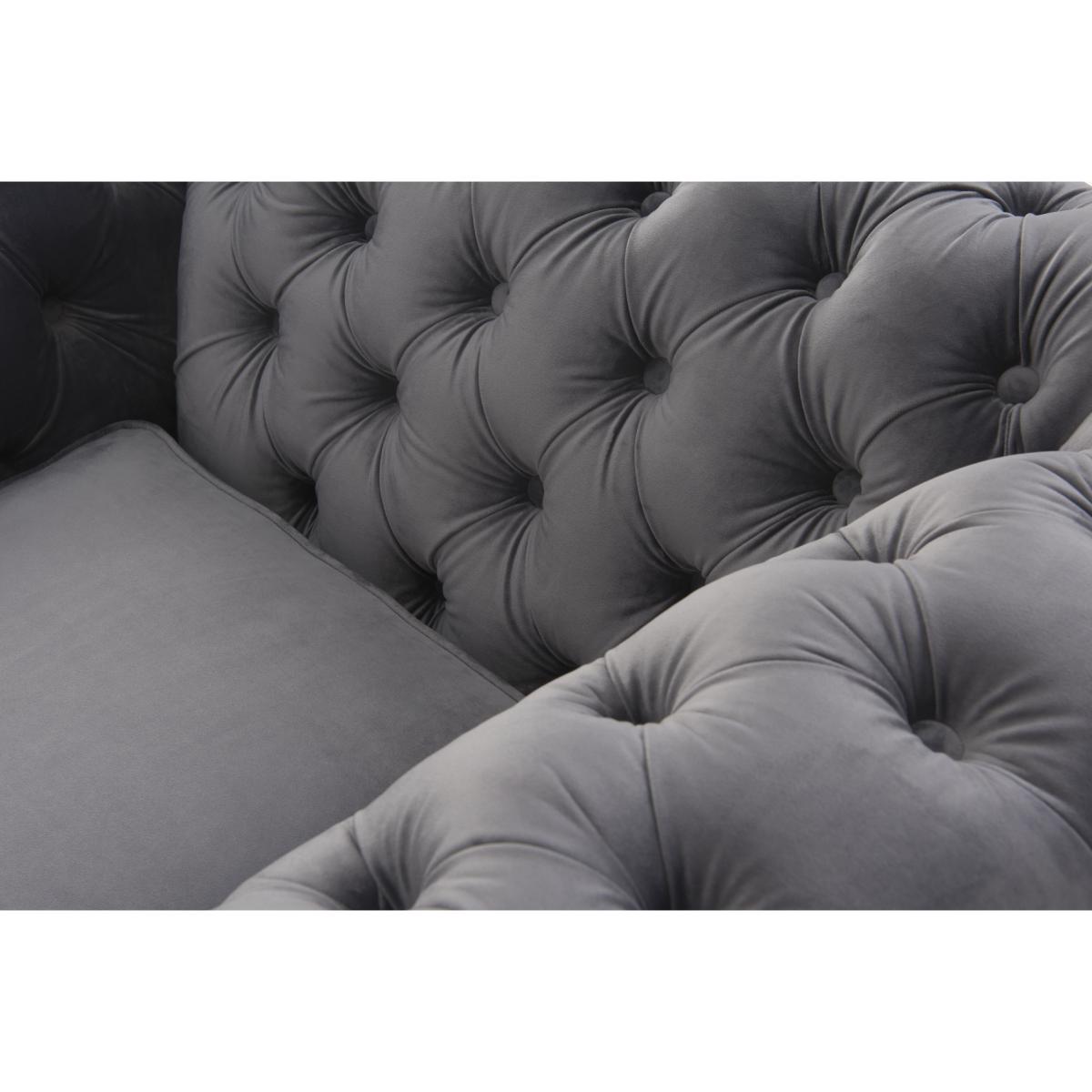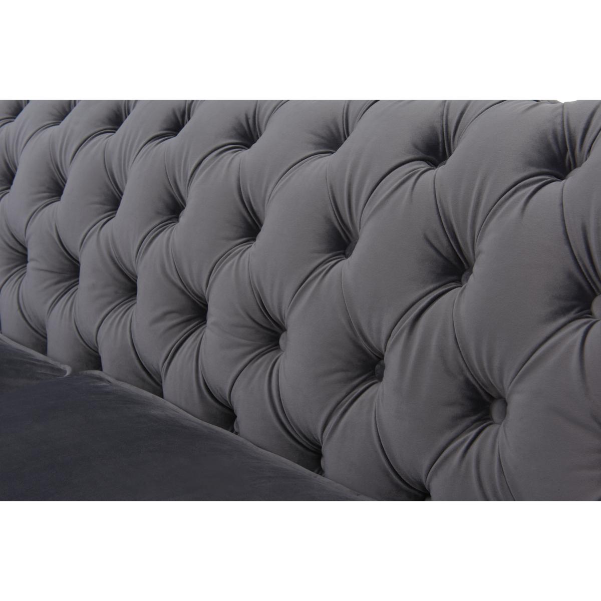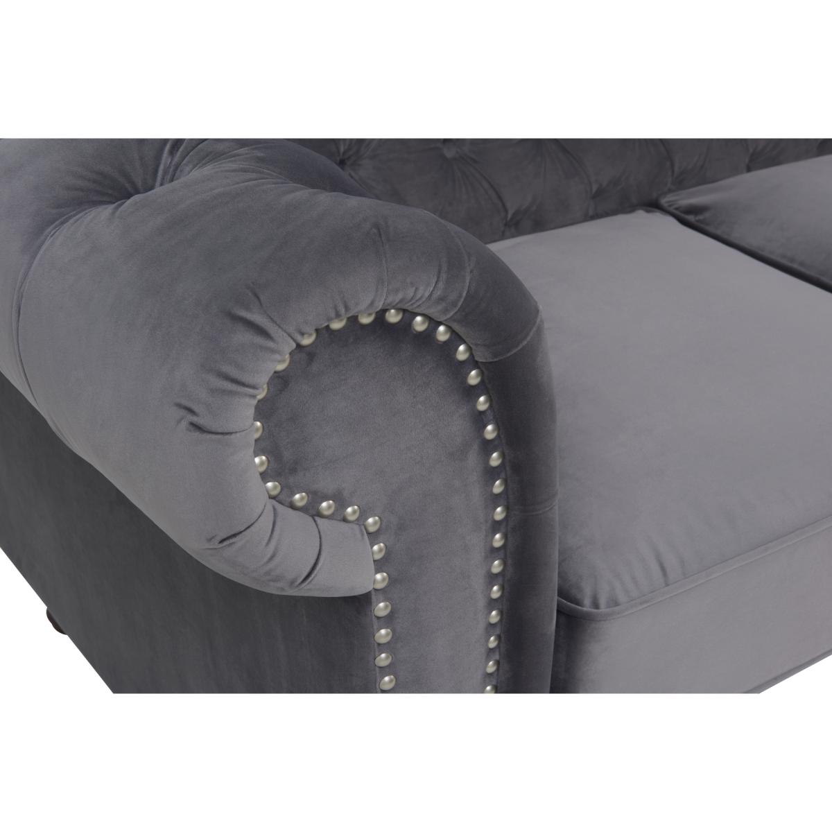 The Kensington sofa is upholstered in sumptuous Dark Grey velvet and features a beautiful silver stud trim, for classic Chesterfield-inspired style.