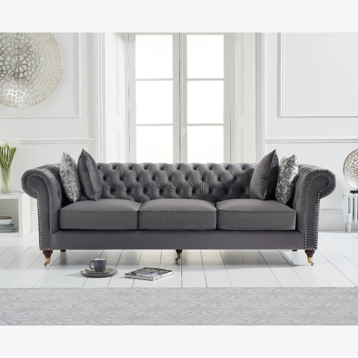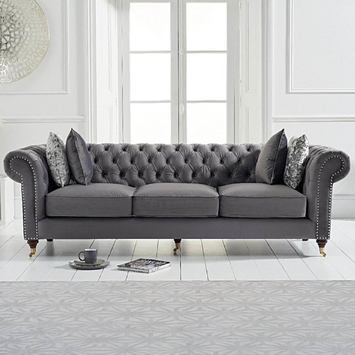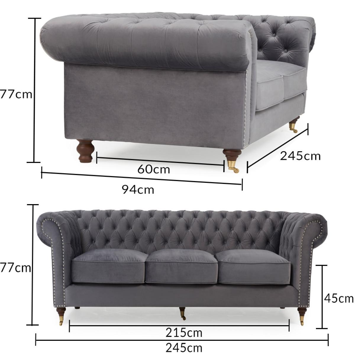 The Kensington Chesterfield Dark Grey velvet 3 seater sofa has gorgeous deep buttoning and stunning dark ash legs. This sofa is unique and will fit into any living room
