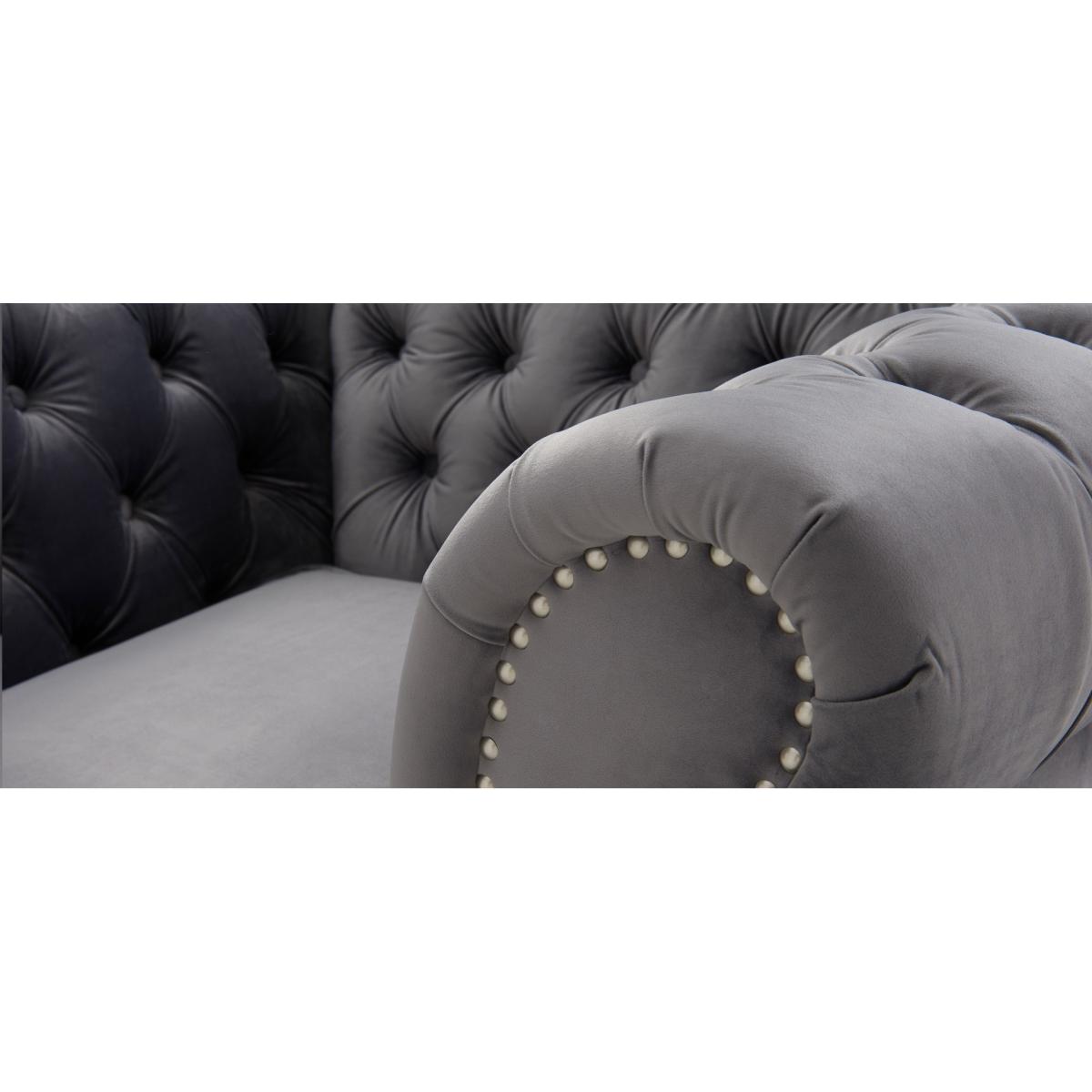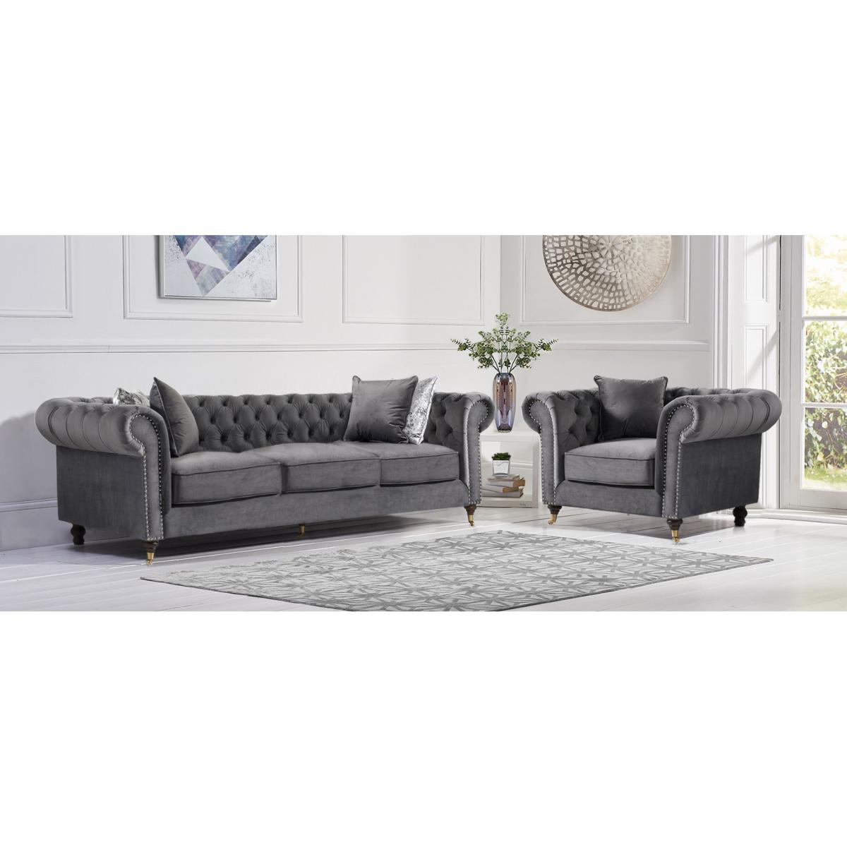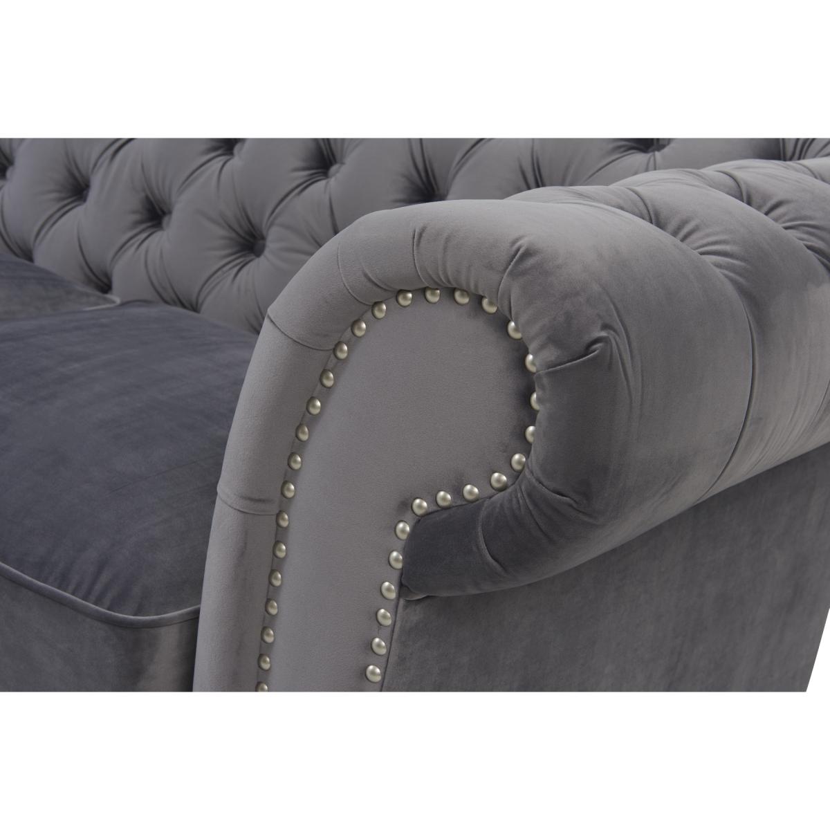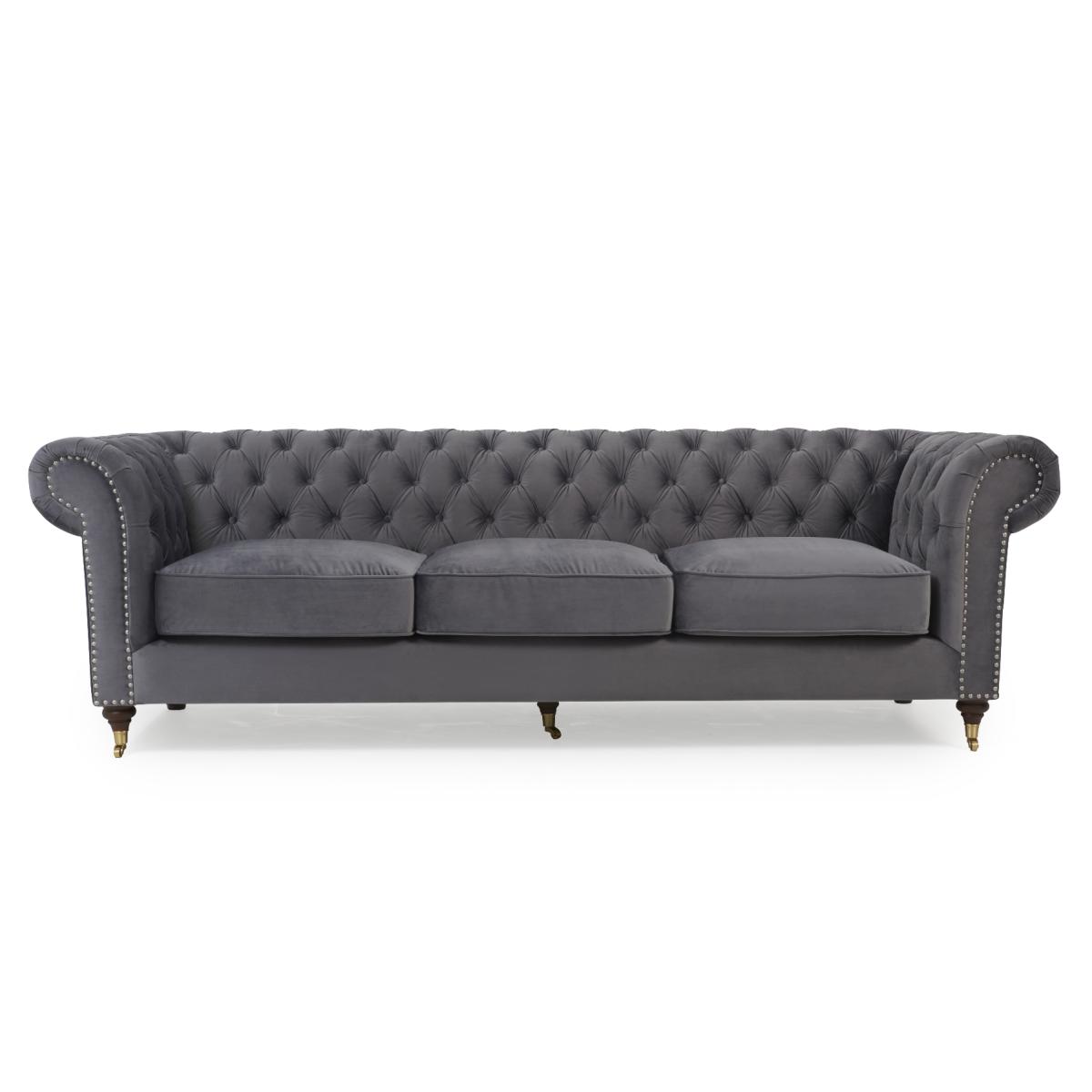 The Kensington Chesterfield Dark Grey velvet 3 seater sofa has gorgeous deep buttoning and stunning dark ash legs. This sofa is unique and will fit into any living room