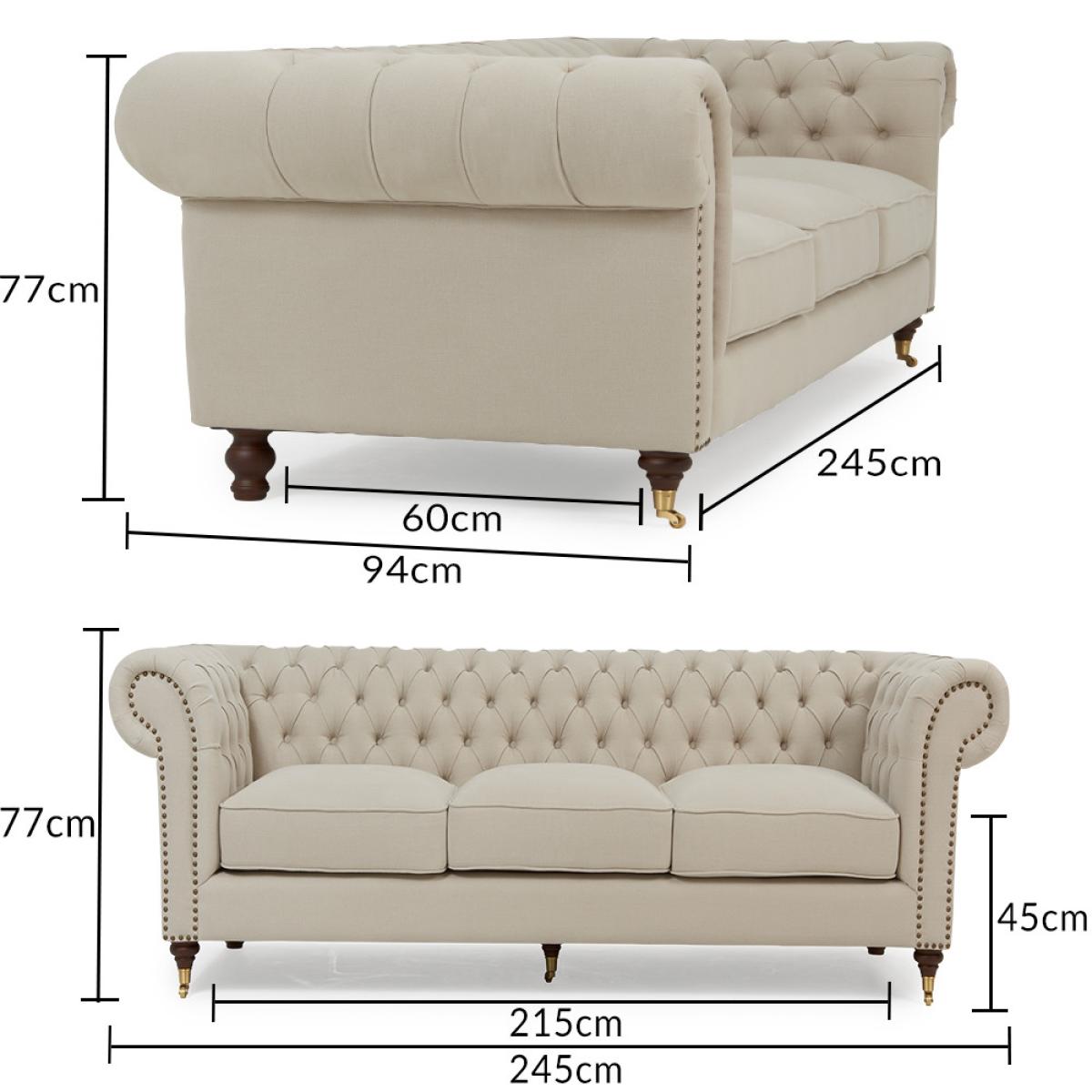 Kensington Chesterfield Ivory Linen 3 Seater Sofa