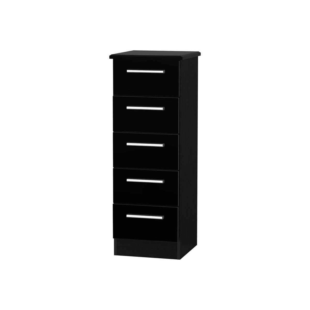 Combining style and practicality, the Kensington Five Drawer Locker is beautifully crafted with a high gloss finish to give you spacious storage for everyday use. The durable and versatile unit is perfect for housing important paperwork and folders in your office or storing away clothing in the nursery or bedroom. The simple drawers are sturdy and robust by using a dowel and glue joinery, and glide smoothly on metal runners. The chrome finished metal handles are rounded and slim, adding to the glossy exterior and creating depth and character to the simple design. The minimalist style matches well with modern interior decor, perfect to place in a small corner, turning your house into a stylish home.