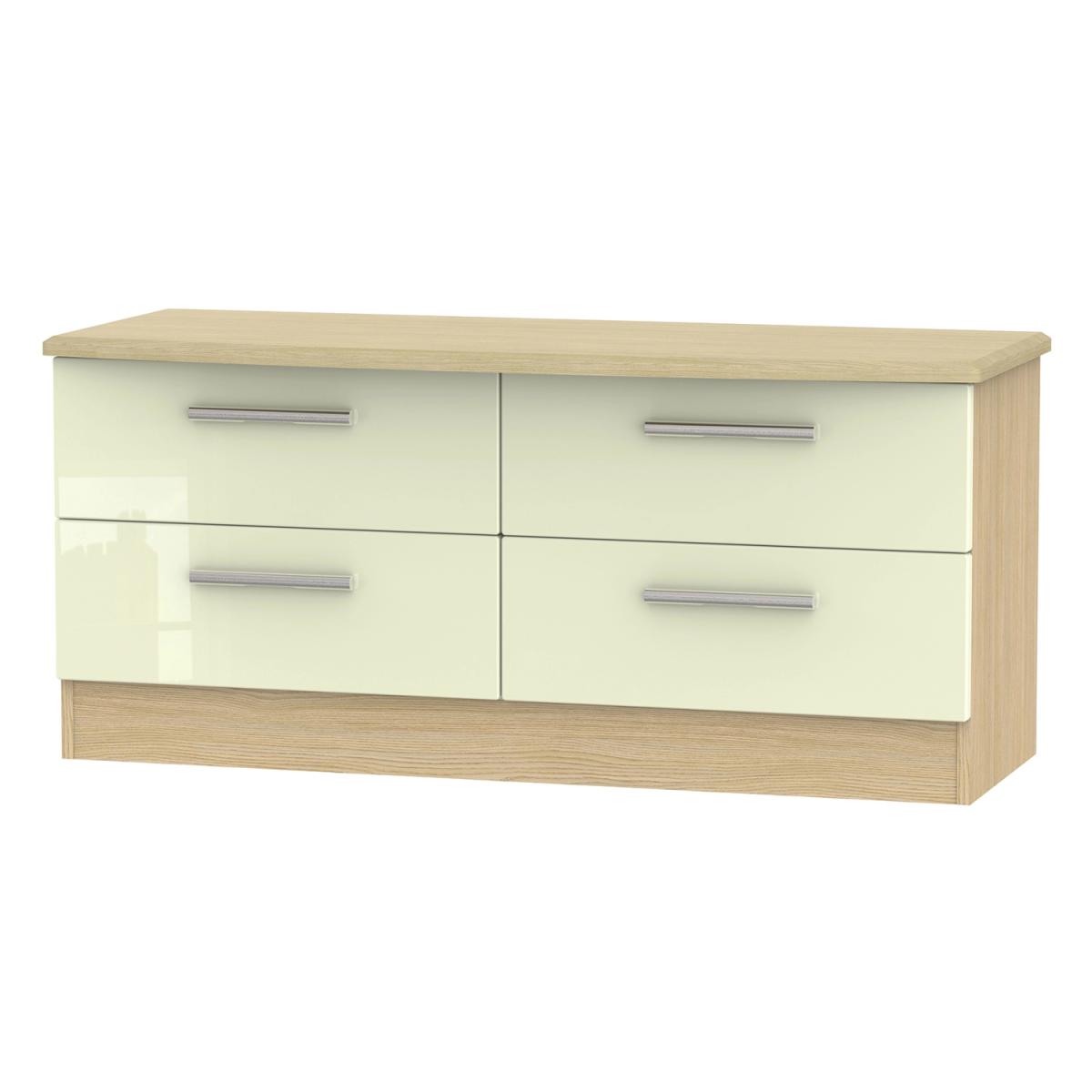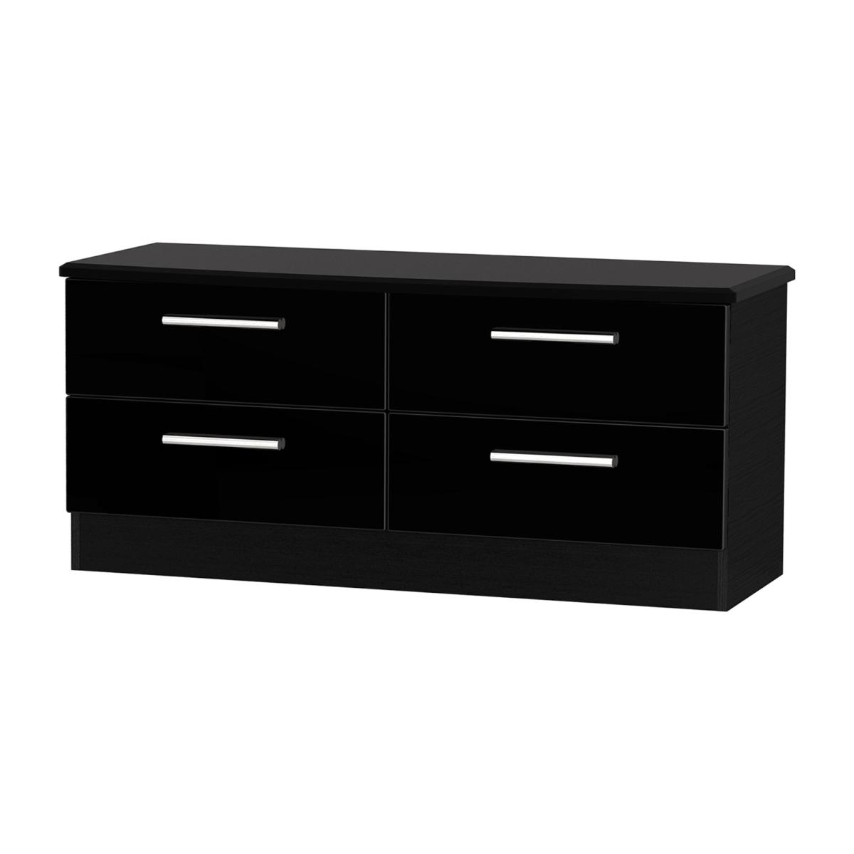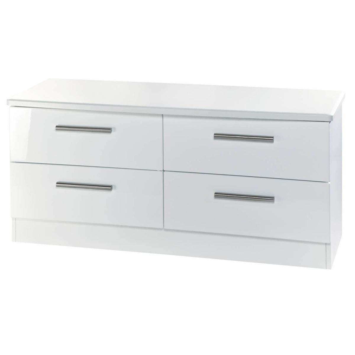 Using a combination of style and practicality, the Kensington Four Drawer Bed Box is beautifully crafted with a high gloss finish to give you spacious storage for everyday use. The sturdy and durable unit is perfect for housing your bed sheets, blankets and garments in the deep drawers, and ideal for placing your favourite ornaments and trinkets on top. The simple drawers are sturdy and robust by using a dowel and glue joinery, and glide smoothly on metal runners. The chrome finished metal handles are rounded and slim, adding to the glossy exterior and creating depth and character to the simple design. The minimalist style matches well with modern interior decor, perfect to place at the bottom of your bed, turning your house into a stylish home.