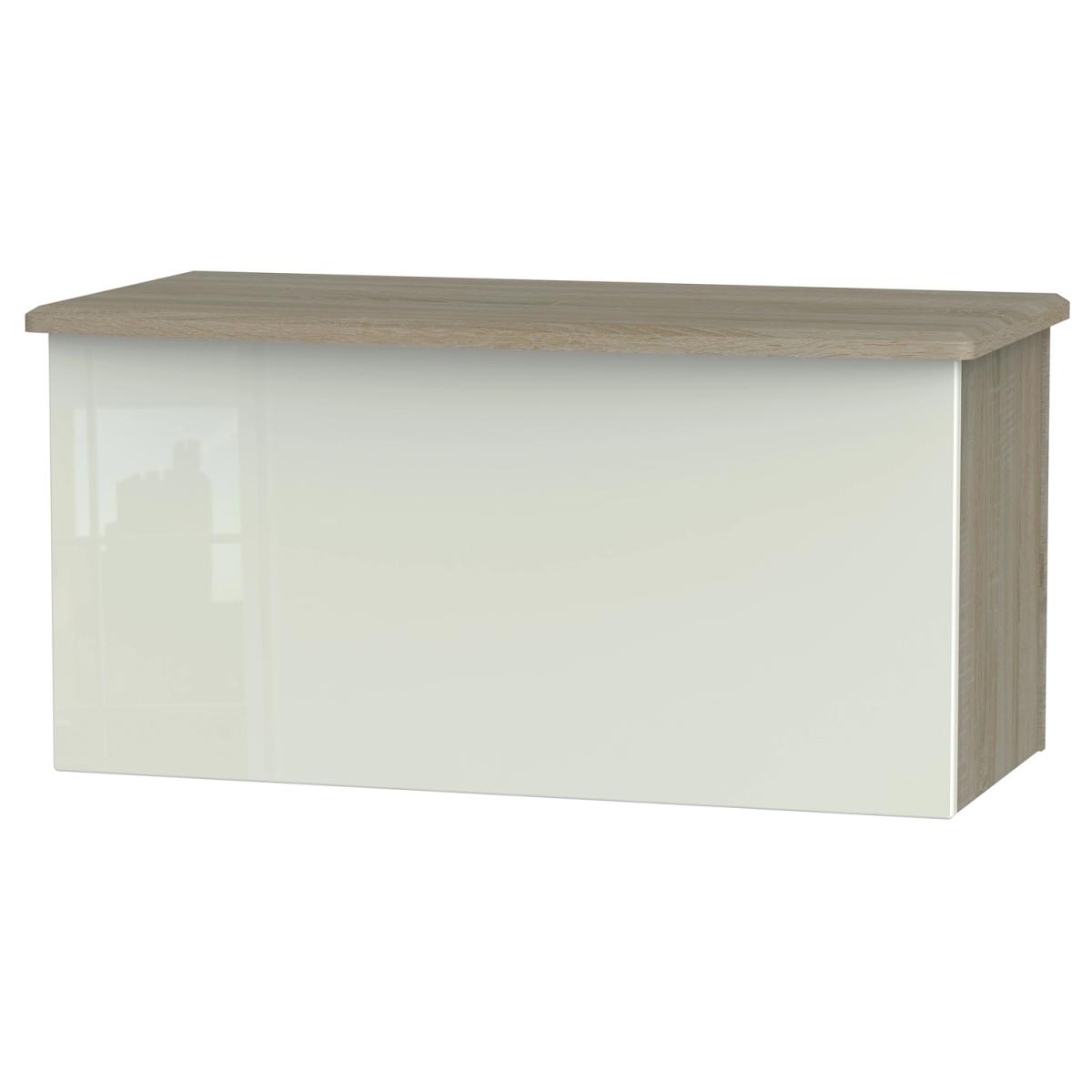 Store all of your spare towels, linens, and bedding in this stylish and contemporary Kensington Kashmir Blanket Box. Combining elegance and practicality with its Kashmir gloss finish, this spacious box will keep your room neat and tidy and provide a handy space for you to easily fetch bedding. The top of the box is simple and sturdy to complete the minimalist appearance - perfect for providing extra seating in a pinch!