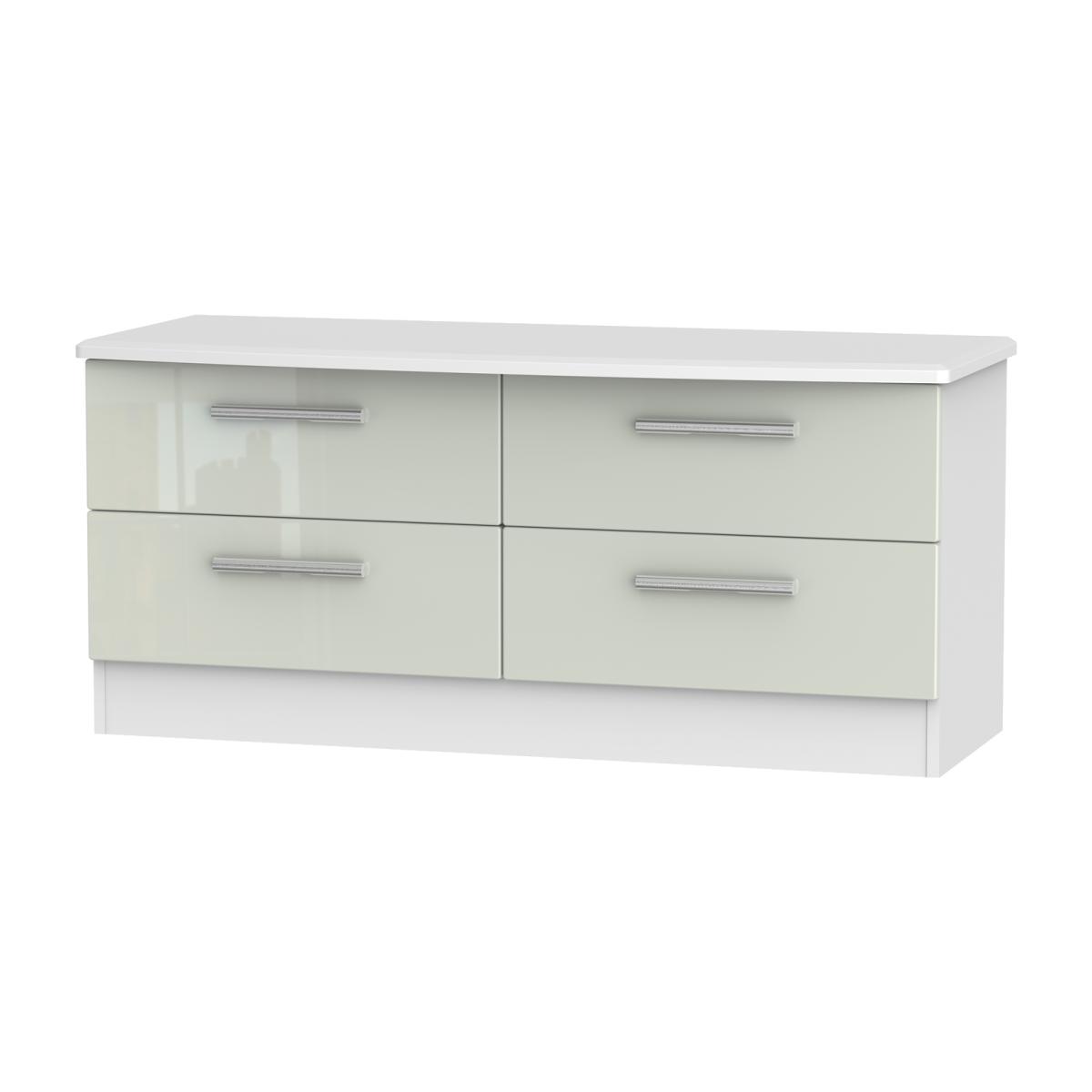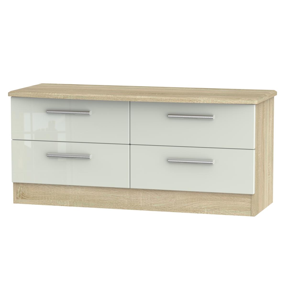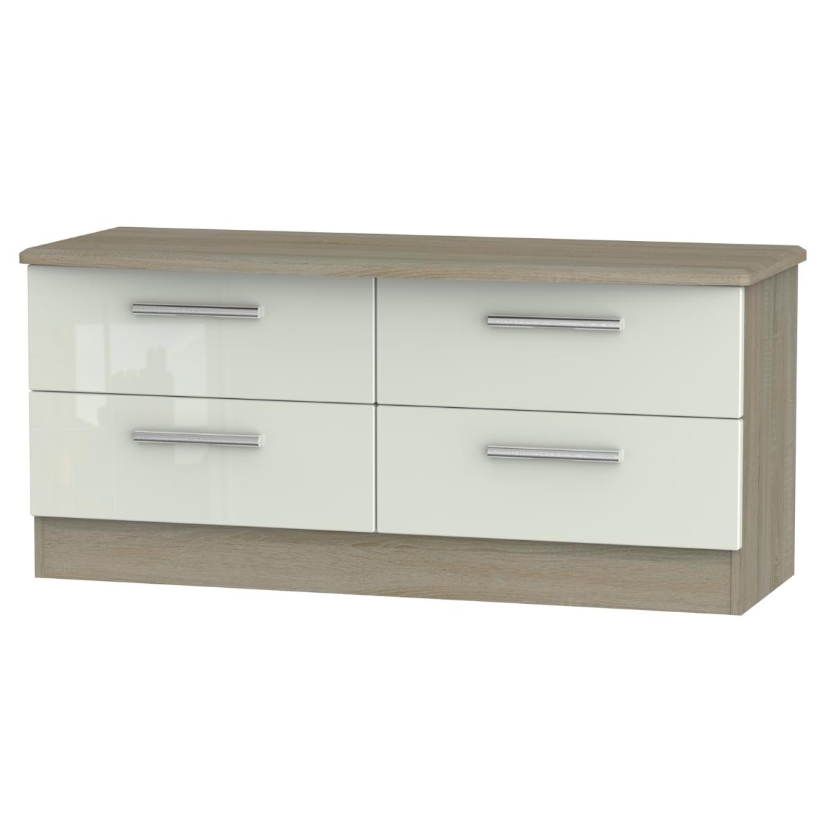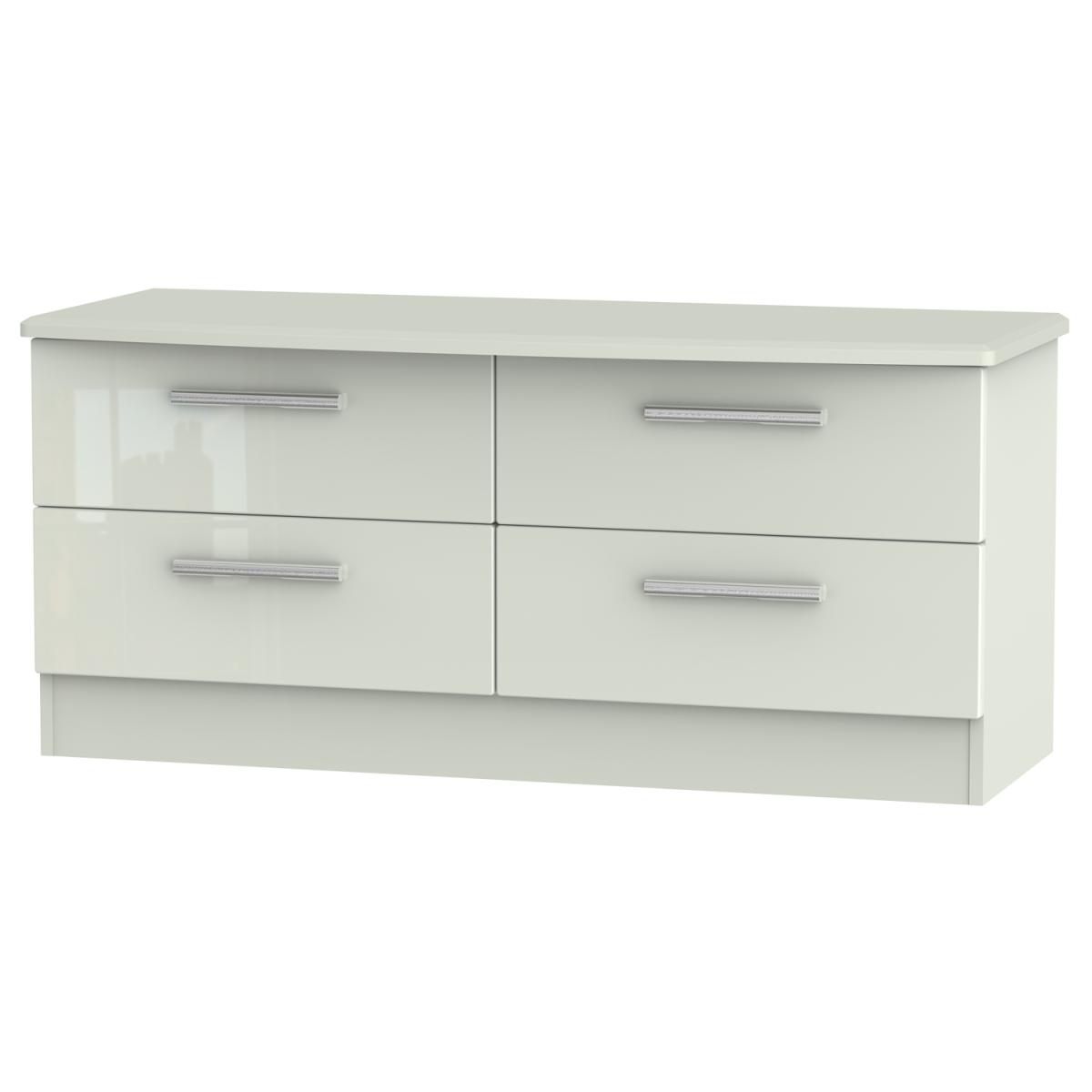 Using a combination of style and practicality, the Kensington Kashmir Four Drawer Bed Box is beautifully crafted with a Kashmir gloss finish to give you spacious storage for everyday use. The sturdy and durable unit is perfect for housing your bed sheets, blankets and garments in the deep drawers, and ideal for placing your favourite ornaments and trinkets on top. The chrome finished metal handles are rounded and slim, adding to the glossy exterior and creating depth and character to the simple design. The minimalist style matches well with modern interior decor, perfect to place at the bottom of your bed, without overpowering your existing furniture.